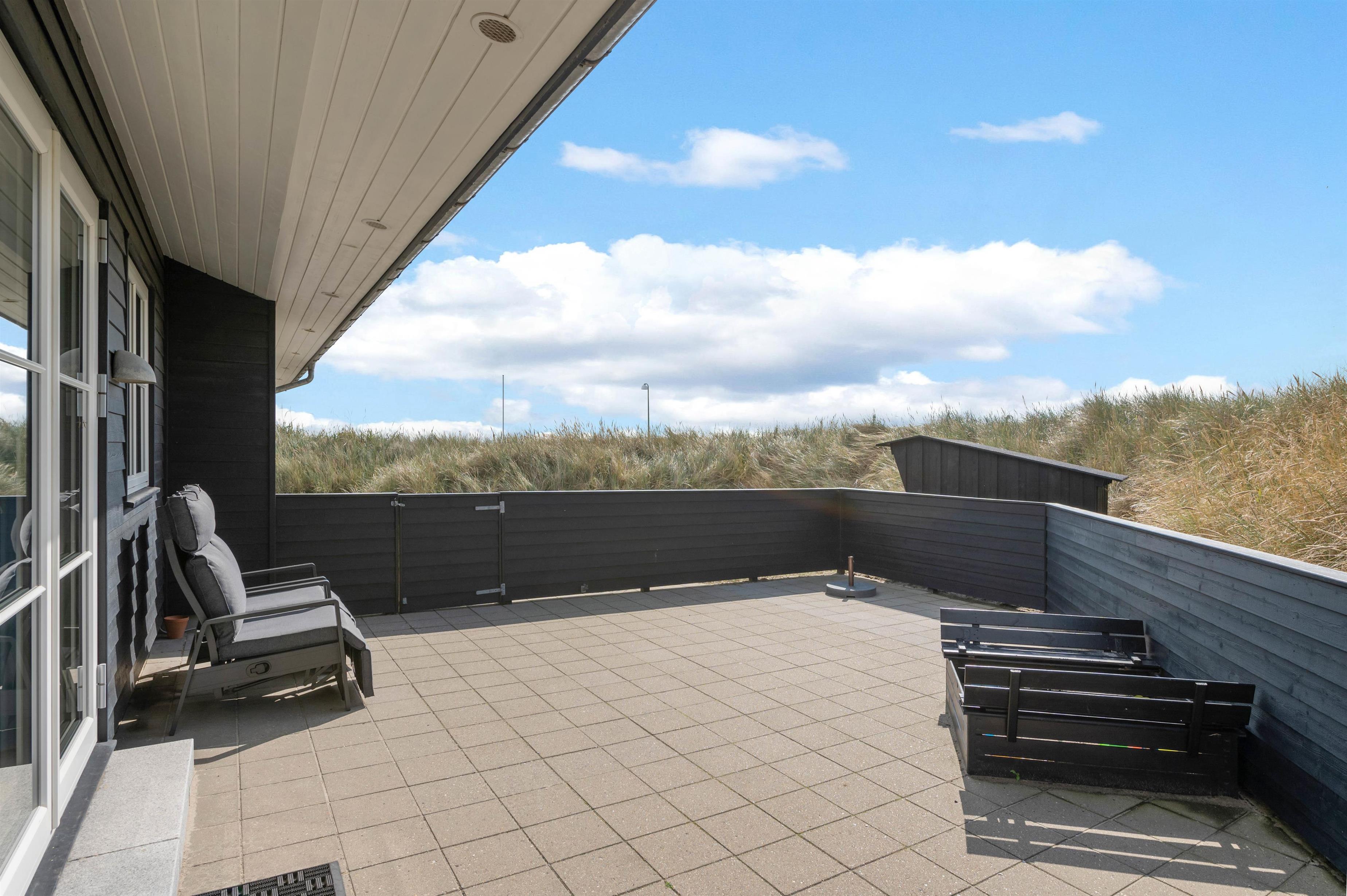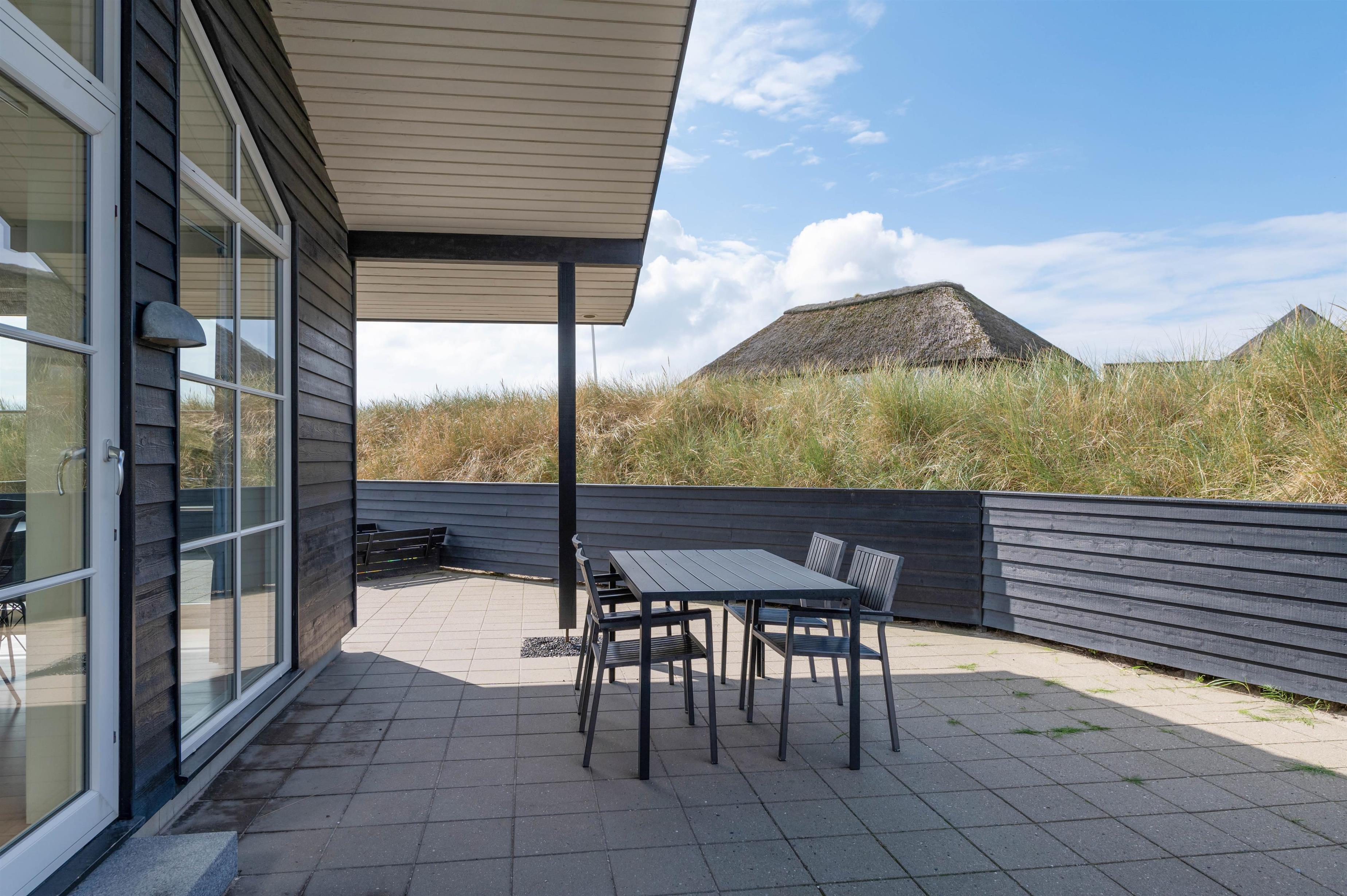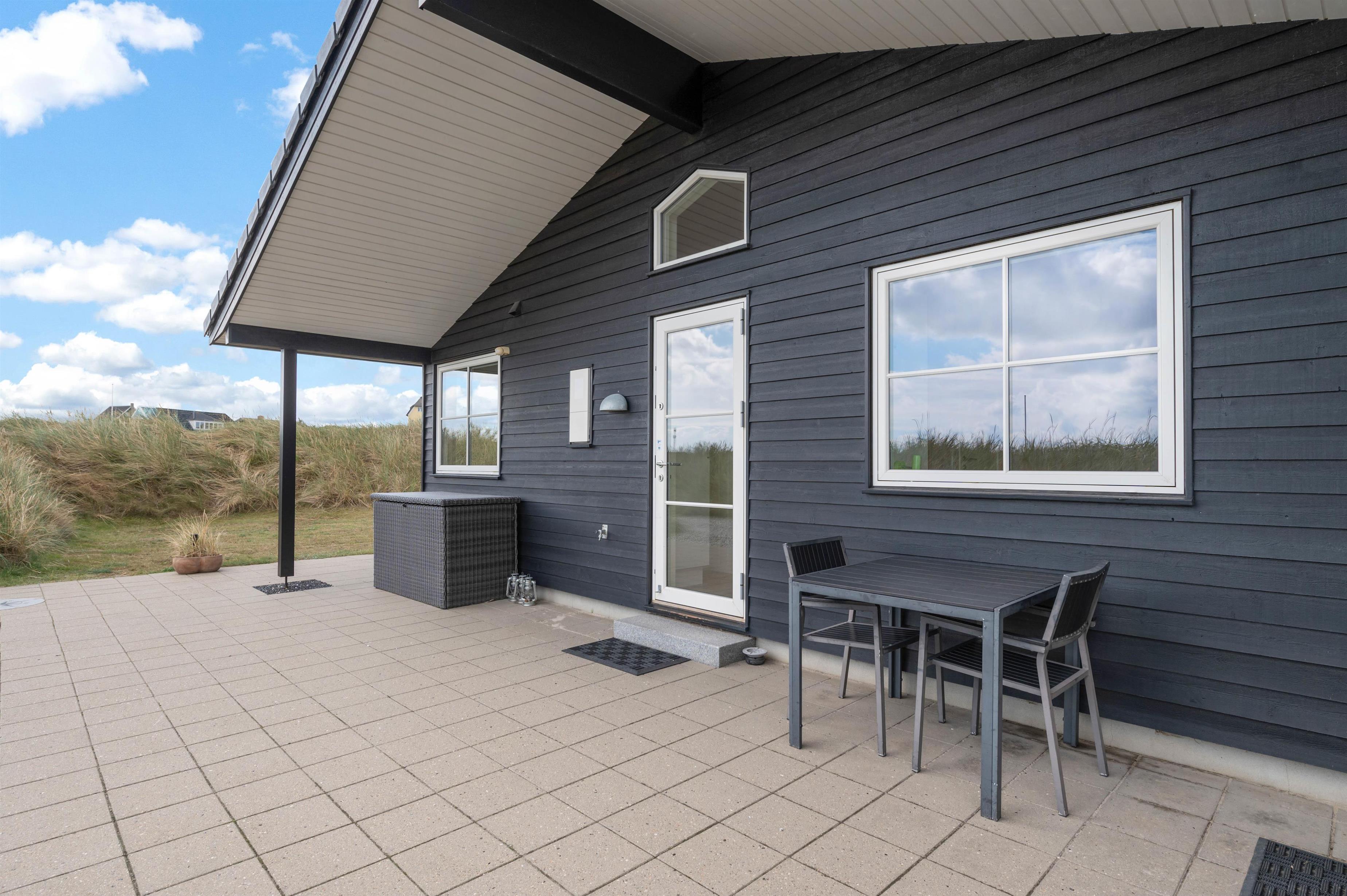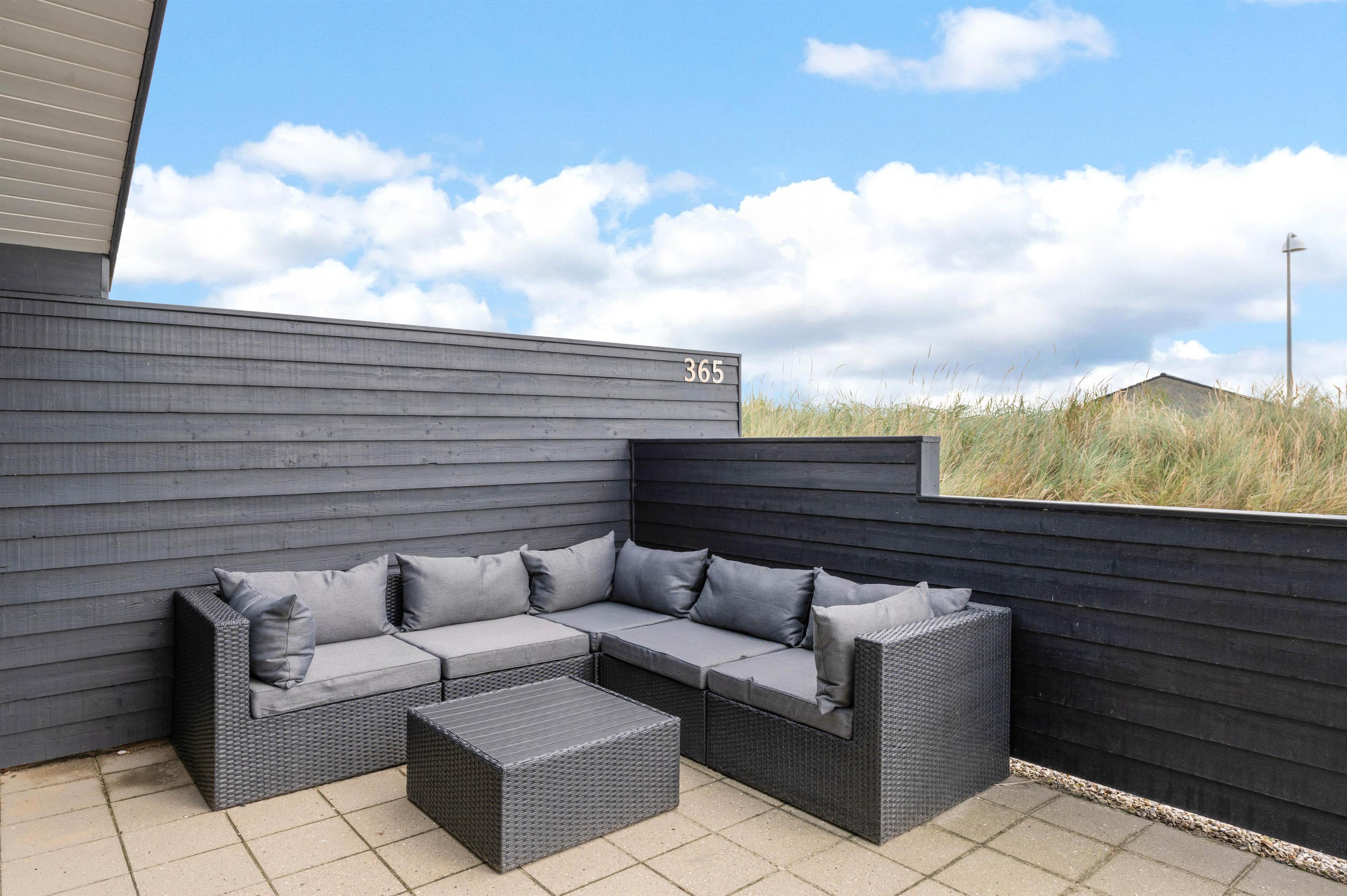 Til et feriehus hører naturligvis også en terrasse - I dette tilfælde en skøn, delvist overdækket og afskærmet terrasse, hvor I kan nyde den friske luft og en hyggelig grillaften. Terrassen er udstyret med liggestole, komfortable loungemøbler og en grill.