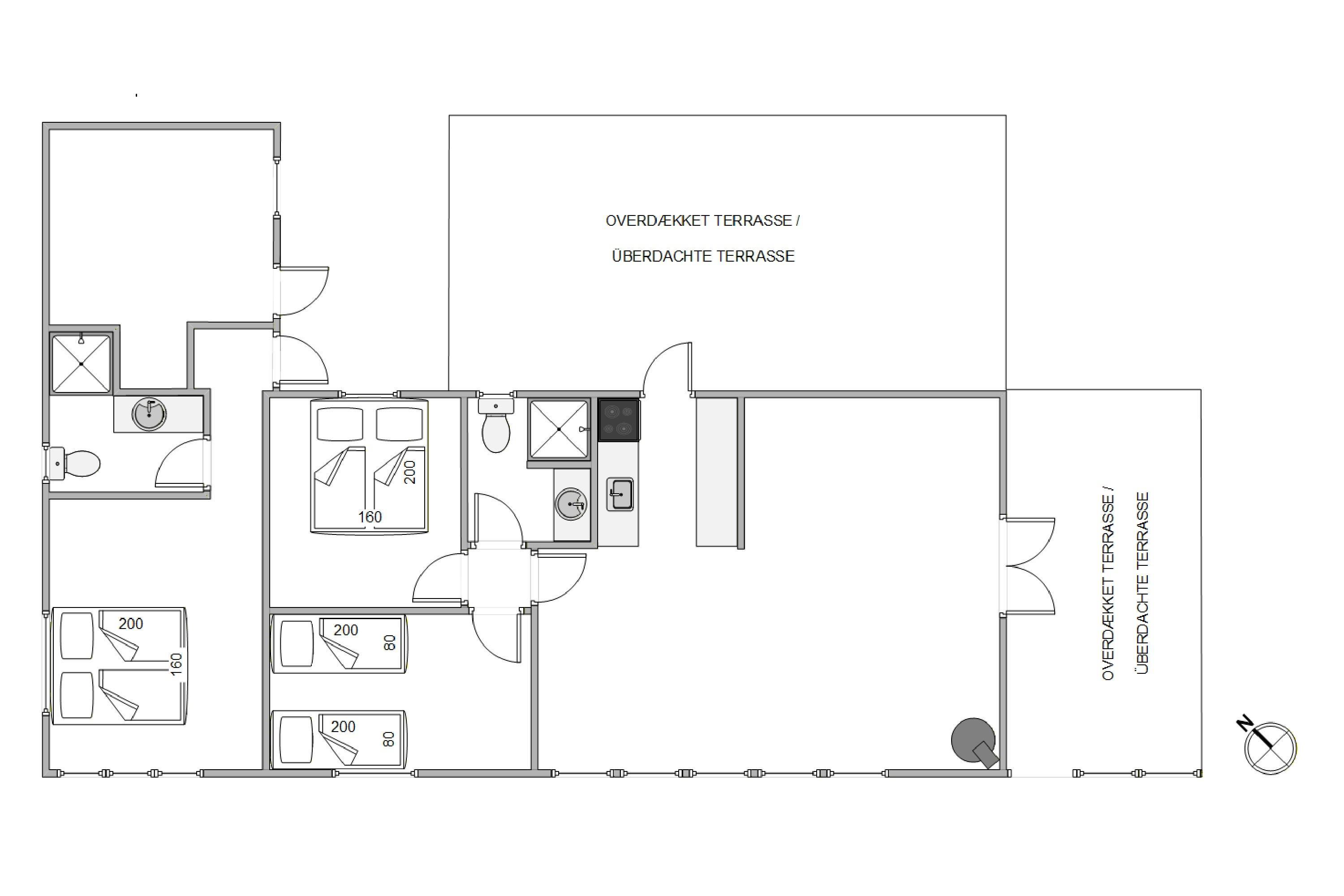 På den afskærmede og delvist overdækkede terrasse, der omgiver sommerhuset, kan I nyde jeres ferie udendørs i de liggestole og havemøbler, I har til rådighed. Her kan I også finde grillen frem og tilbringe de lune sommeraftener med lækker mad, kølige drikkevarer og godt selskab.