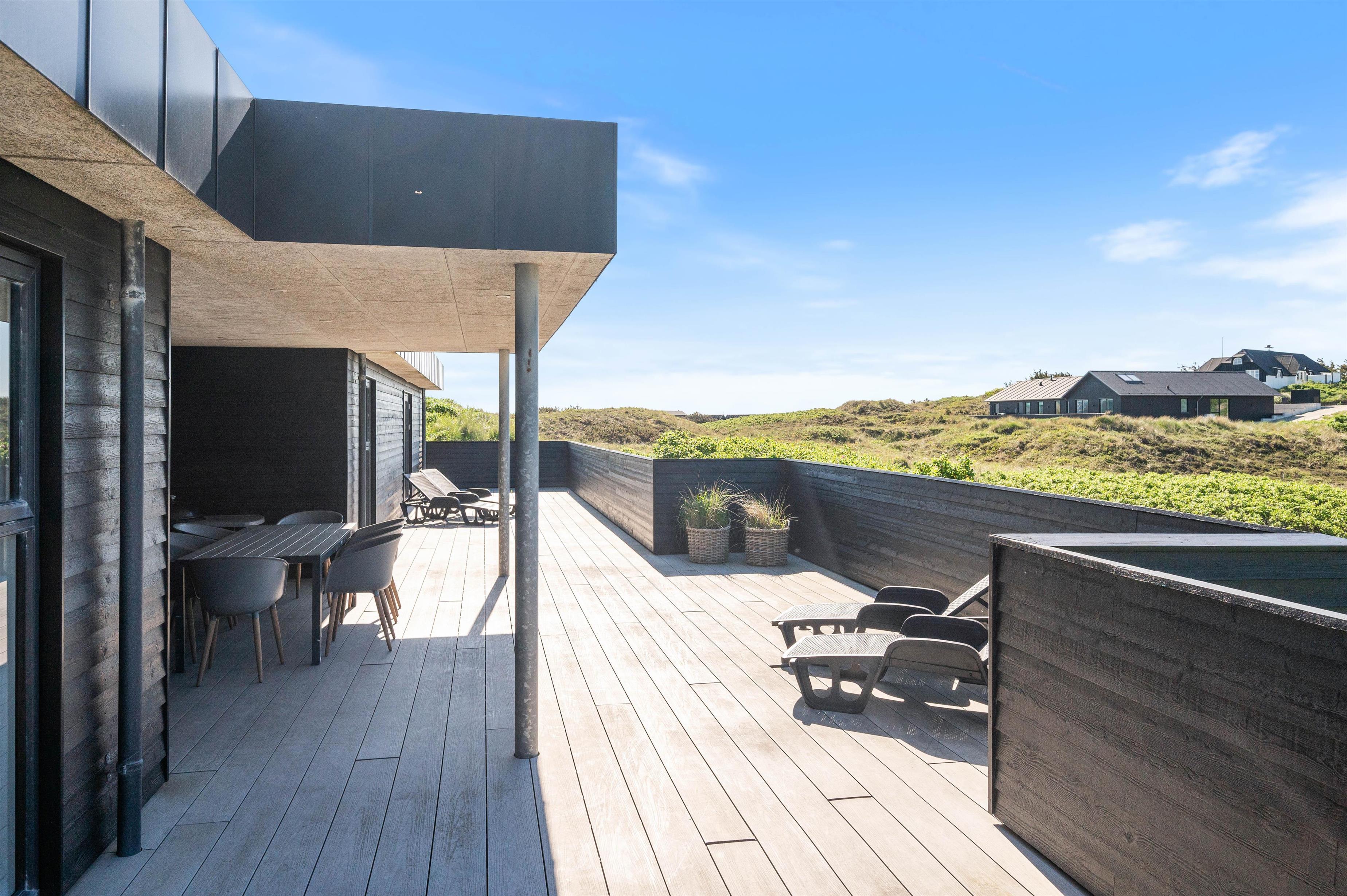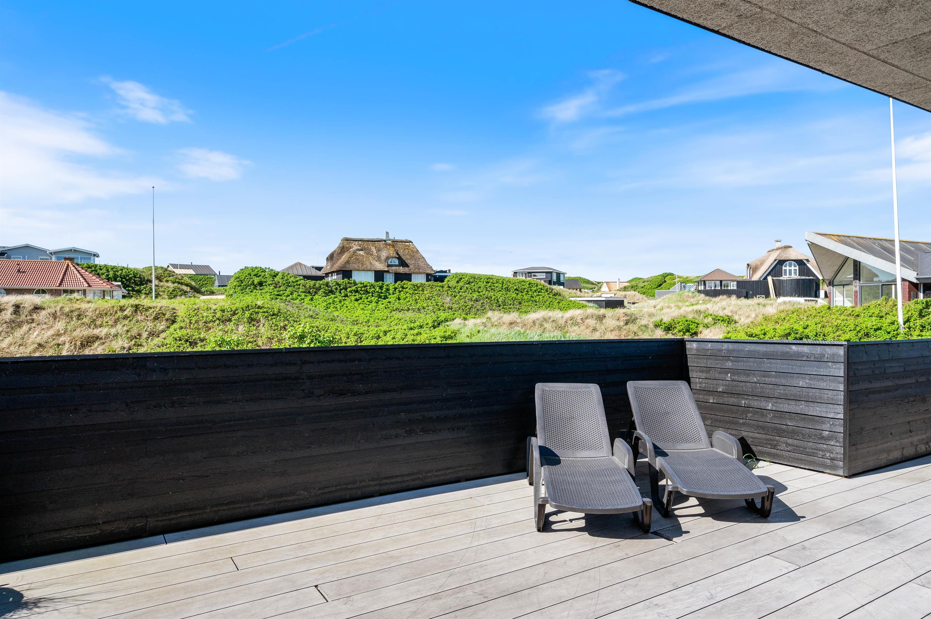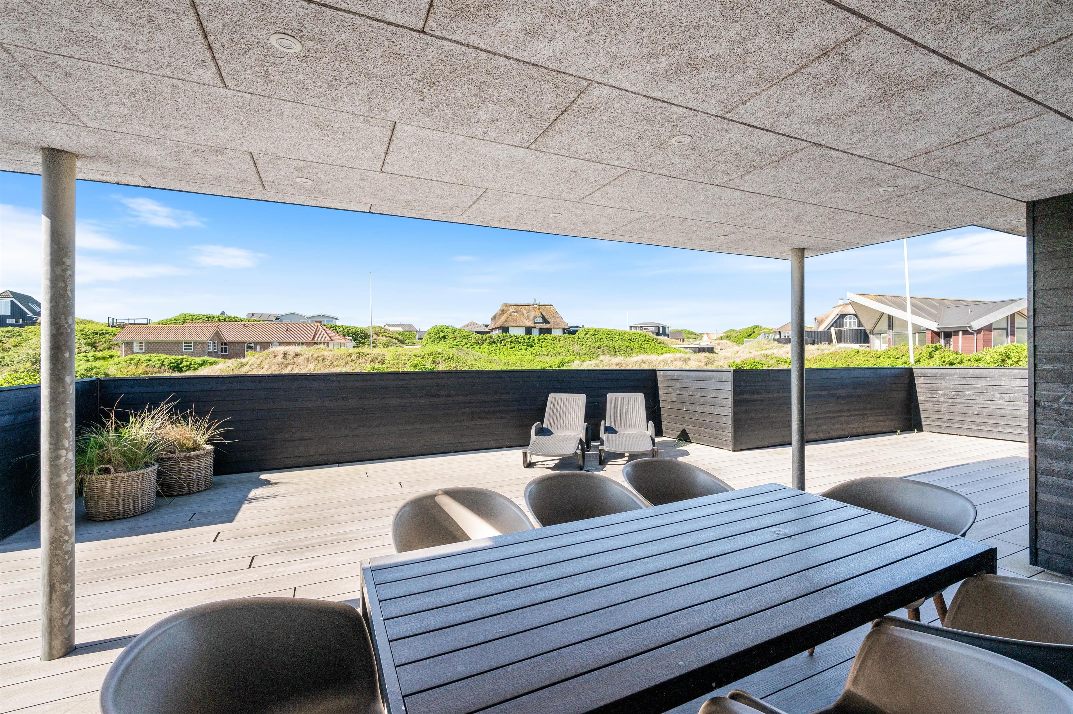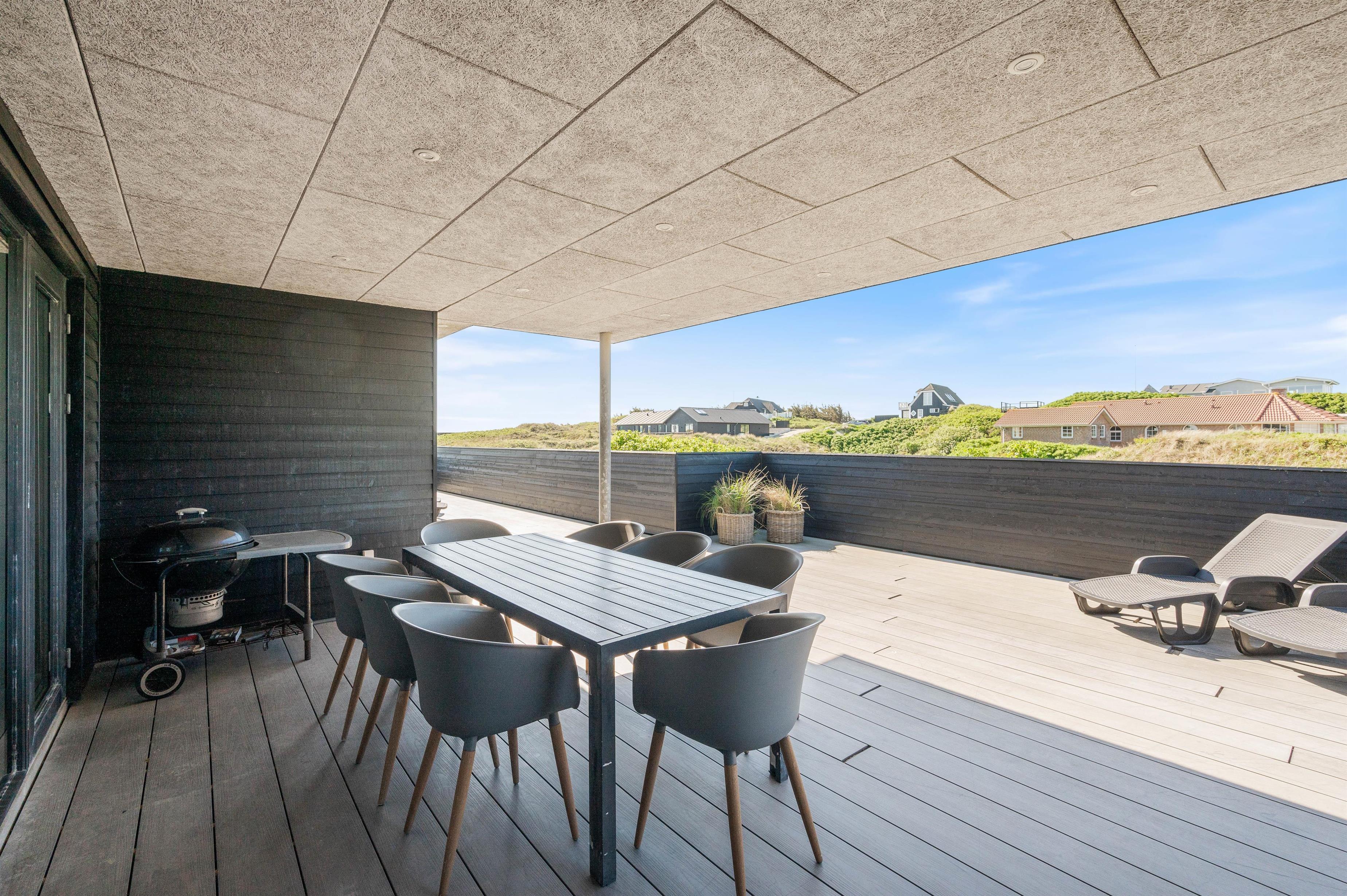 Derudover har sommerhuset en kæmpe terrasse, som er delvist lukket af, så den skærmer for den værste vind. Terrassen er også delvist overdækket, hvis I ønsker skygge fra solen. I har derfor god plads på det store terrasseområde, og ikke mindst en ubeskrivelig udsigt til den vestjyske natur. Til sommerhuset er der selvfølgelig diverse havemøbler, liggestole og en grill, som er oplagt til sommeraftnerne.