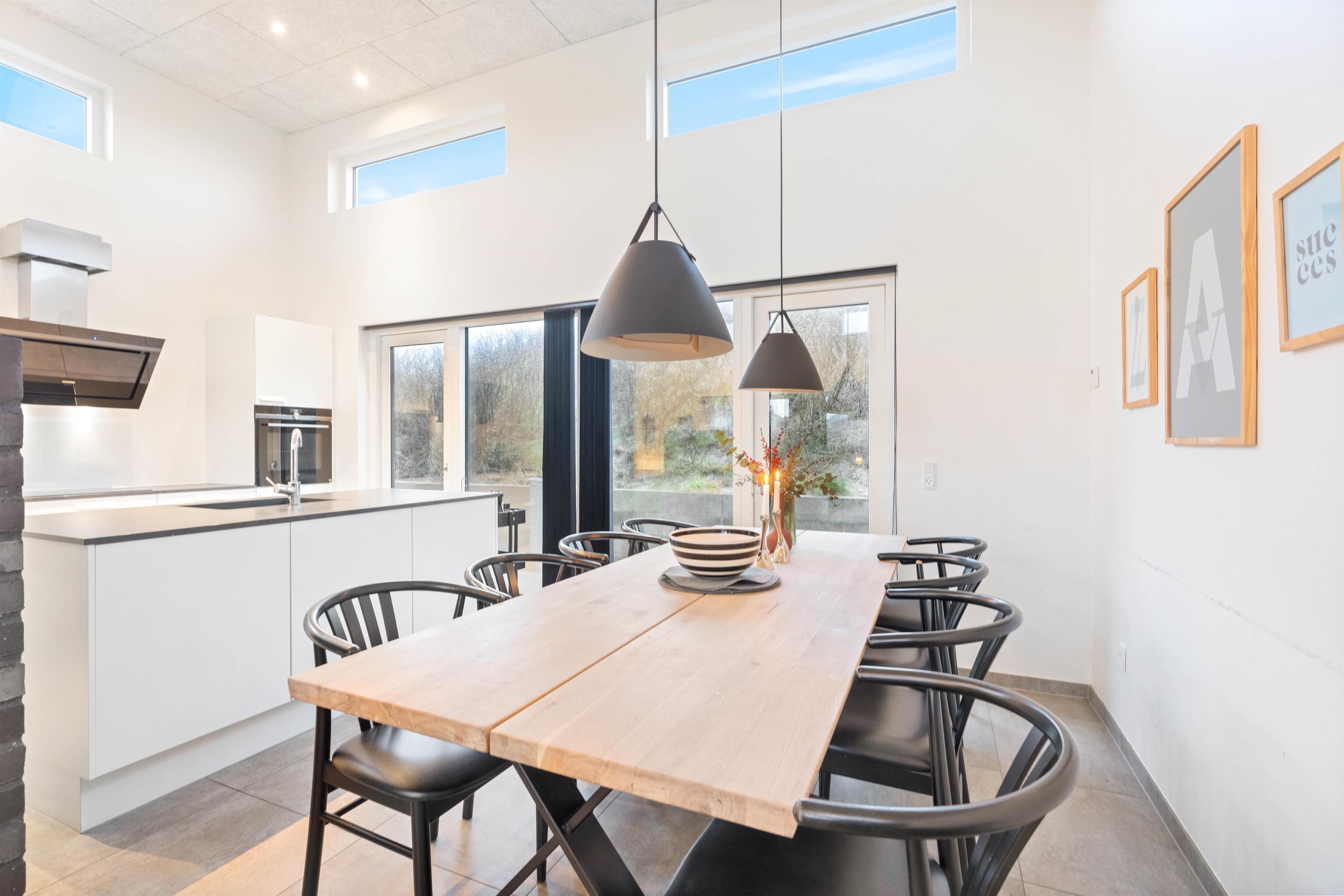 Dette sommerhus har plads til 8 personer fordelt på fire store og rummelige soveværelser - alle indrettet med en dobbeltseng. Sommerhusets stue og køkkenalrum er helt i særklasse, da det smukke lysindfald fra de store vinduespartier og de lækre materialer tilsammen skaber rammerne for en ferie, hvor der ikke er gået på kompromis med noget.
