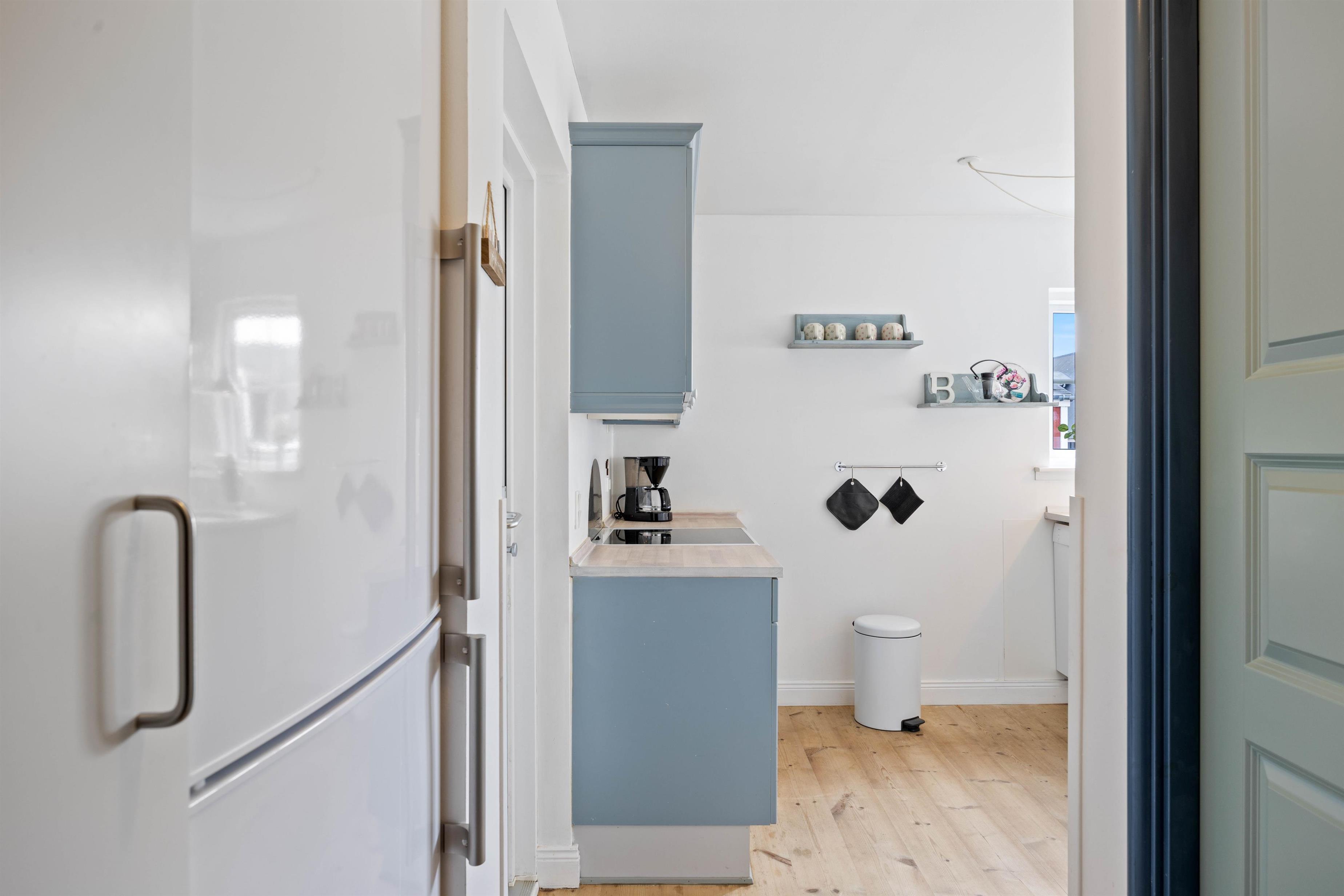 Fra stuen har I adgang til jeres afskærmede og lukkede terrasse, hvor I kan sætte jer godt til rette i ferielejlighedens havemøbler og nyde vejret, når det er til det. Tænd op i grillen på en varm sommeraften og nyd et lækkert måltid sammen med hele familien.