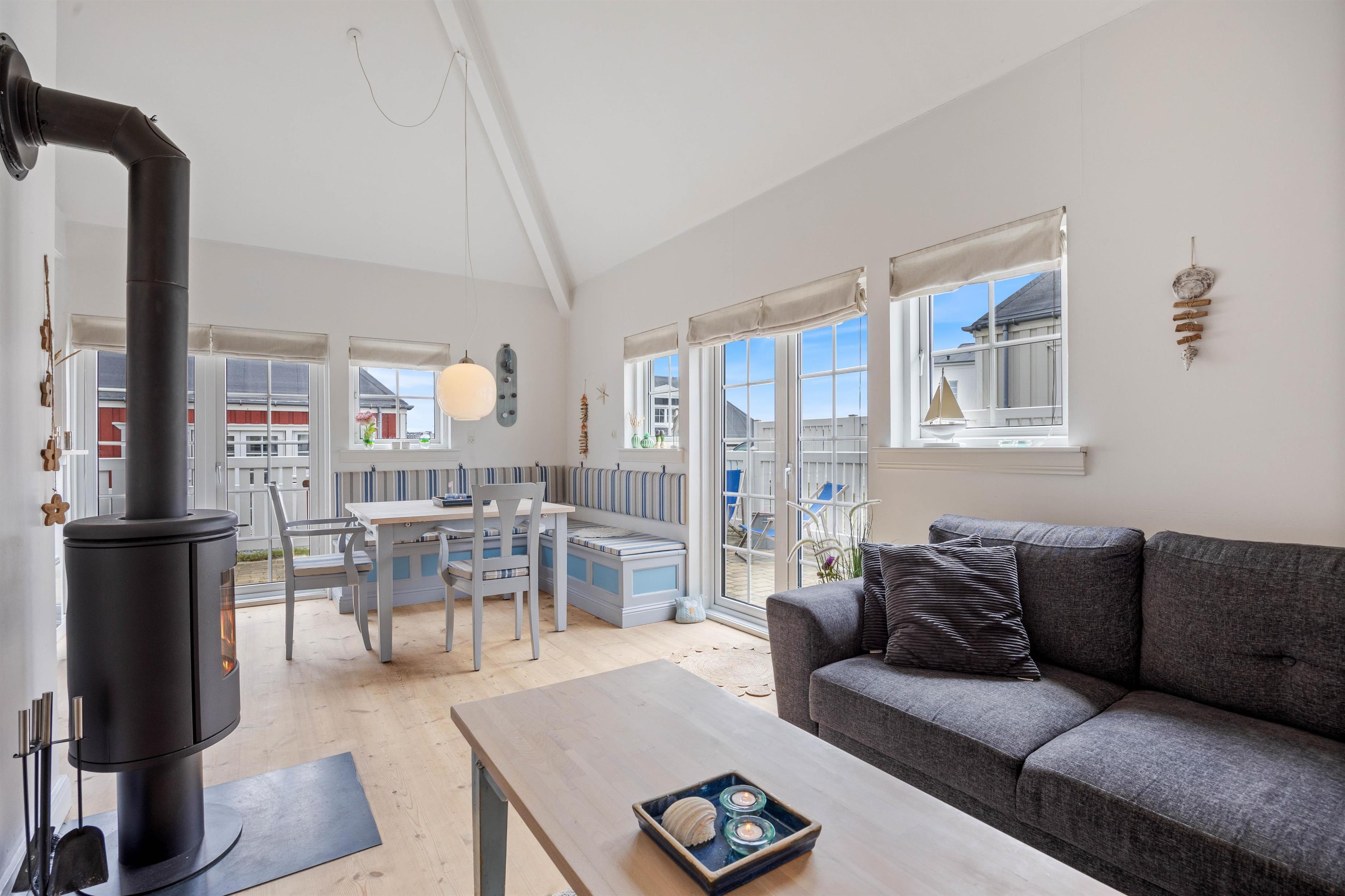 Denne hyggelige ferielejlighed er velindrettet over 2 etager. På øverste etage finder I feriehusets 2 soveværelser, der hver rummer en dobbeltseng. I stuetagen finder I en sovesofa, hvor der er plads til 2 yderligere overnattende gæster. I ferielejligheden finder I en opvaskemaskine, vaskemaskine og tørretumbler, så I ikke skal bekymre jer om det huslige, imens I nyder jeres ferie. I stuen finder I også en brændeovn, som kan varme stuen op i de kolde vintermåneder og bidrager til den helt rigtige feriehusstemning.