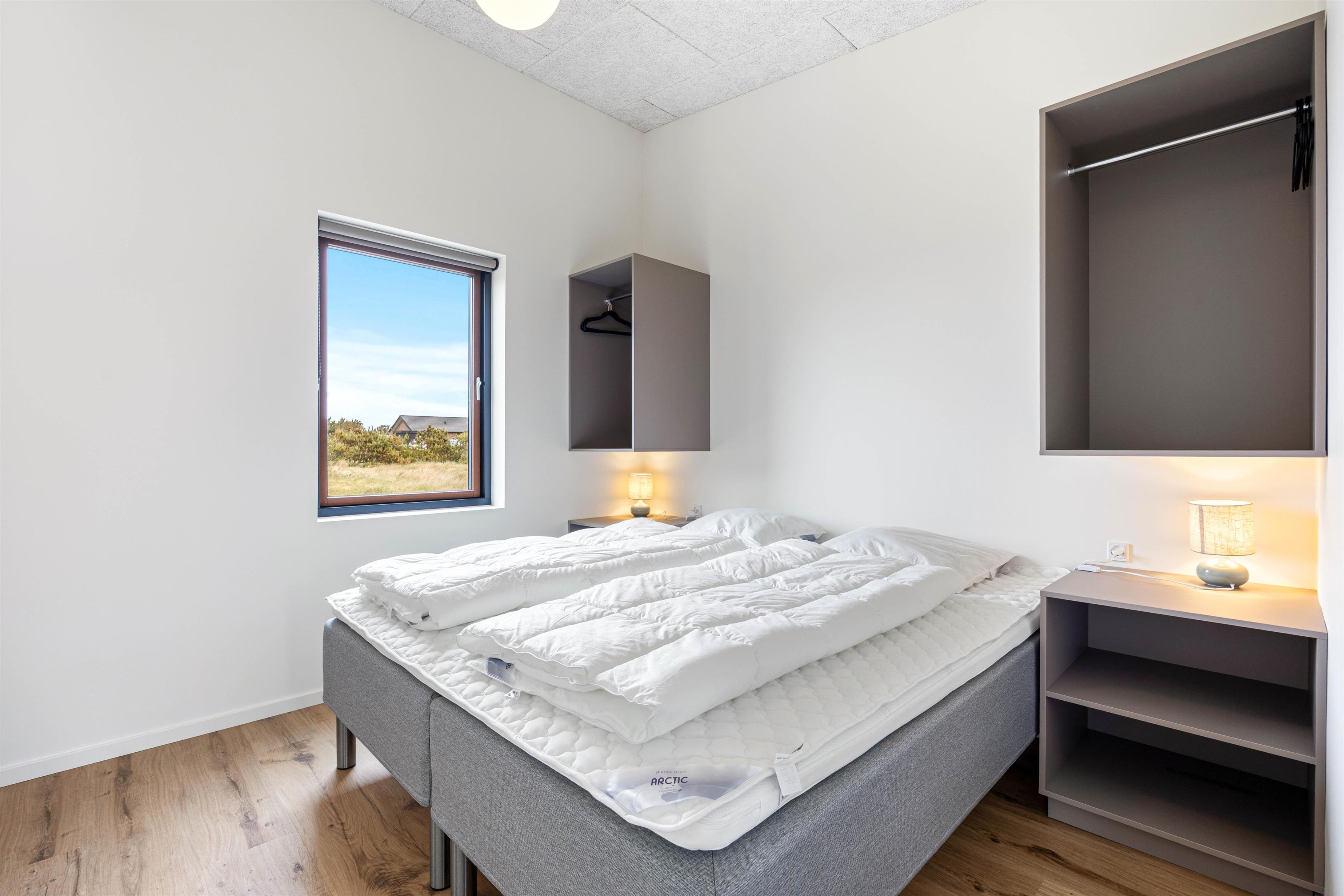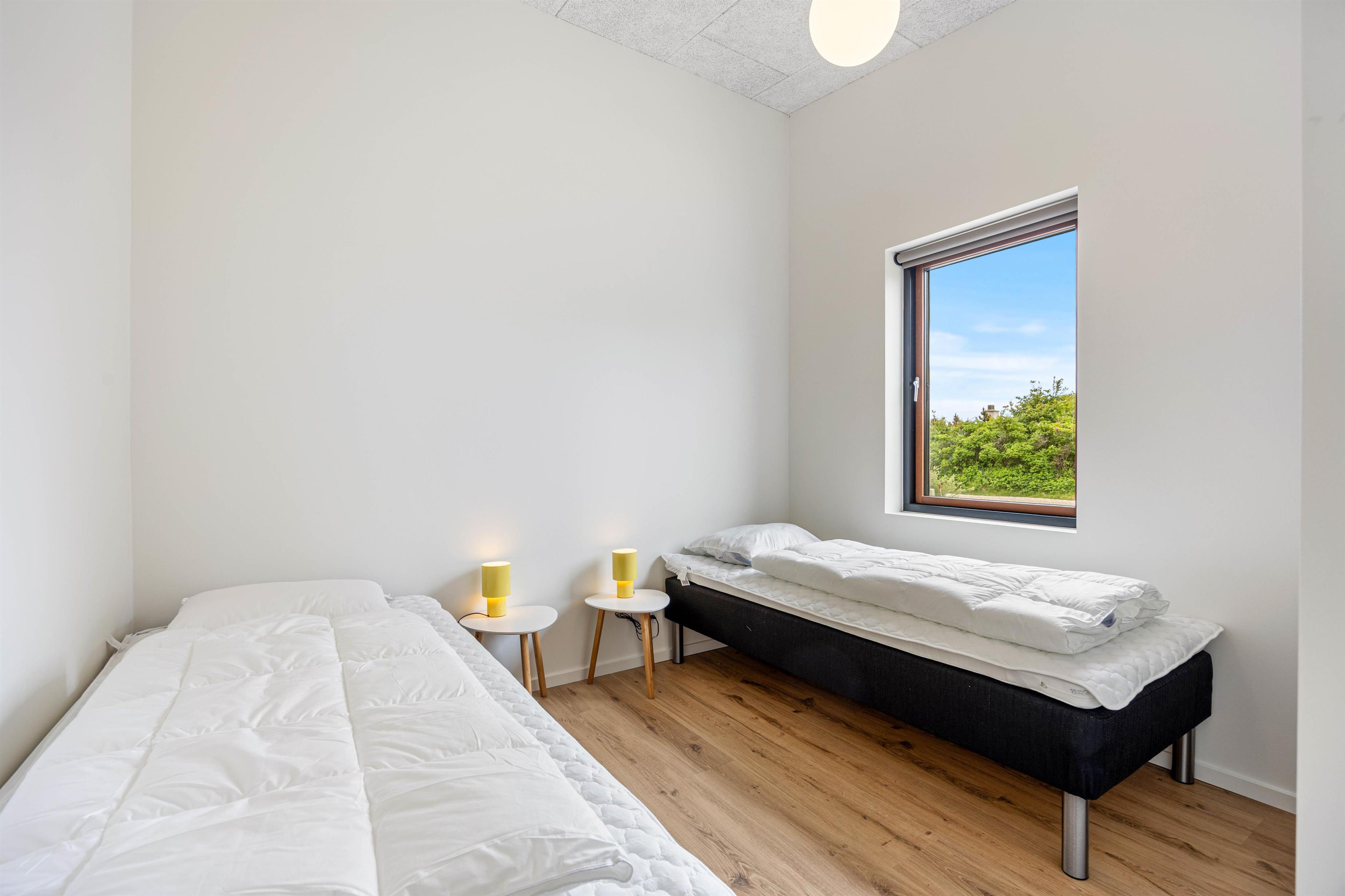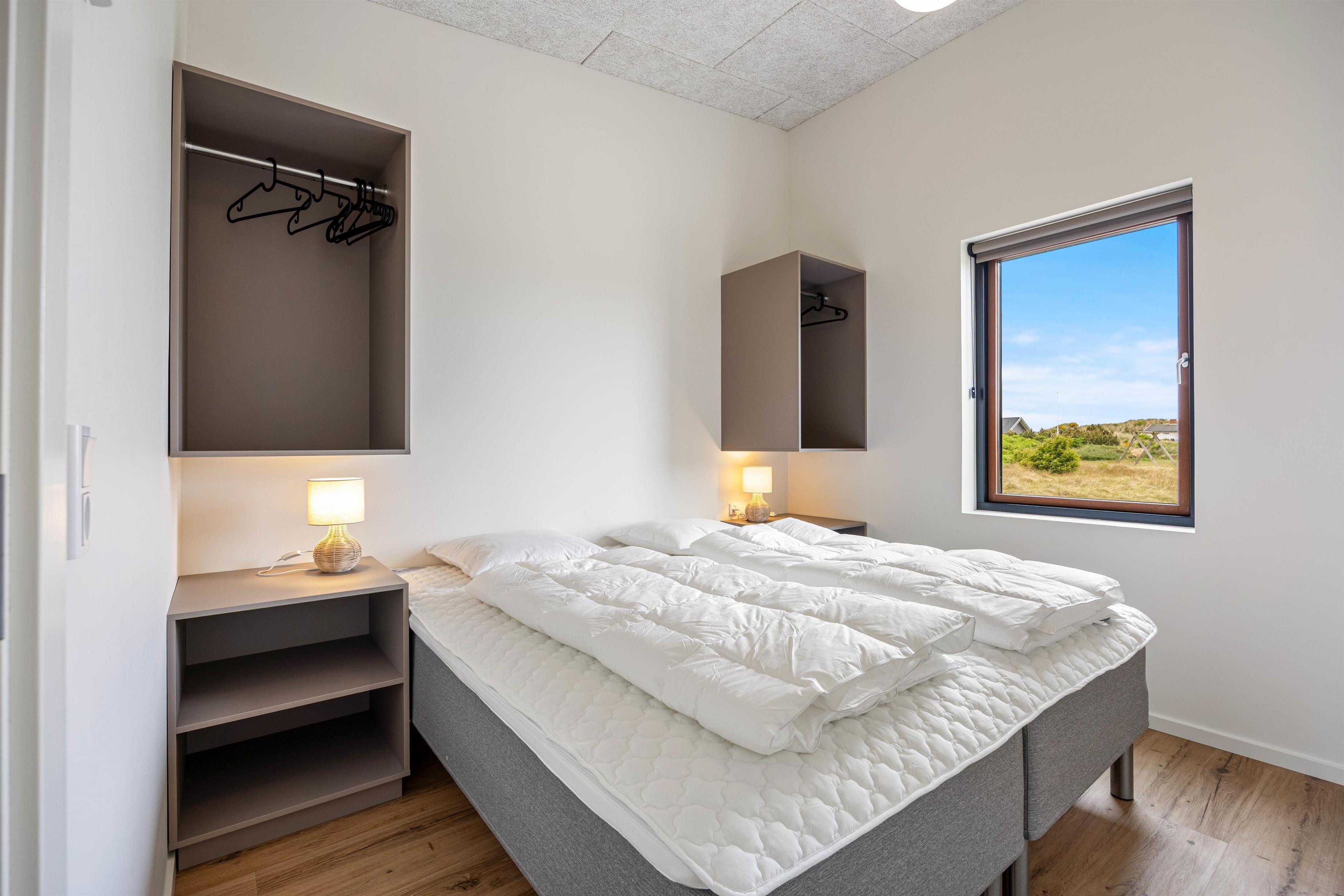 Sommerhuset er indrettet med 3 lyse og behagelige soveværelser, alle med dobbeltseng, så alle kan sove trygt og komfortabelt – ideelt til familier eller vennepar. Husets 2 badeværelser er begge udstyret med gulvvarme, som giver ekstra komfort.