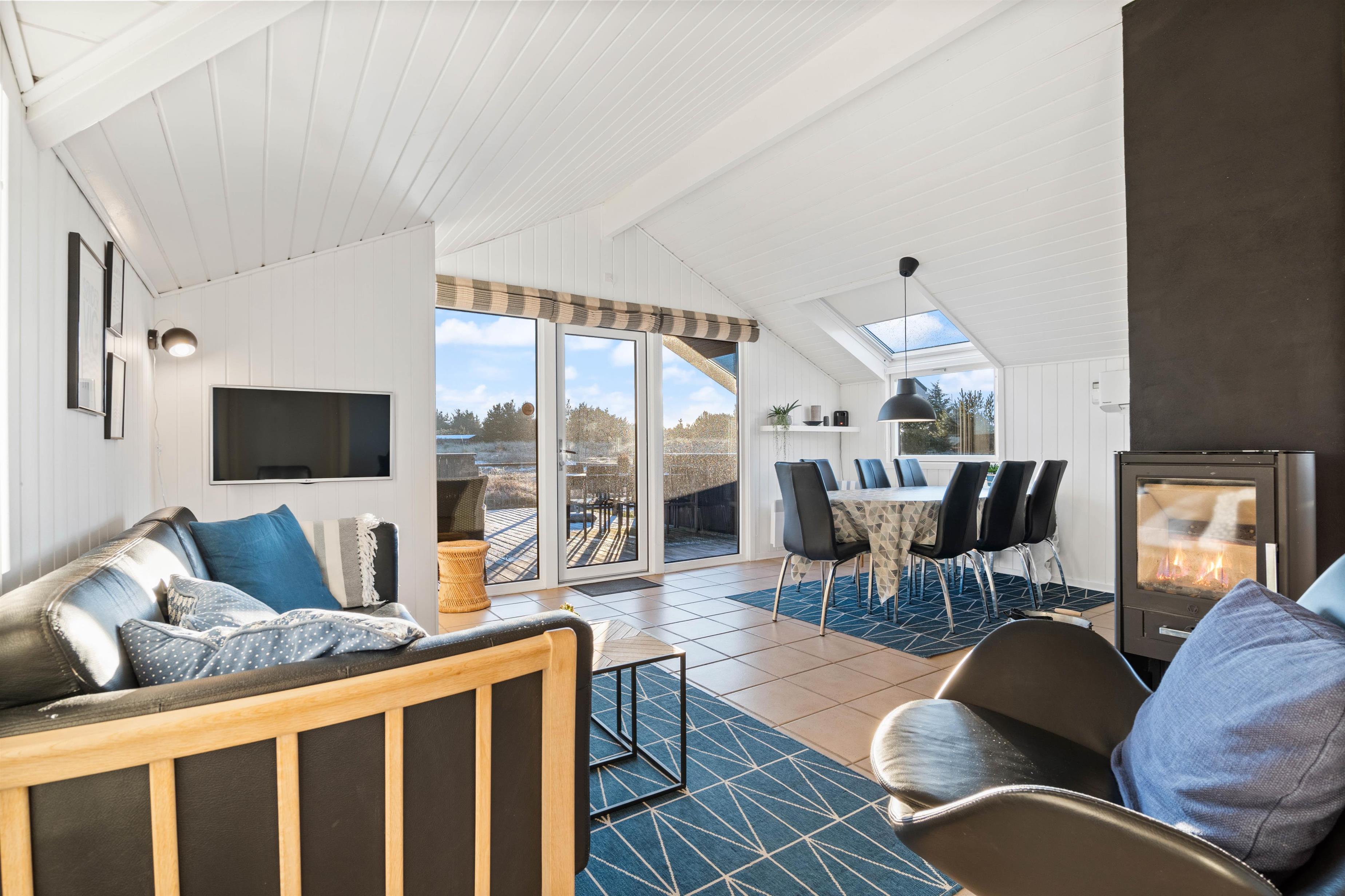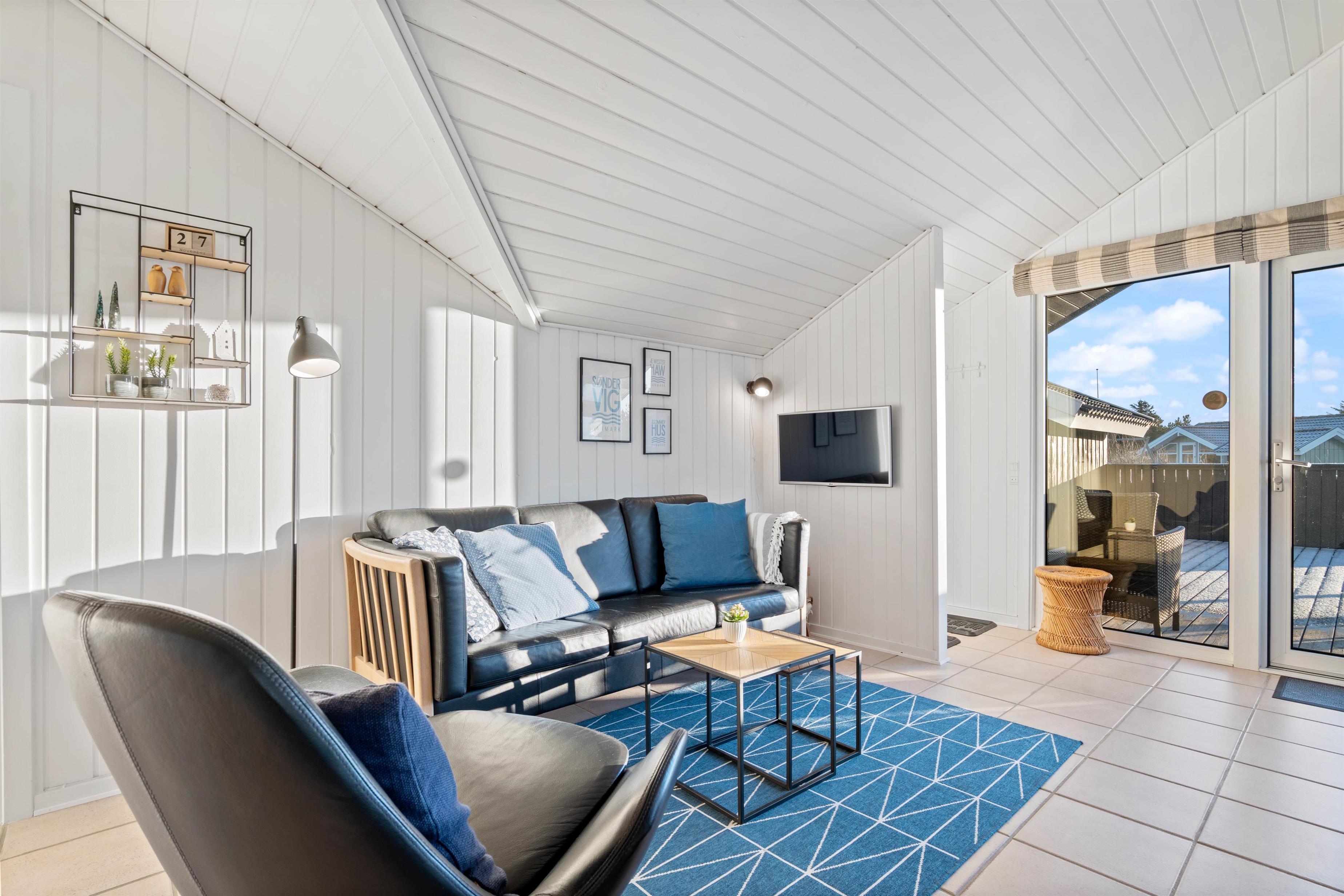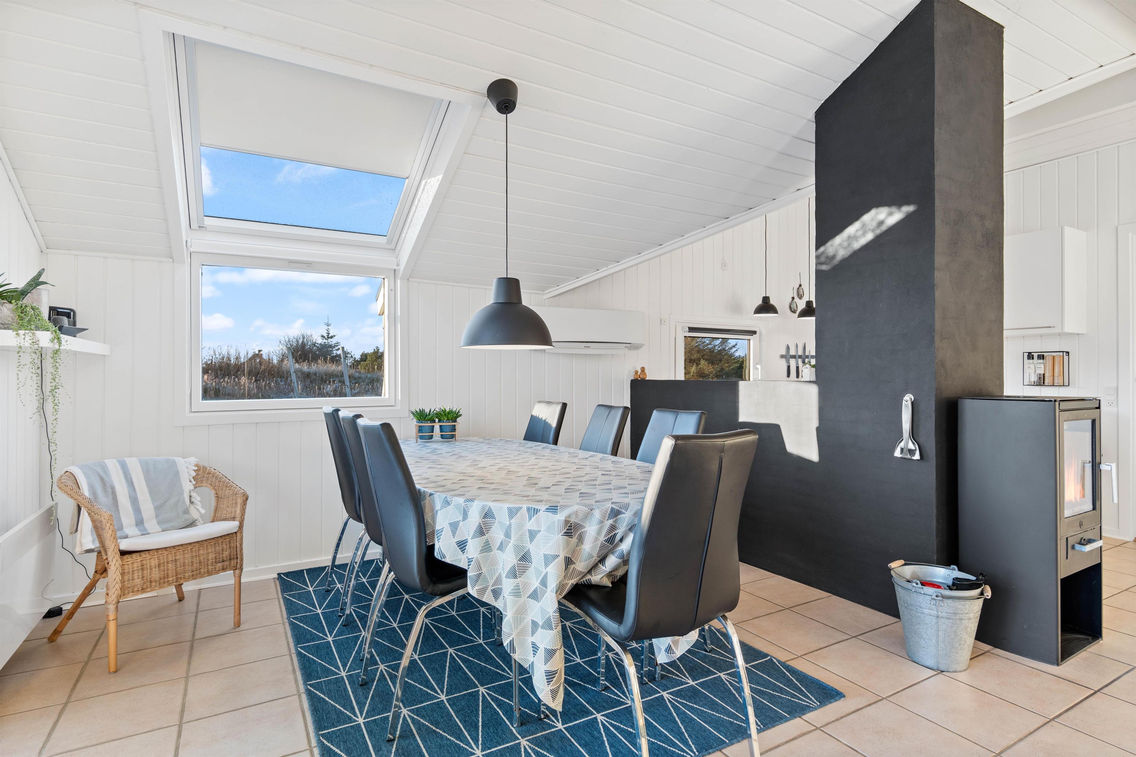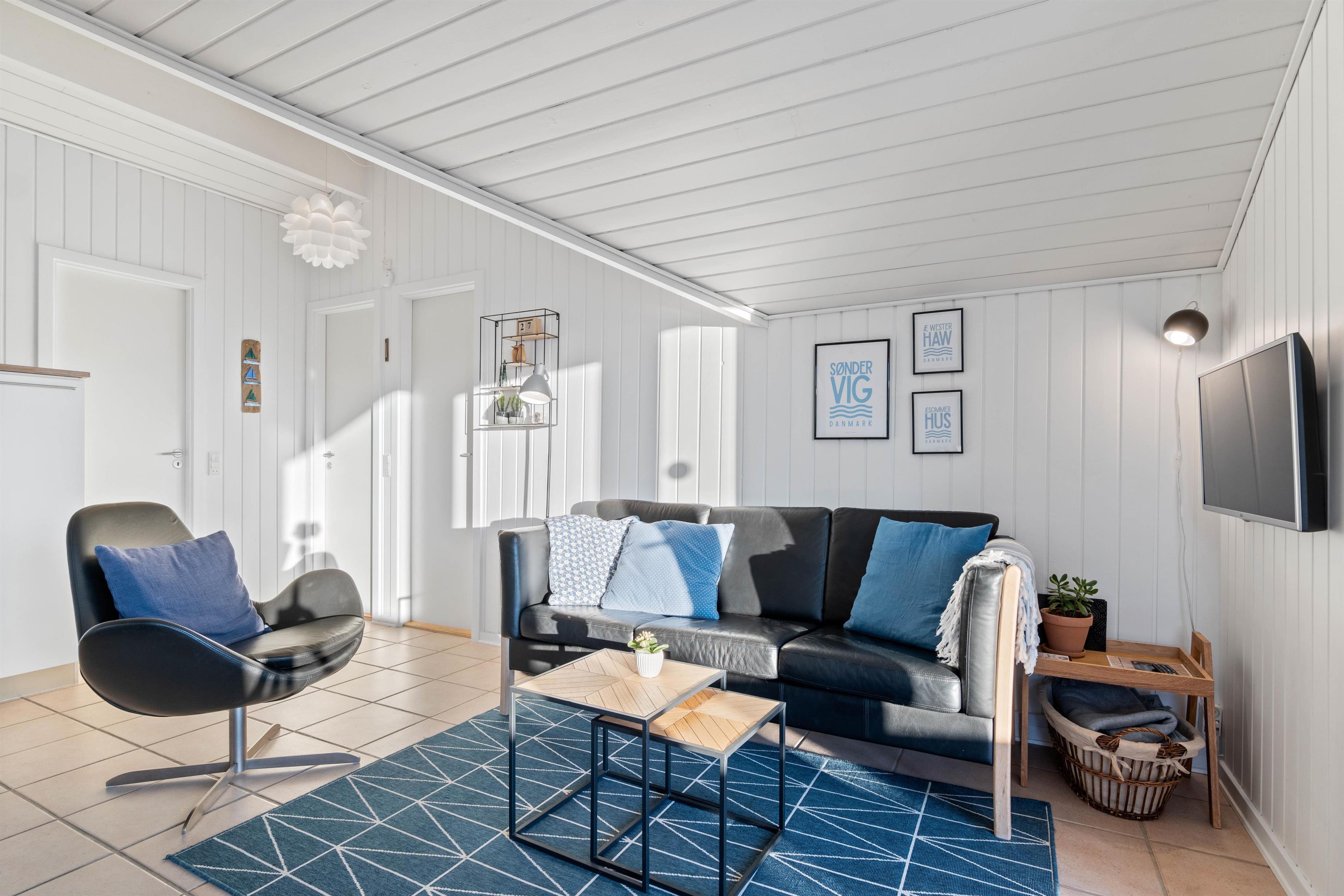 Køkken, stue og spisestuen/pladsen er et dejligt stort og lyst rum med praktisk klinkegulv, som er nemt at vaske over. Stuen er smagfuld indrettet med lyse møbler og fine detaljer. Køkkenet er funktionelt, og har alt hvad I skal bruge for at tilberede et lækkert feriemåltid. I køkkenet har I også en opvaskemaskine til rådighed, som vil sørge for den kedelige opvask. Et rigtig hyggeligt sommerhus, der lægger op til en masse samvær og afslapning.