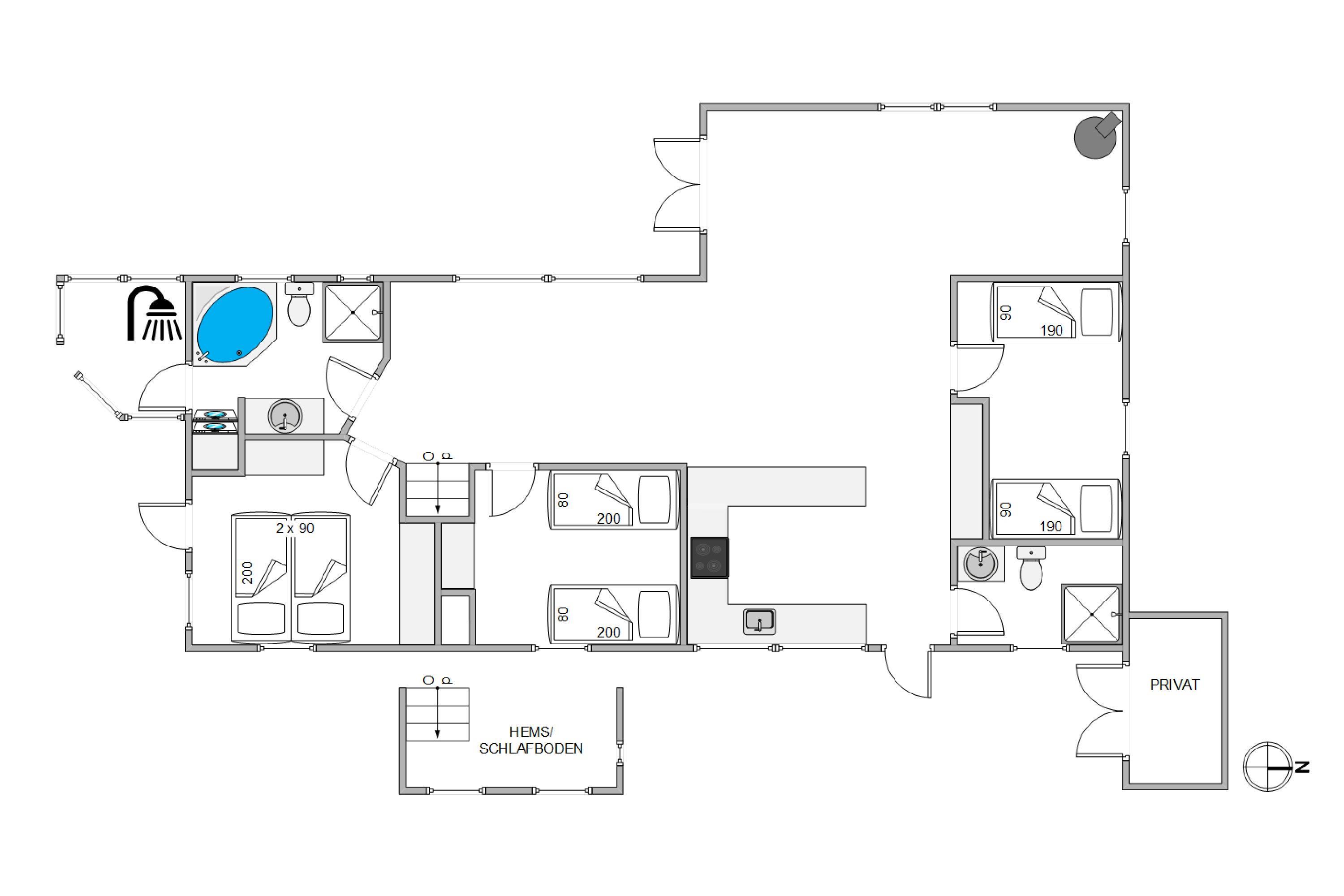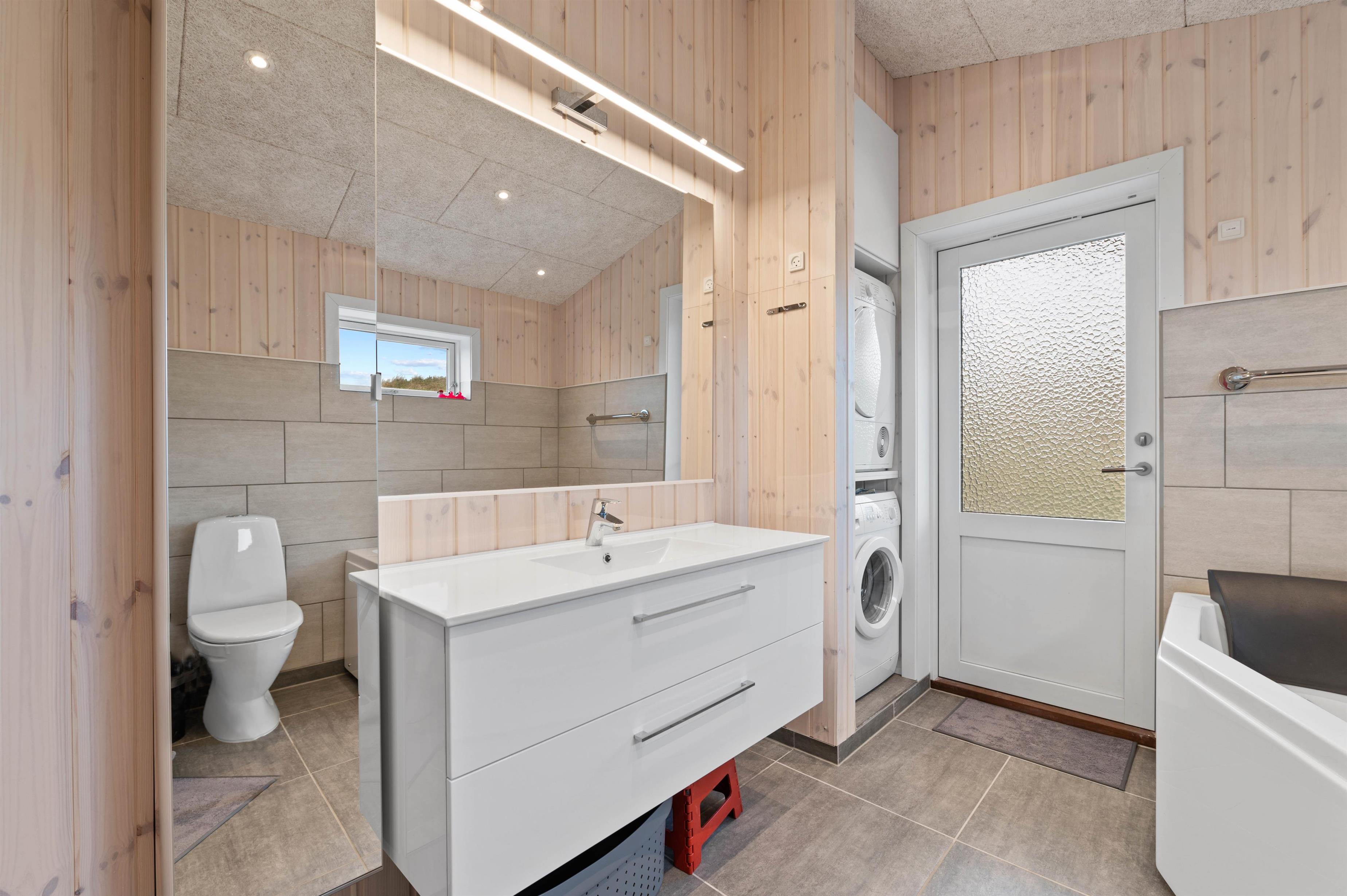 Feriehuset er indrettet med 2 badeværelser, der begge er udstyret med gulvvarme. På det ene af badeværelserne står der også en dejlig spa klar til at forkæle jer med masser af afslapning i det varme vand i løbet af jeres ferie.