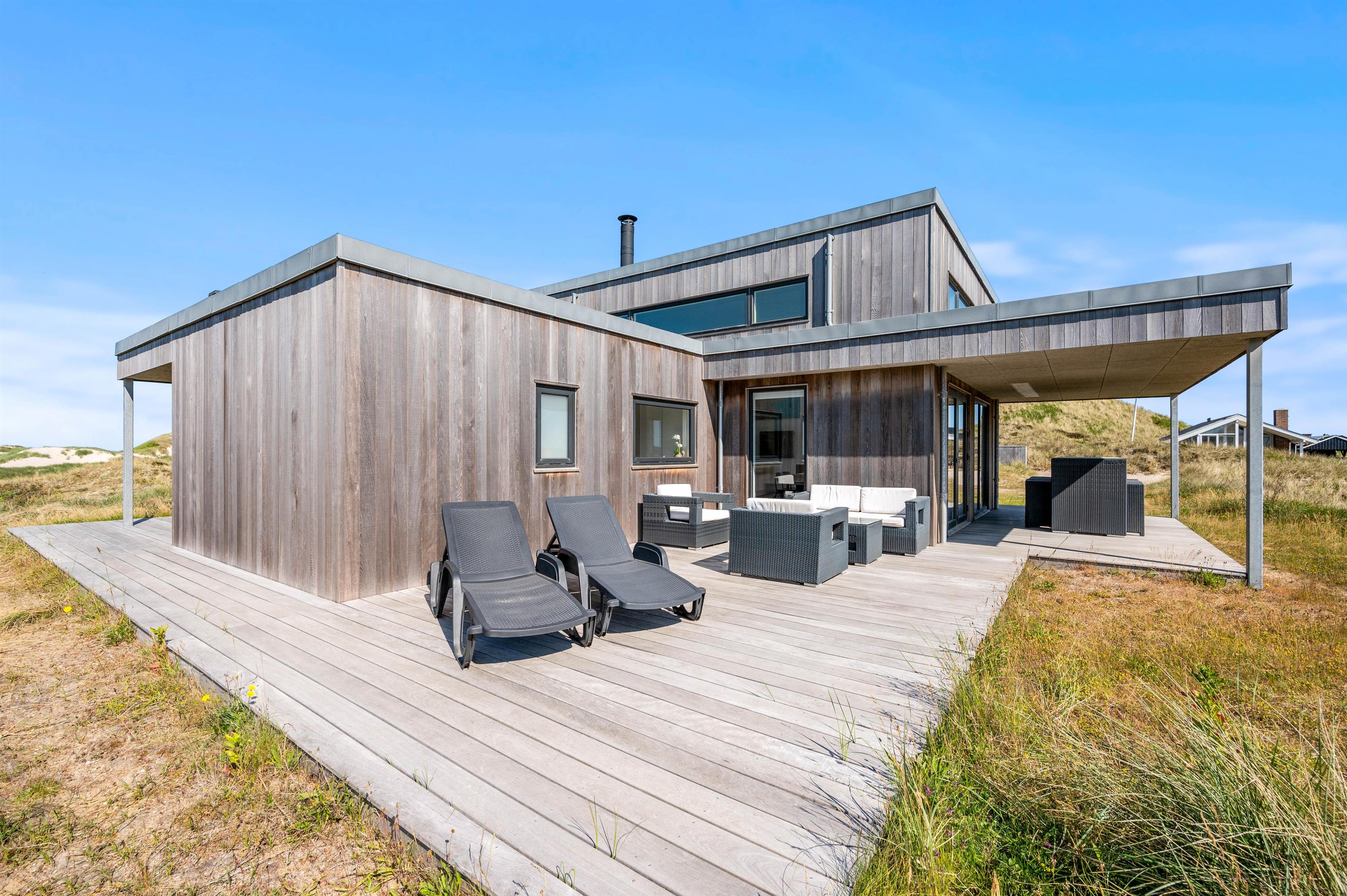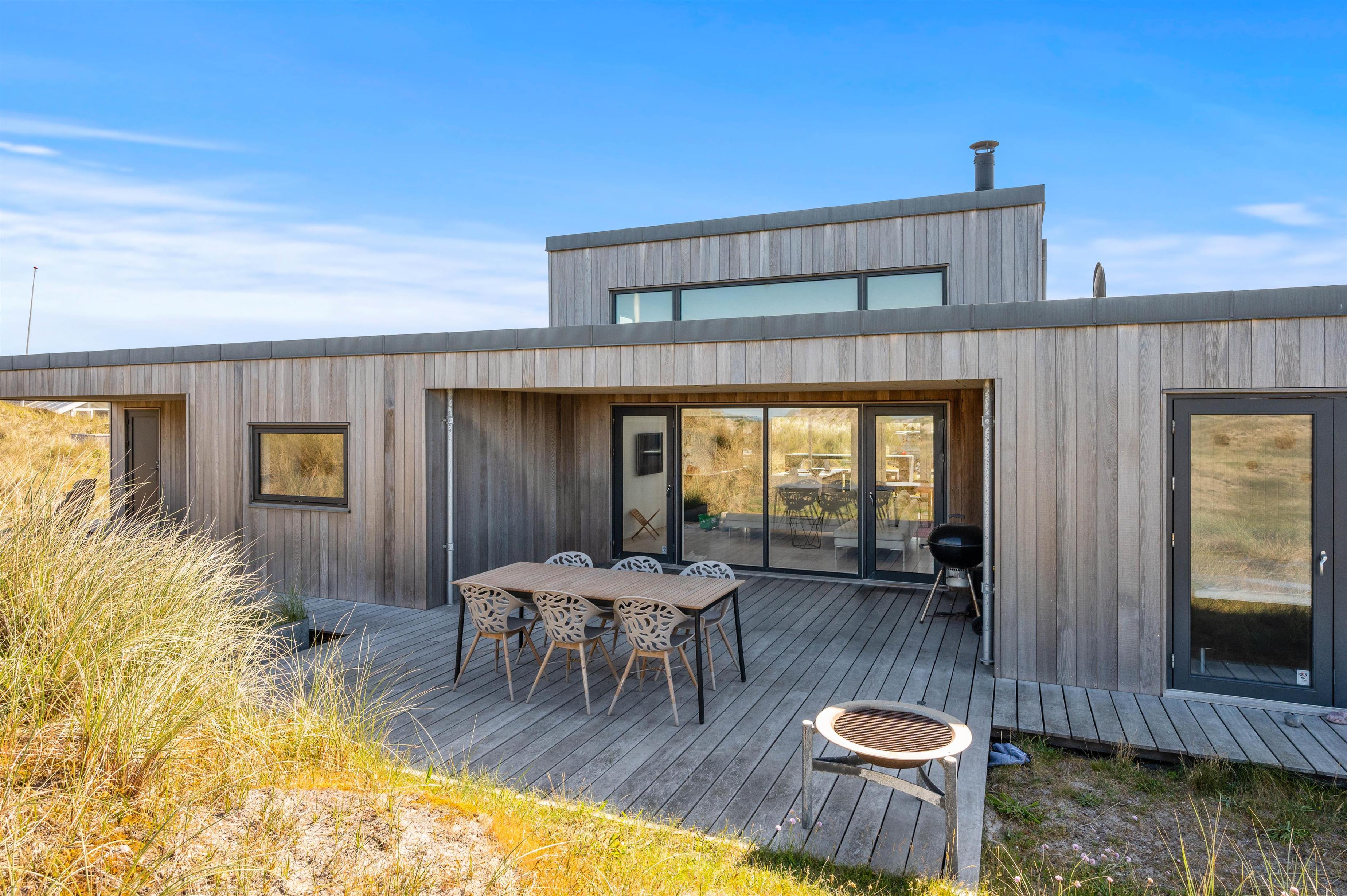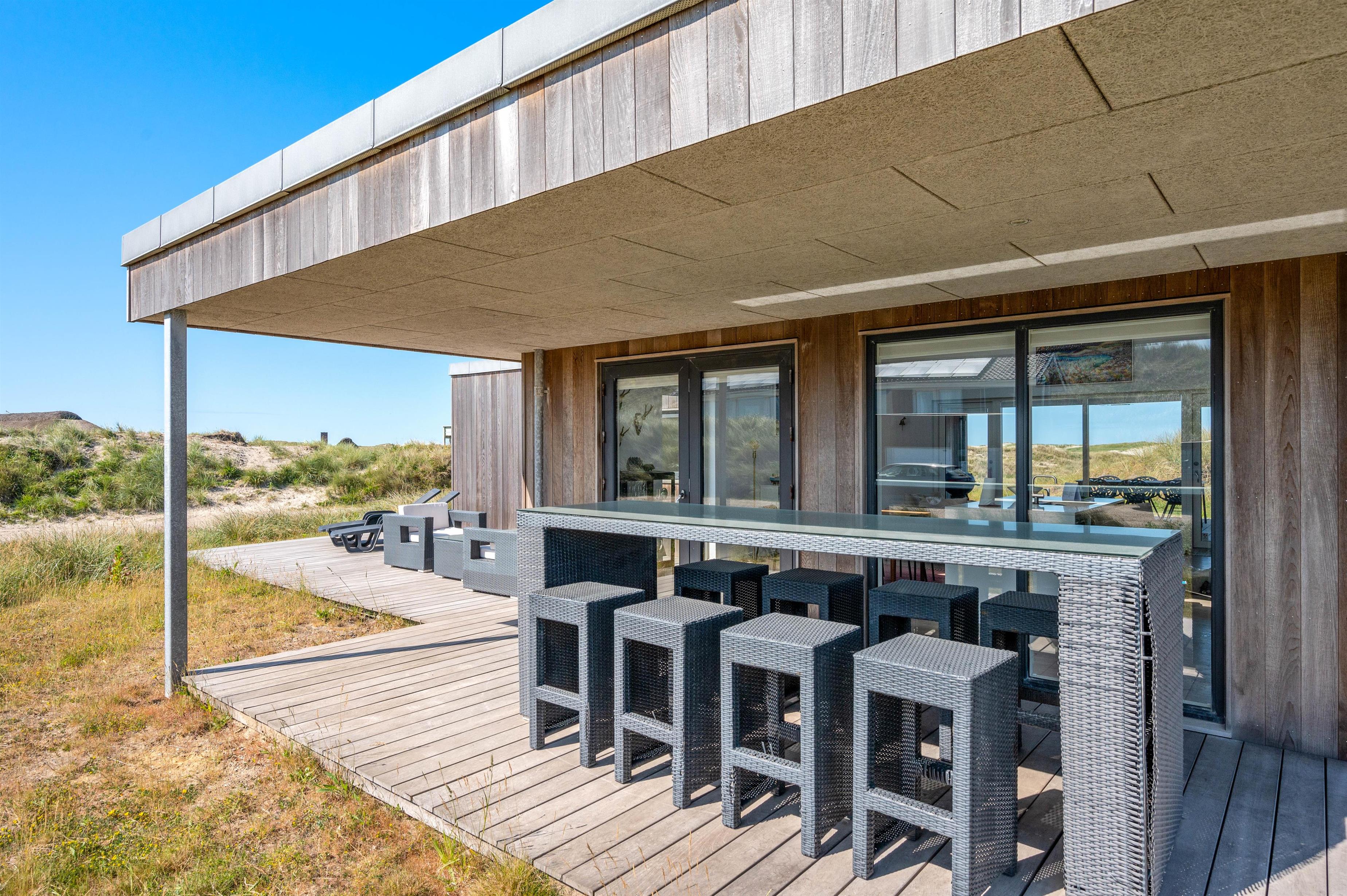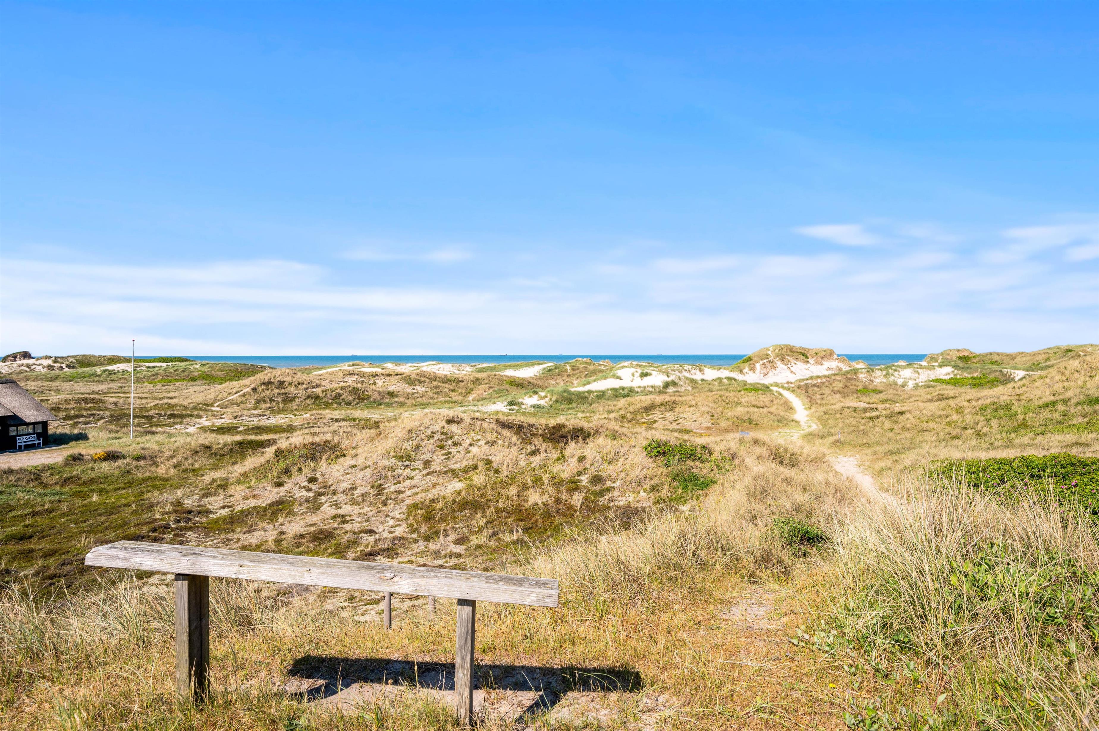 Blot et stenkast fra huset ligger den endeløse sandstrand og det brusende Vesterhav, som I kan nyde lyden af hjemme på husets terrasse - hvor der i øvrigt er installeret en udebruser, I kan skylle sandet af under efter strandturene. Udebrusen kan bruges i perioden april til november.