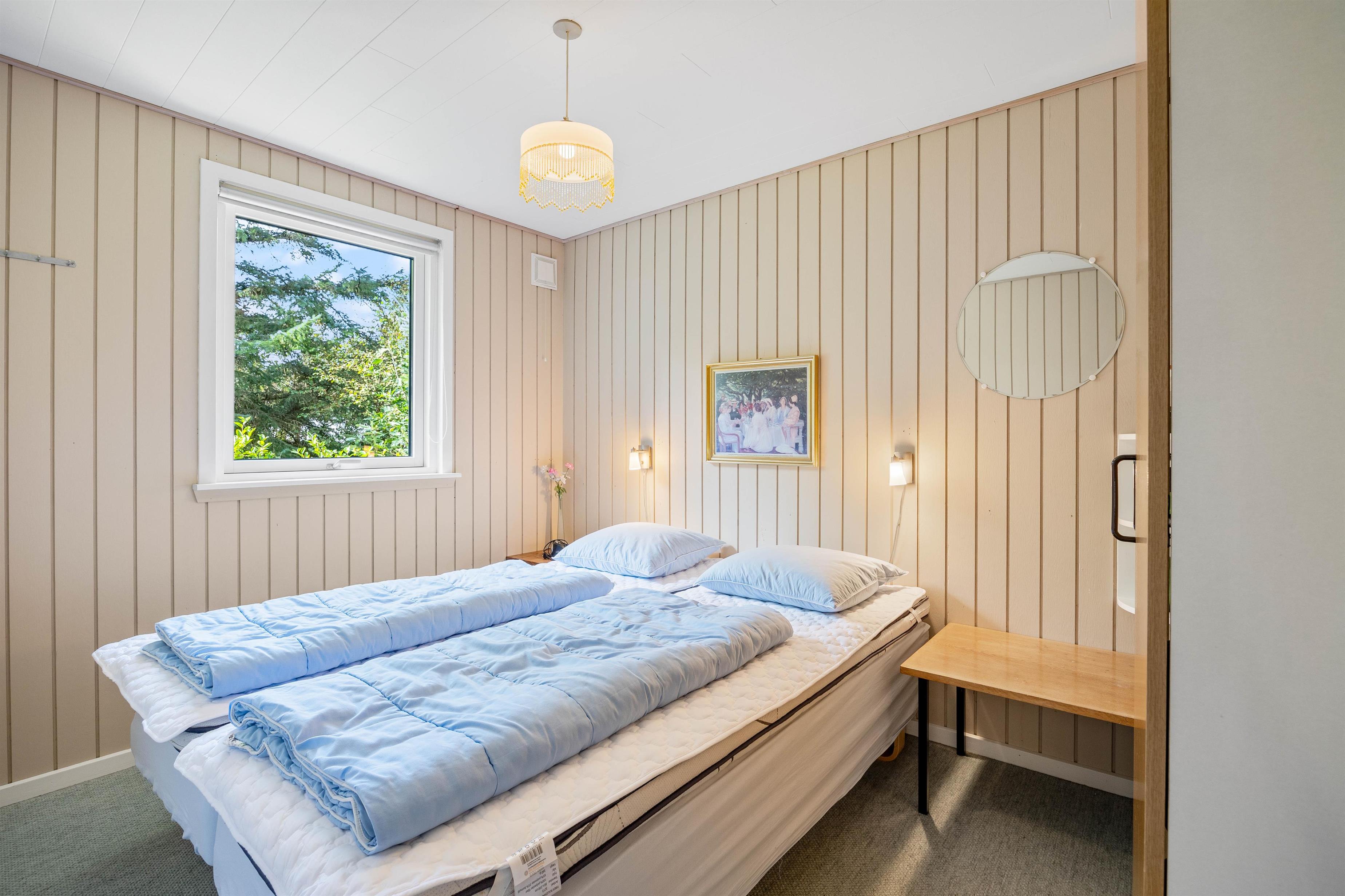 Begge soveværelse er udstyret med en dobbeltseng, og det ene er har også privat badeværelse med en lækker sauna, hvor I kan slappe helt af og nyde ferien.