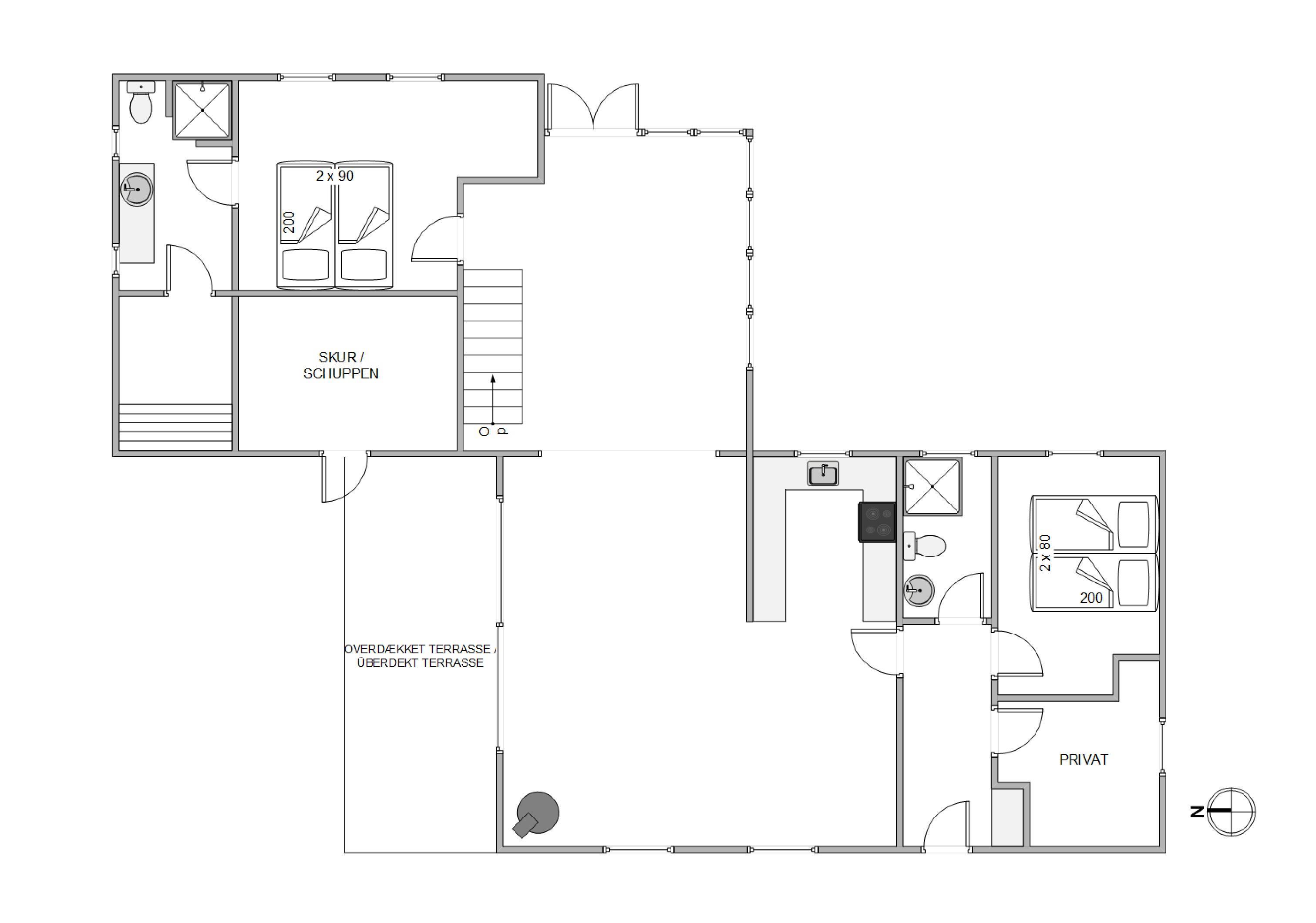 Sommerhuset byder på et bredt udvalg af faciliteter, der gør opholdet endnu mere bekvemt og afslappende. Til de varme sommeraftener er der en grill til rådighed, så I kan nyde et dejligt måltid udendørs på terrassen. Og med både en overdækket og lukket terrasse, er der altid mulighed for at finde et perfekt spot til afslapning, uanset vind og vejr.