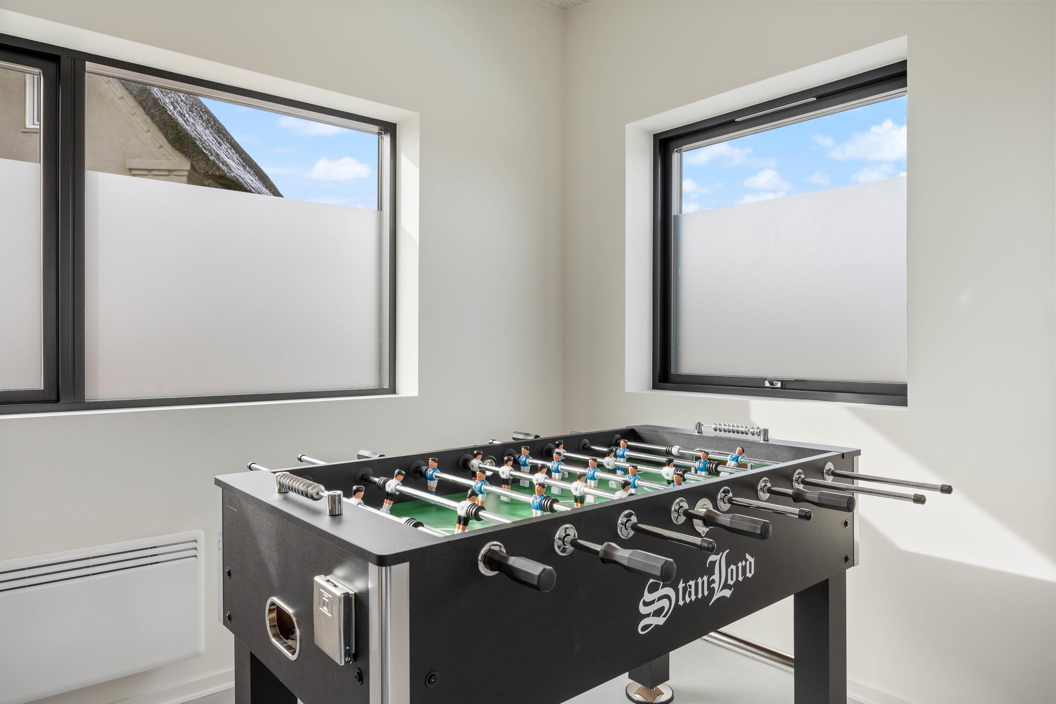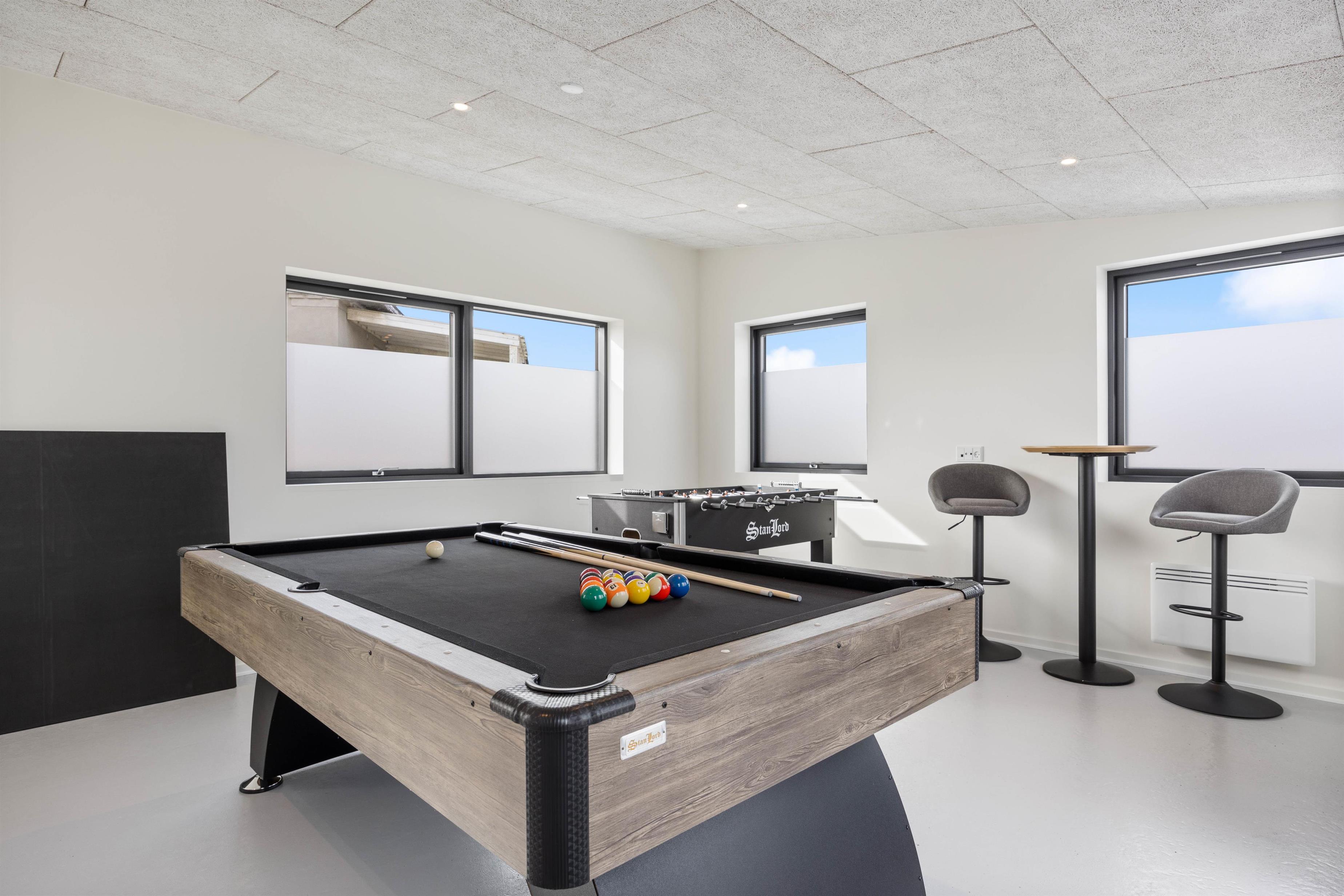 Feriehuset på Lodbergsvej 379 indehoder også et herligt aktivitetsrum med både bordfodbold, bordtennis og billard/pool som I kan hygge jer med på ferien, og holde turneringer i, mens opvaskemaskinen klarer opvasken.