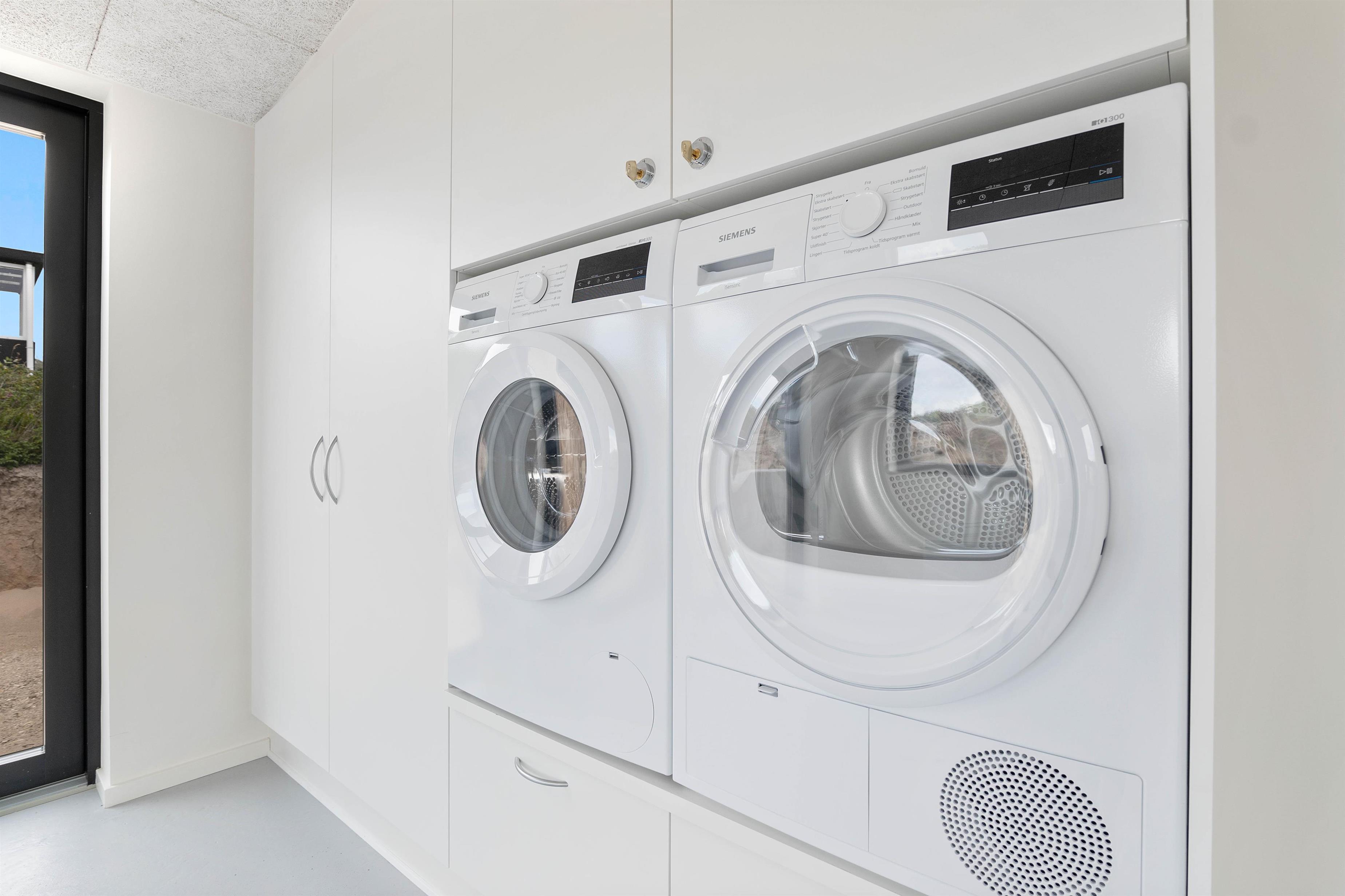 I feriehuset har I gode praktiske faciliteter i form af opvaskemaskine, vaskemaskine og tørretumbler, der hjælper jer med det praktiske husarbejde i løbet af ferien. Derudover er feriehuset indrettet med et højt isoleringsniveau og en energivenlig varmepumpe, der sørger for behagelige temperaturer.