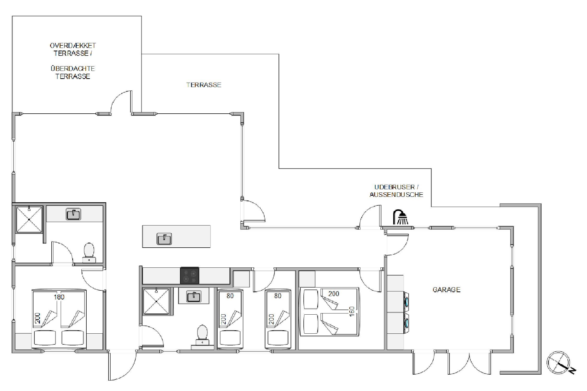 Som jeres energi efterhånden er ved at være brugt op, kan I så småt bevæge jer mod sommerhusets 3 soveværelser. Her kan I få jer en god nats søvn, så og få samlet ny energi. De tre soveværelser er i alt indrettet med to dobbeltsenge og to enkeltsenge. Når I står op næste morgen, skal I ikke stå i kø til badeværelset, da feriehuset rummer hele to badeværelser, der endda har gulvvarme.