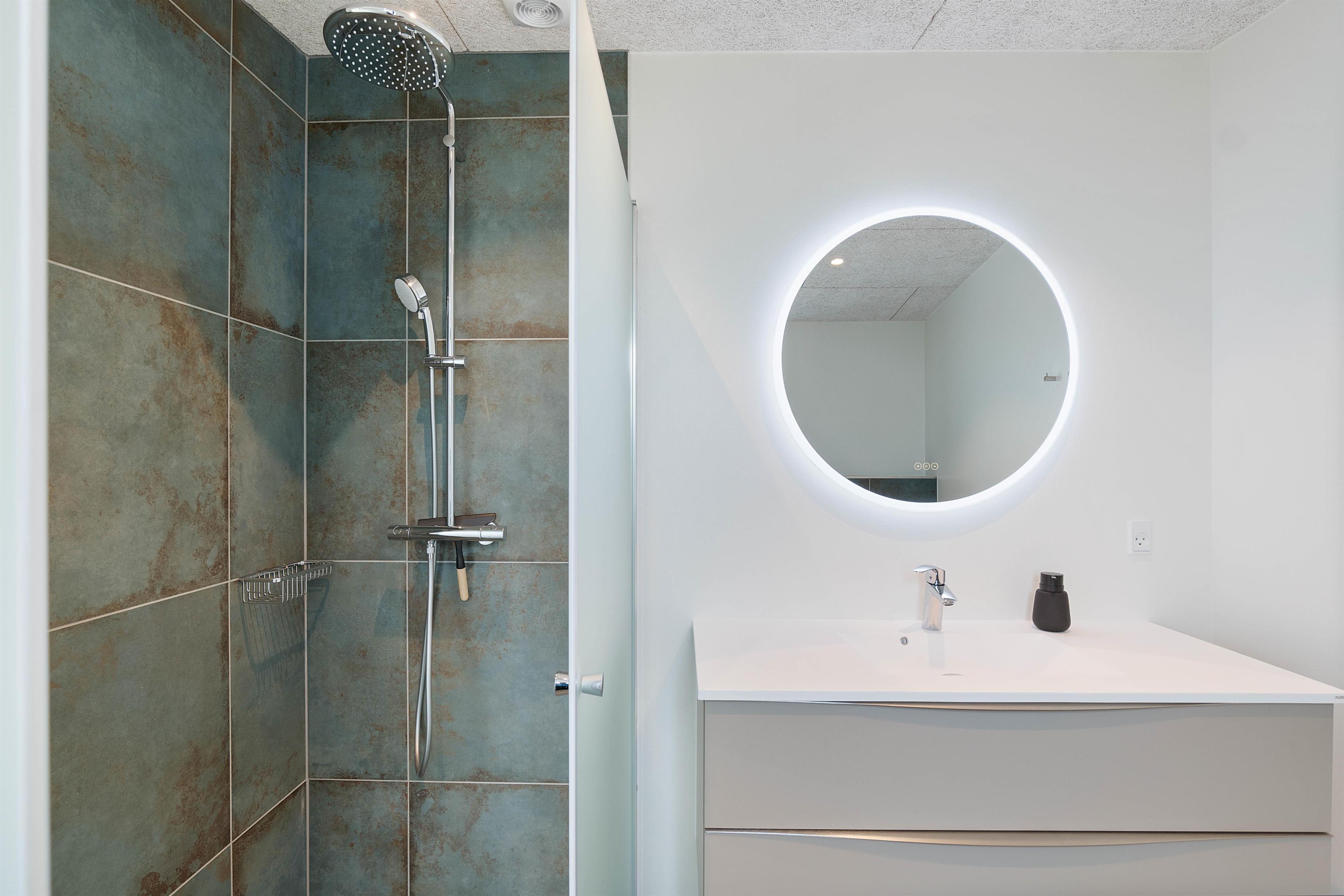 Et af husets absolutte hightlights er også vildmarksbadet. Det er både med vand og luftmassage og lys, og indbyder til mange hyggelige feriestunder. Efter en lang dag ved stranden, kan I også skylle sandet af fødderne under udebruseren.