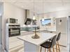 Det smarte og veludstyrede køkken indbyder til hygge med fællesskab omkring madlavningen, om man selv rører i gryden eller har åbnet en flaske vin og holder kokken med selskab siddende på en barstol ved køkkenøen. For god og økonomisk varme sørger husets varmepumpe.