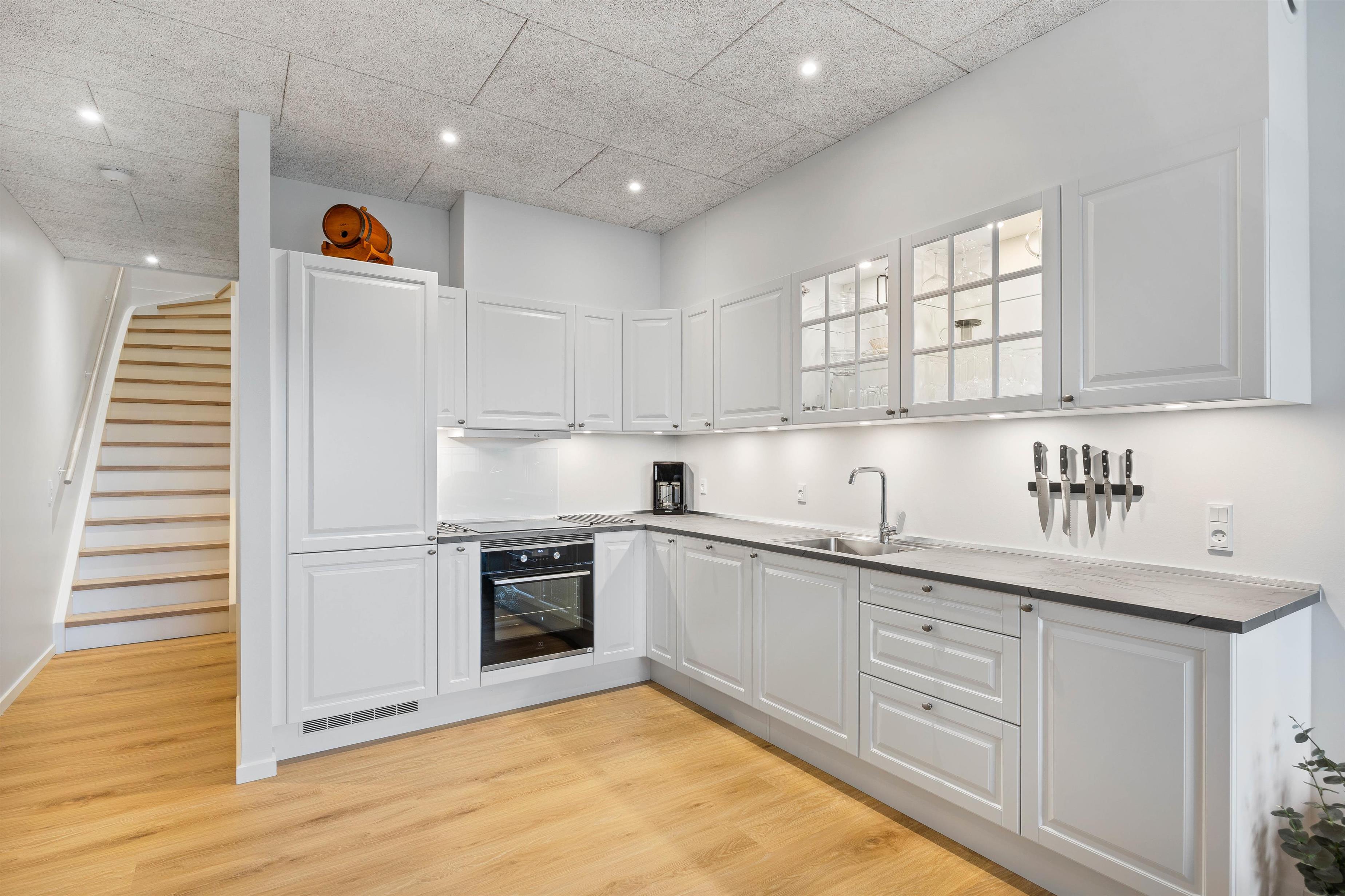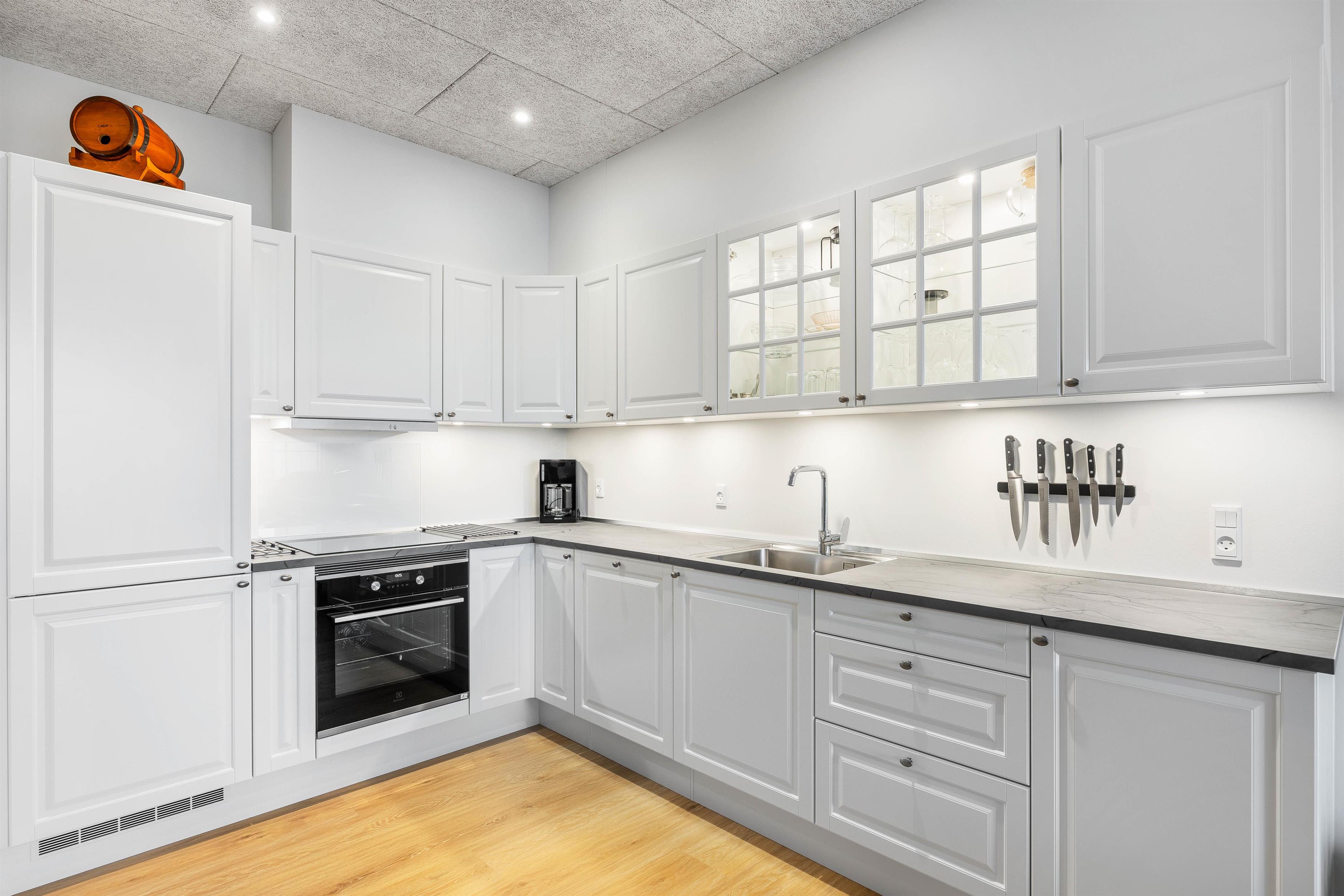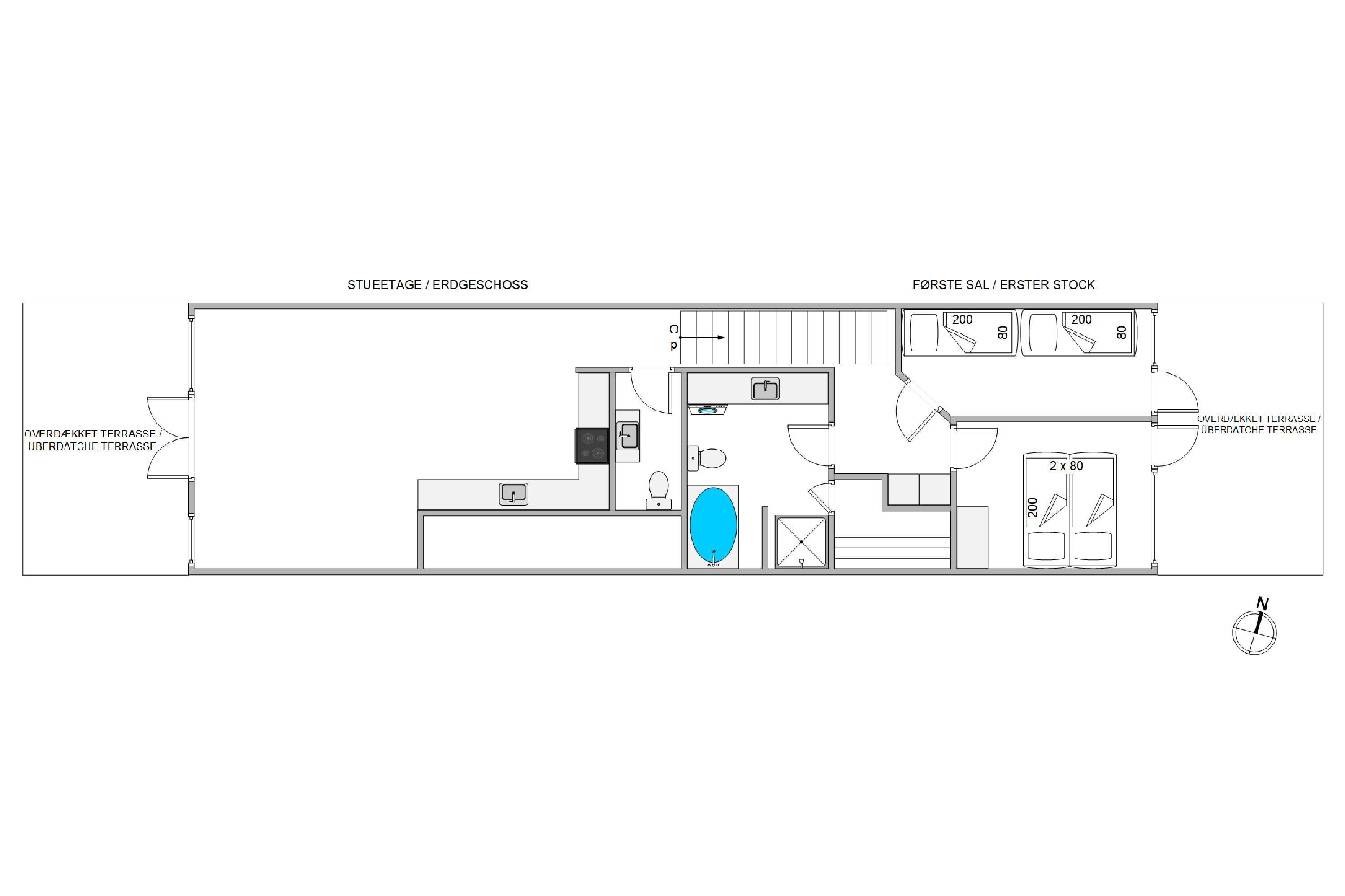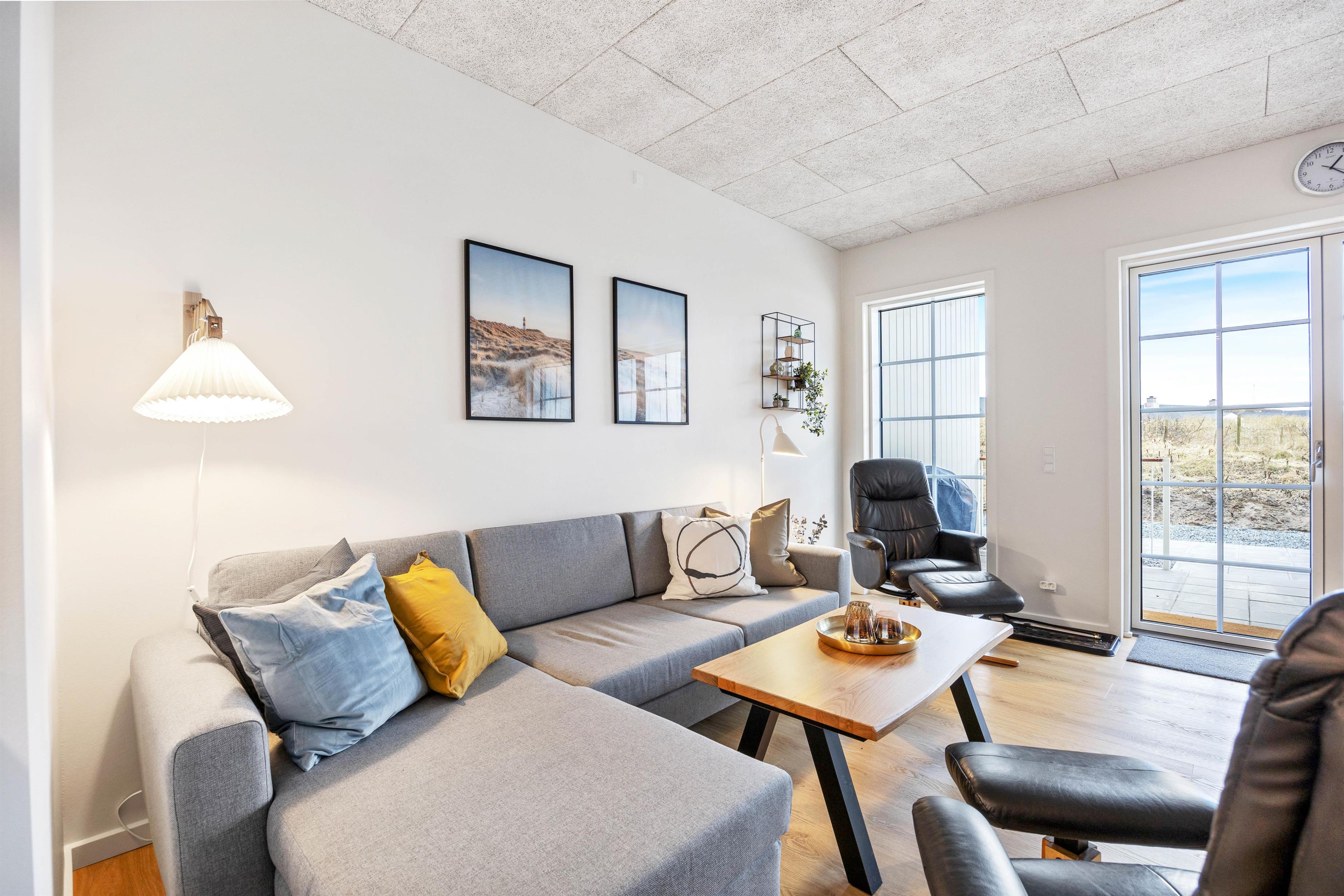 Når I træder ind i ferielejligheden, bliver I mødt af en lys og moderne ferielejlighed, hvor I vil føle jer hjemme fra første øjeblik. Ferielejligheden er bygget i 2024, og med 97 m2 fordelt på 2 etager. Der er god plads til en ferie med 4 personer. Ferielejlighedens naturlige mødested er det store opholdsrum, som kombinerer stue og køkken-alrum. Her kan I lave mad sammen, spille spil eller planlægge de næste aktiviteter i jeres ferie. En energibesparende luft-til-luft-varmepumpe sørger for, at ferielejligheden altid er behagelig varm. Stuen, gæstetoilettet og badeværelset er også udstyret med gulvvarme, så I ikke får kolde fødder.