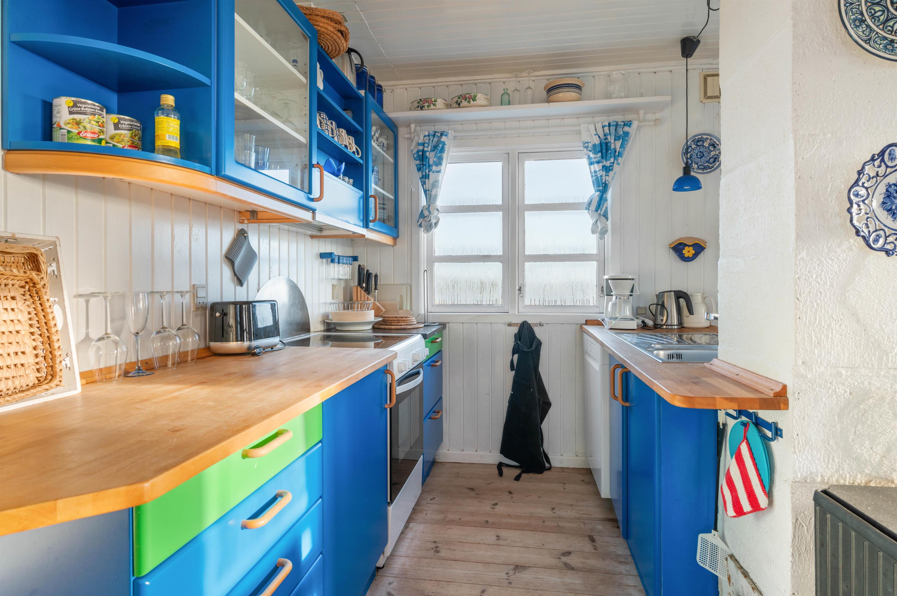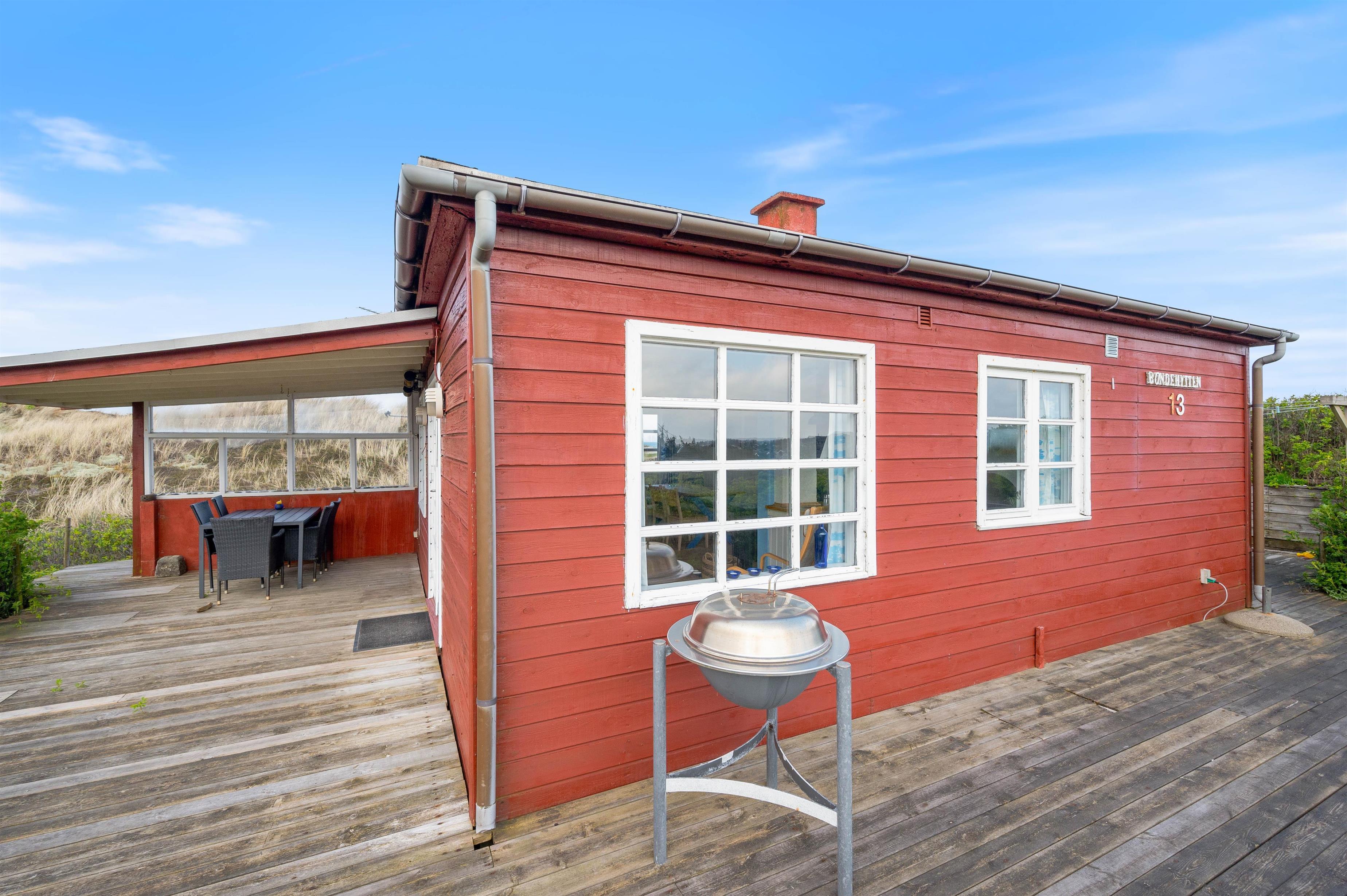 Besøger du sommerhuset i ydersæsonen, vil den dejlige brændeovn sprede varme og hygge i stuen. Efter en frisk gåtur ved det brusende Vesterhav, er det oplagt at slappe af på soafen med en god bog og en kop varm kaffe. Om sommeren kan I nyde sommersolen og god mad på terrassen, der er tilberedt på feriehusets grill imens børnene leger.