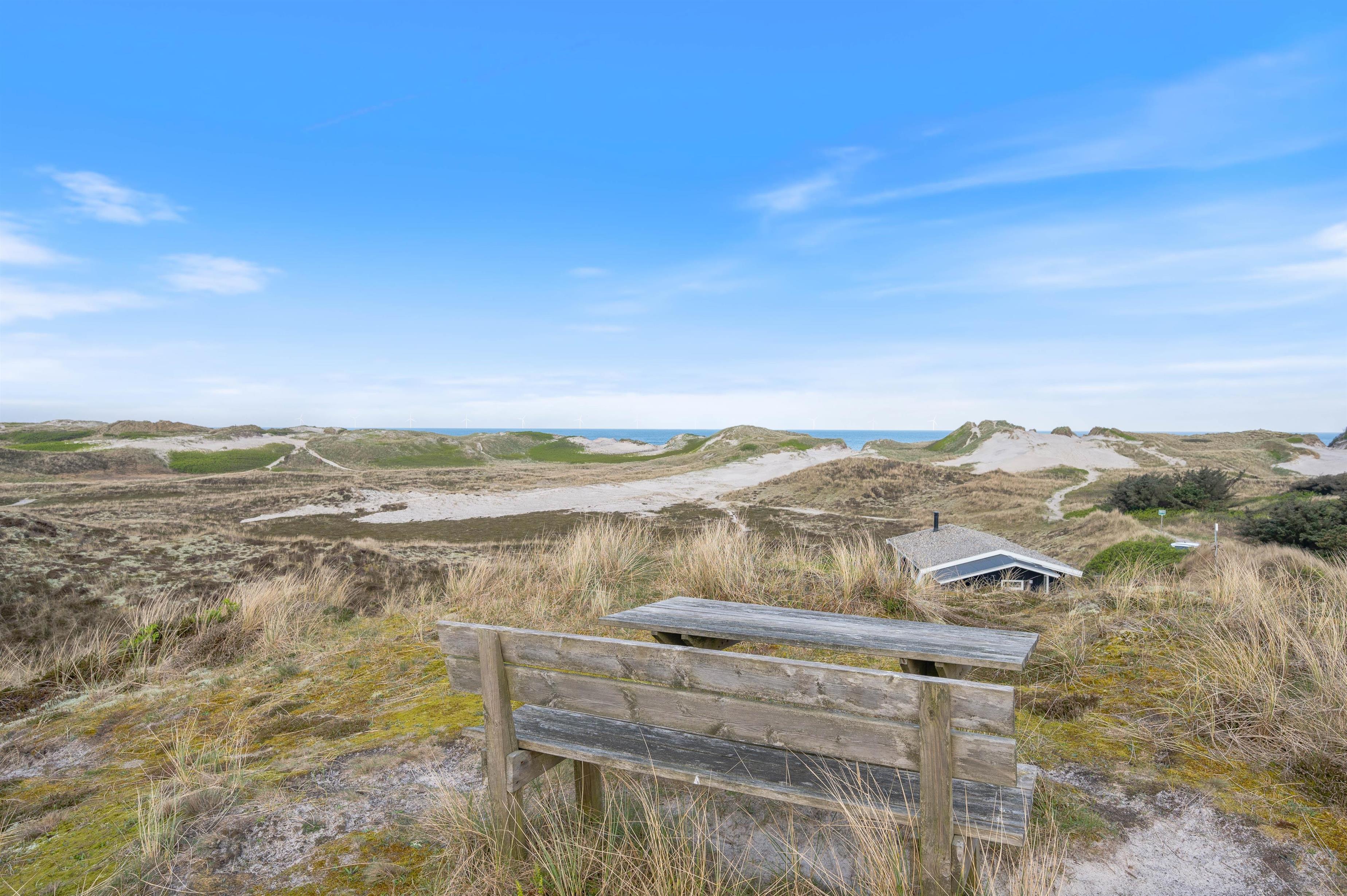 Feriehusets klare highlight er havudsigten. Både fra det ene soveværelse mod vest og fra terrassen kan I nyde Vesterhavet i baggrunden. Sov med vinduet åbent og nyd bøgernes brusen i baggrunden.