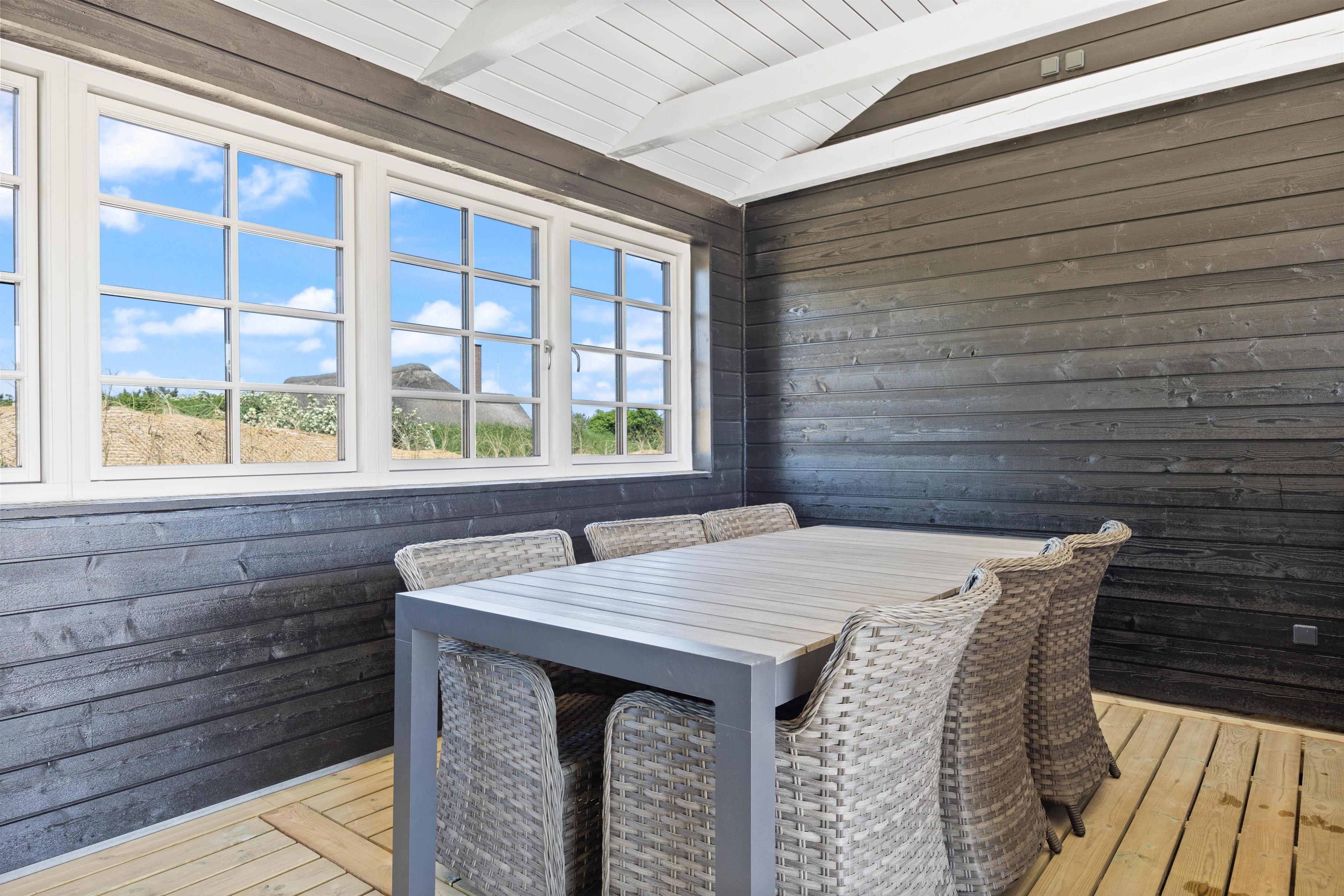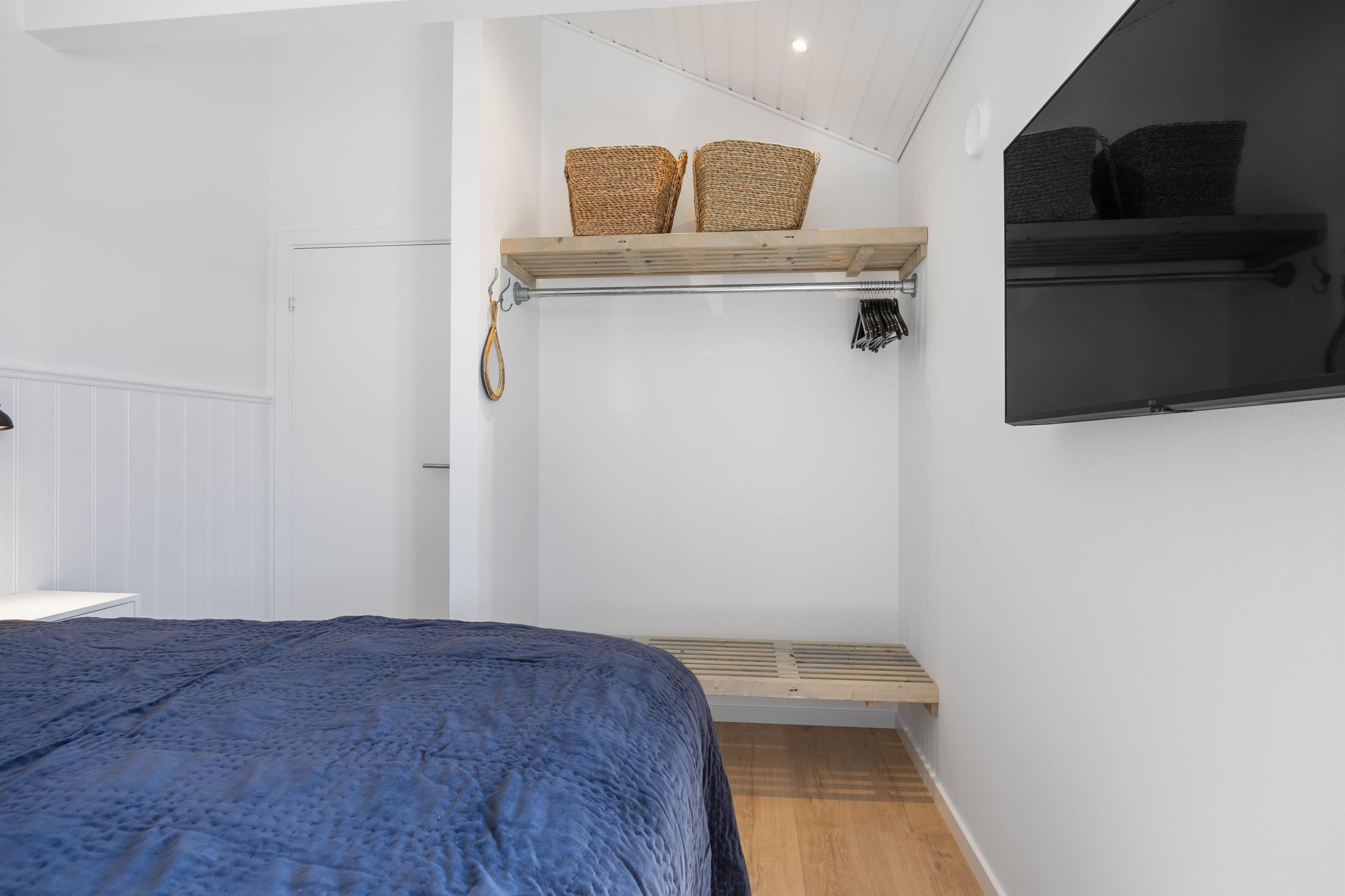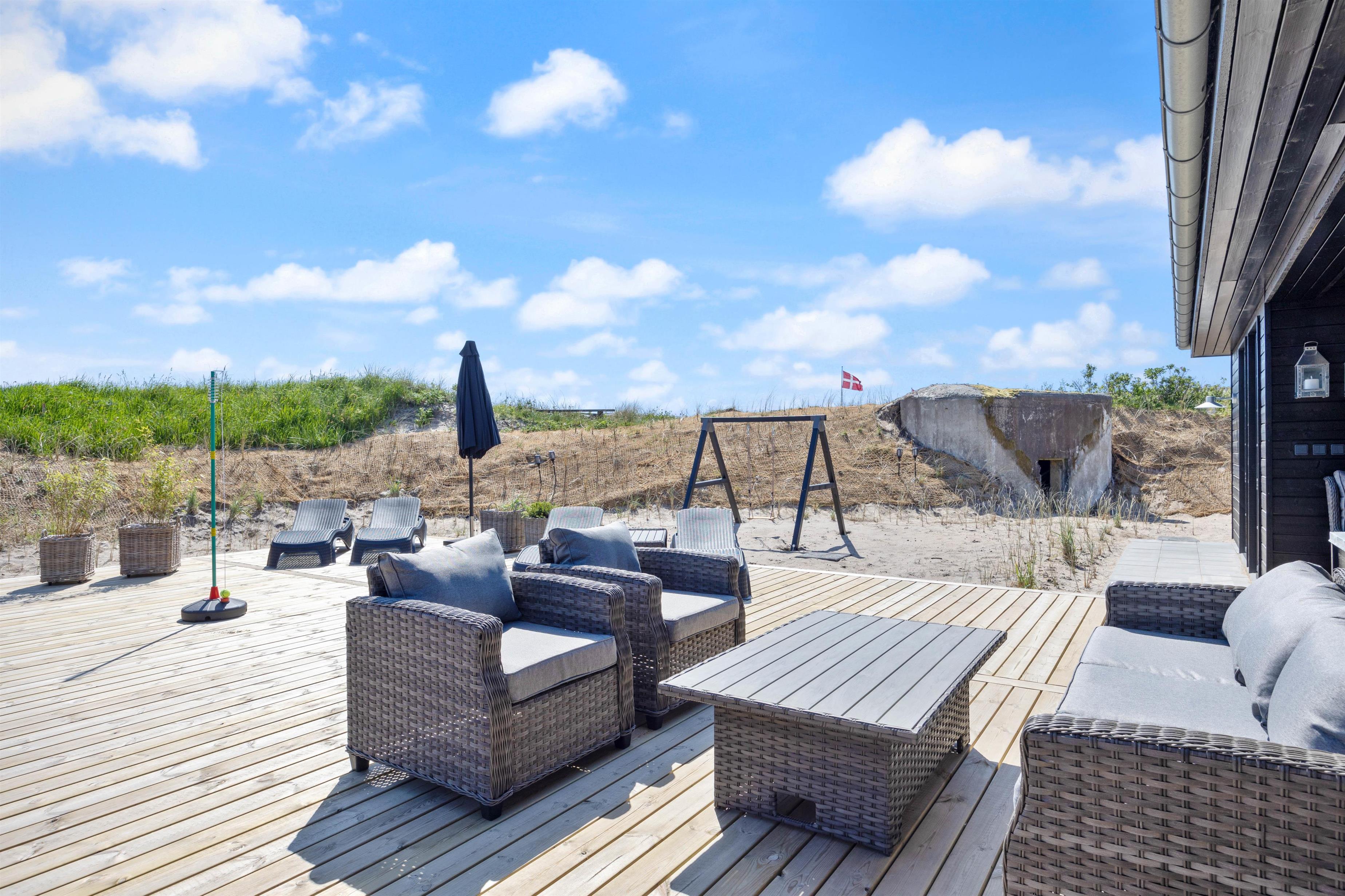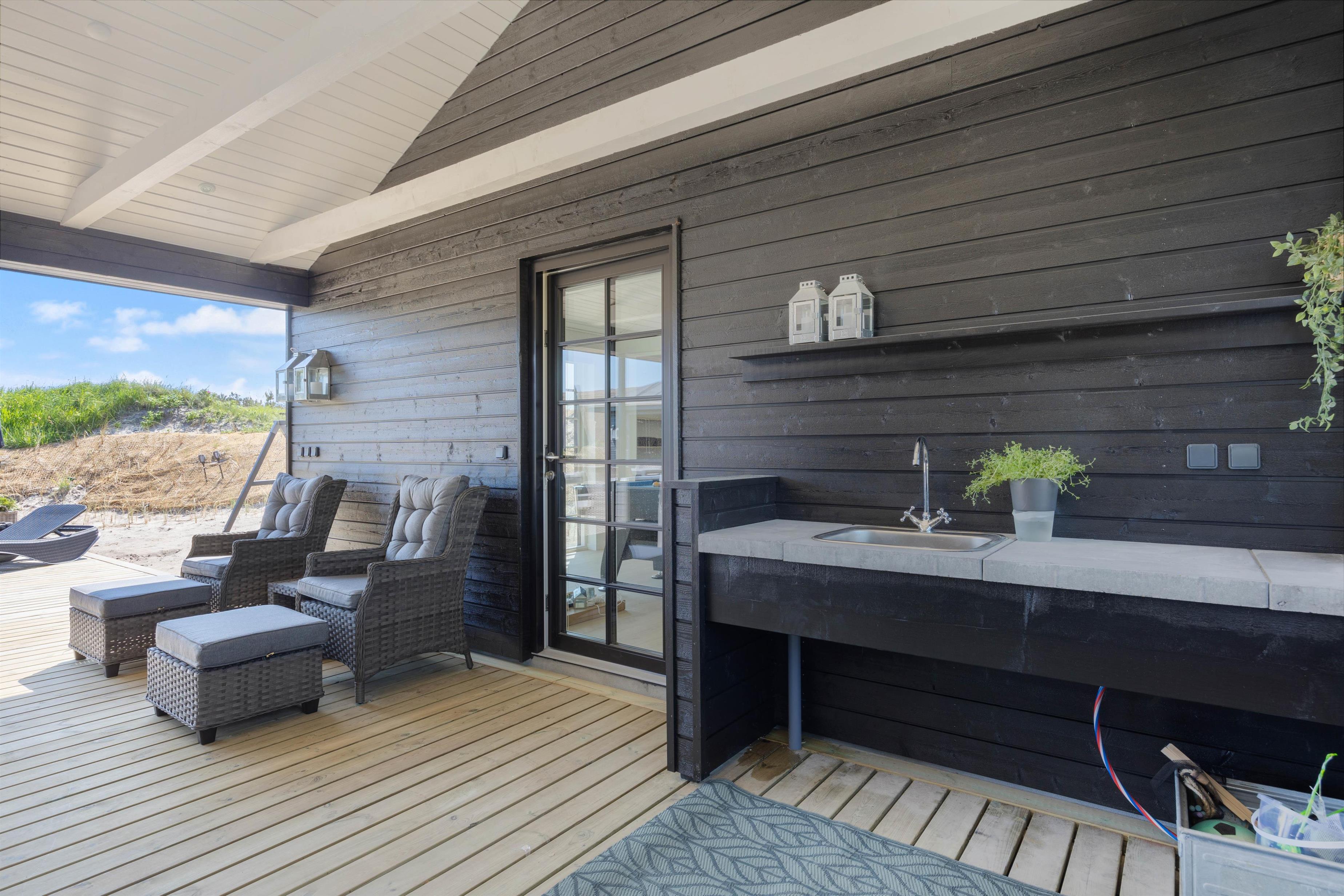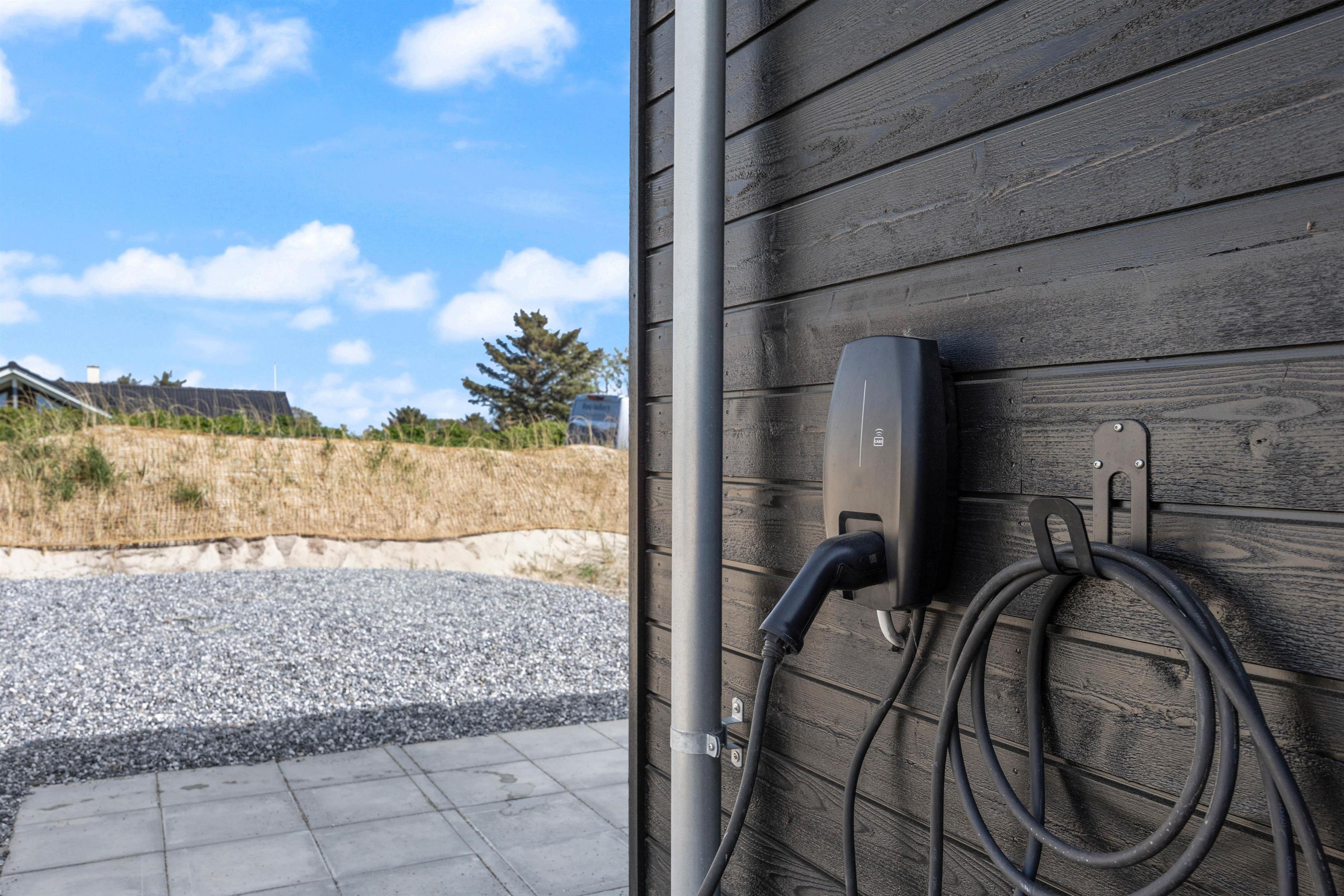 Et af feriehusets højdepunkter er afstanden til det brusende Vesterhav på kun 500 meter, og hvis det bliver for varmt, kan I køle af under den tilhørende udendørs bruser. Hvis I ankommer med elbil, er der en ladestander ved feriehuset.