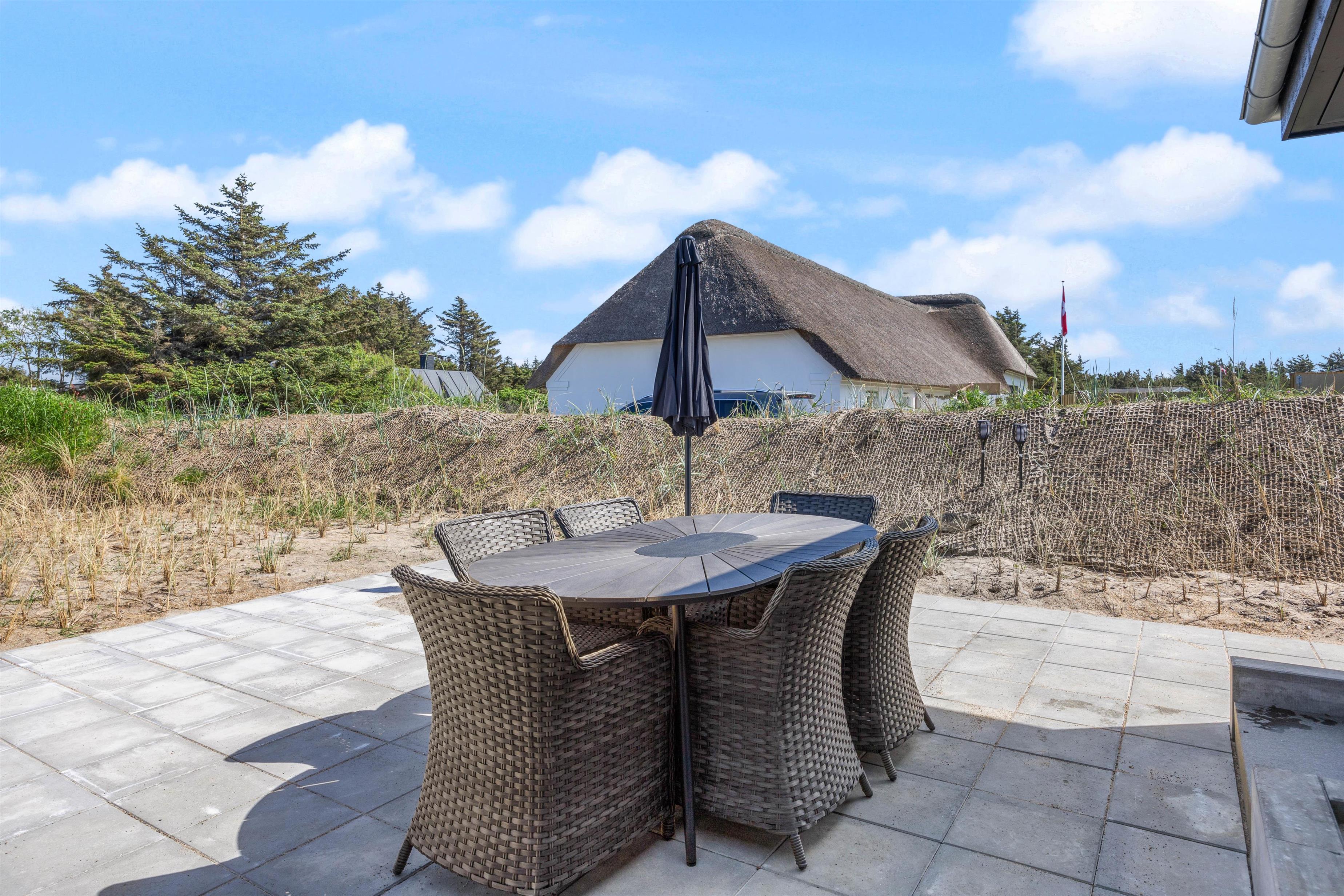 Feriehuset ligger kun 500 meter fra de kilometerlange sandstrande og det brusende Vesterhav, så lange gåture på stranden er næsten et must.