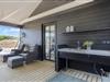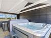Stor terrasse med sauna, udespa, udebruser og gynge.