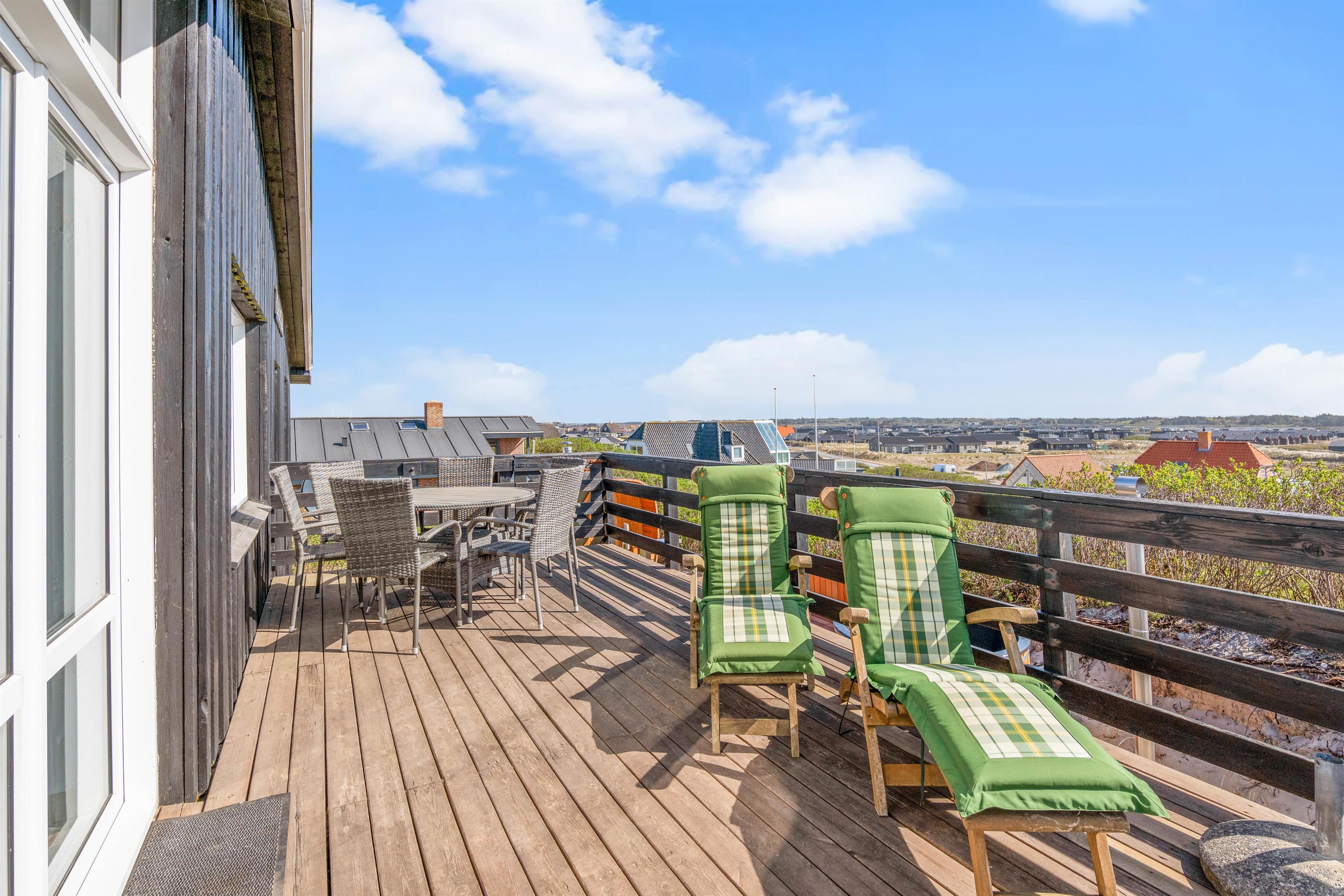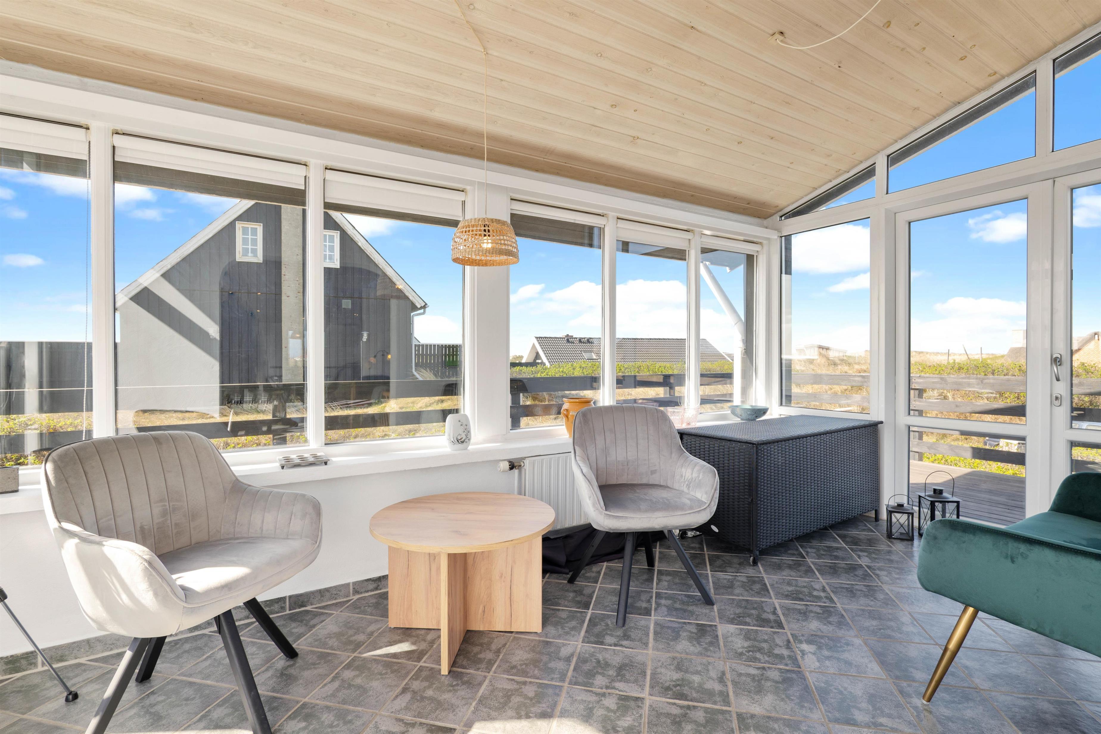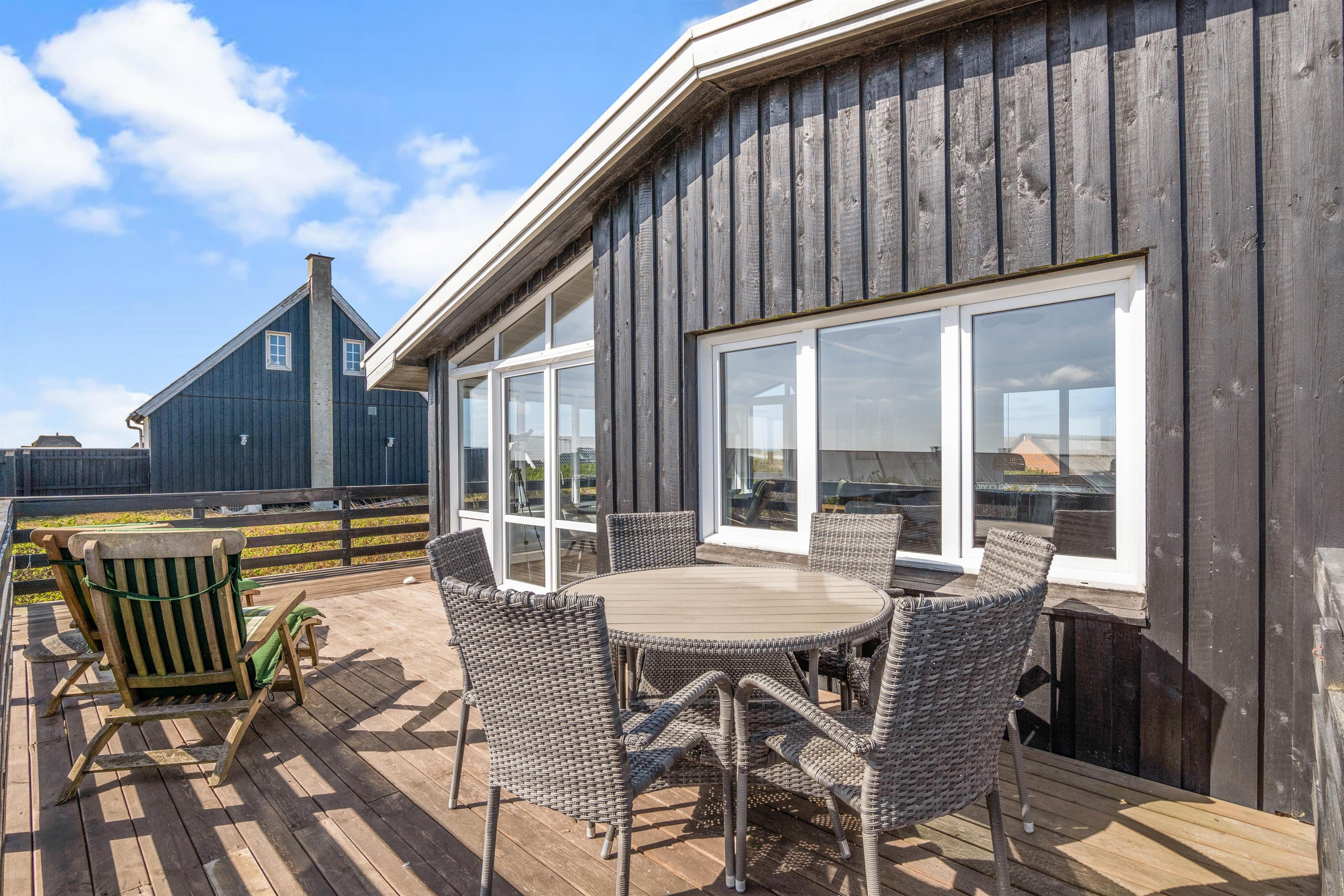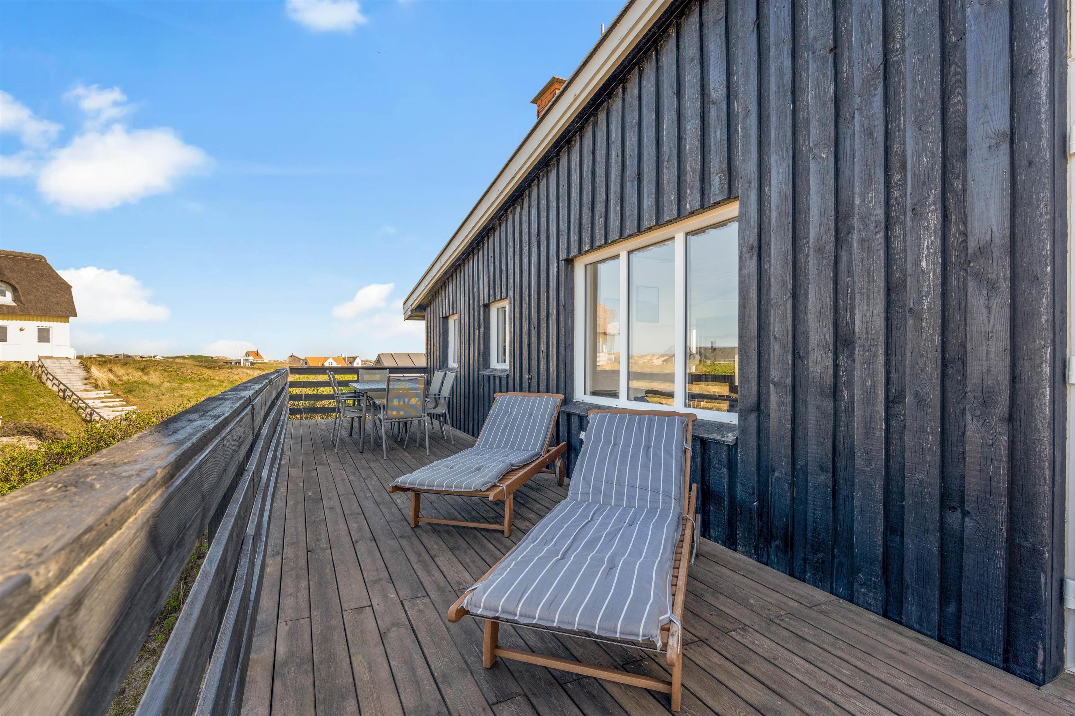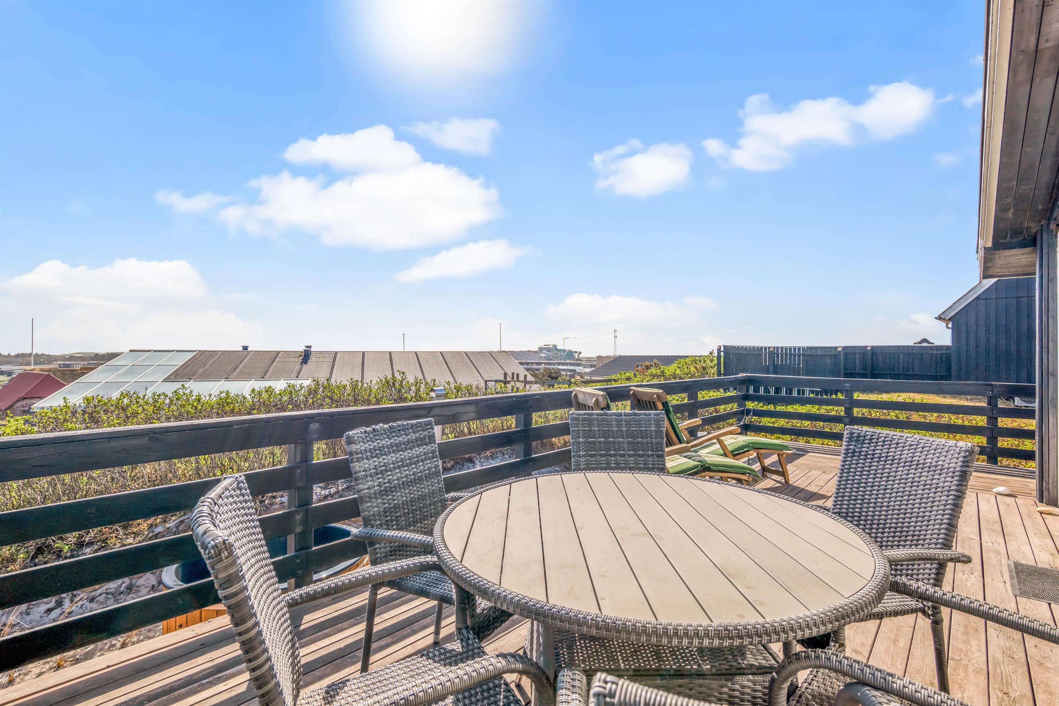 Dertil kommer naturligvis gode havemøbler, liggestole og en praktisk grill, hvorpå I hurtigt kan tilberede dagens feriemiddag. En sidste lille bonus er udebruseren, hvor I kan skylle fødderne rene for sand efter en tur på stranden. Udebruseren kan benyttes fra april til november.