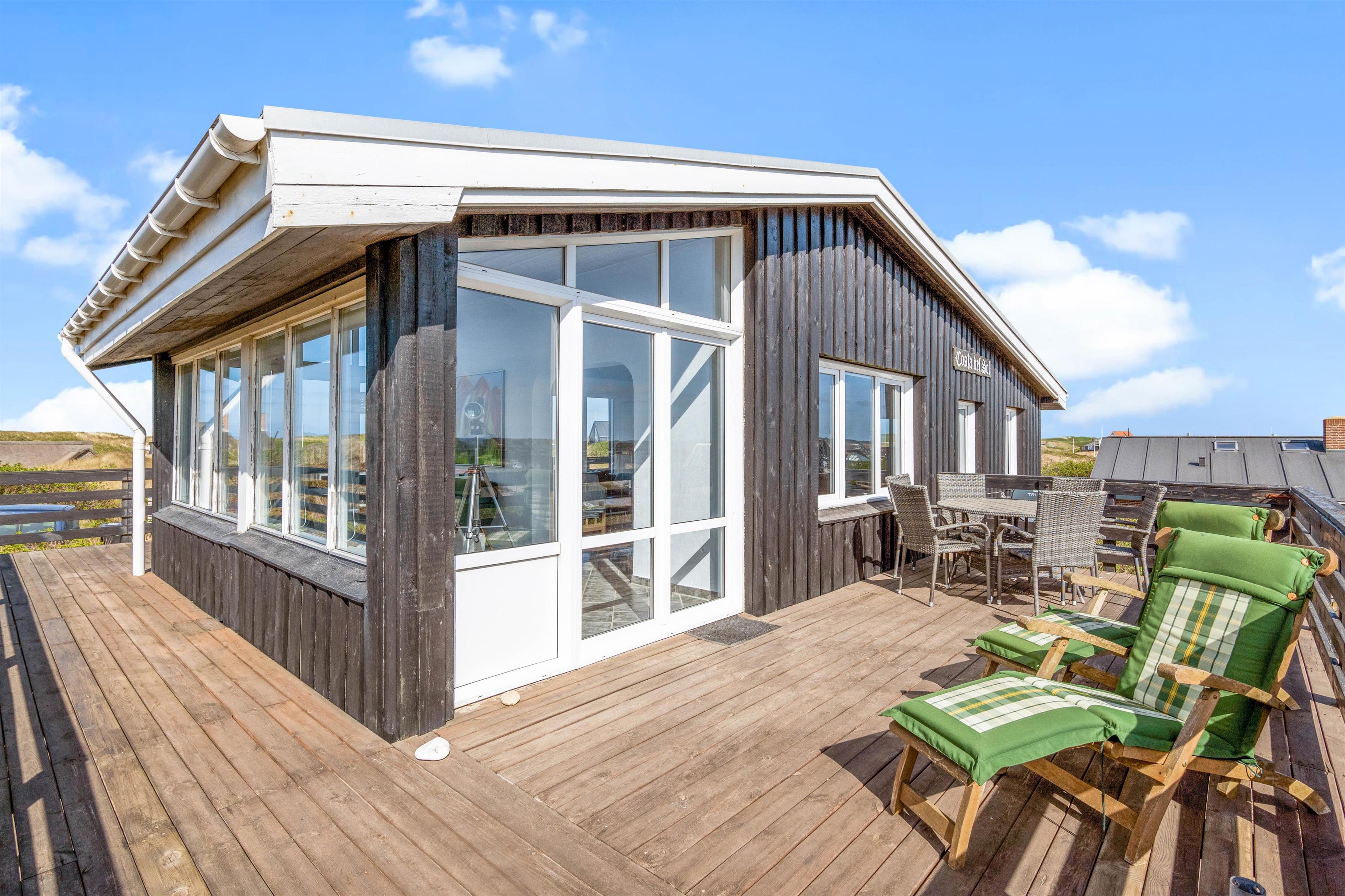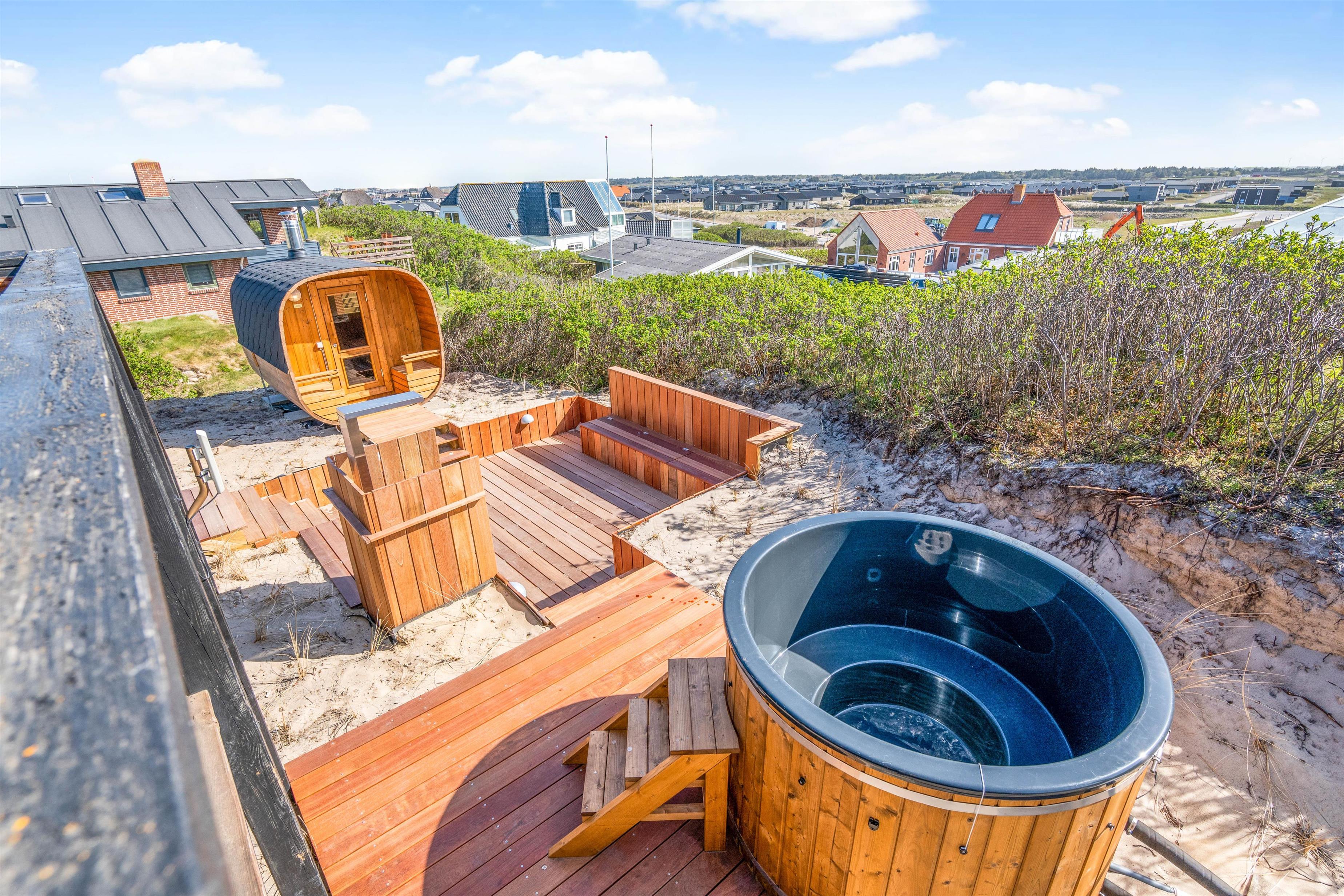 Kun et stenkast – mere præcist 175 meter – fra Søndervigs hvide sandstrand ligger dette skønne sommerhus og venter på jer. Her får I et feriehus fordelt på to plan med plads til 5 personer, og ikke mindst den lækreste terrasse med vildmarksbad, saunatønde og udendørsbruser. Hele herligheden ligger kun en lille gåtur fra Søndervigs bymidte. Der er derudover installeret en ladeboks ved feriehuset, hvis I ankommer med el-bil, så I uden problemer har mulighed for at få ladet bilen op. I skal blot huske at medbringe jeres eget ladekabel.