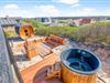 Terrasse med egen wellnessoase – vildmarksbad, saunatønde og udebruser