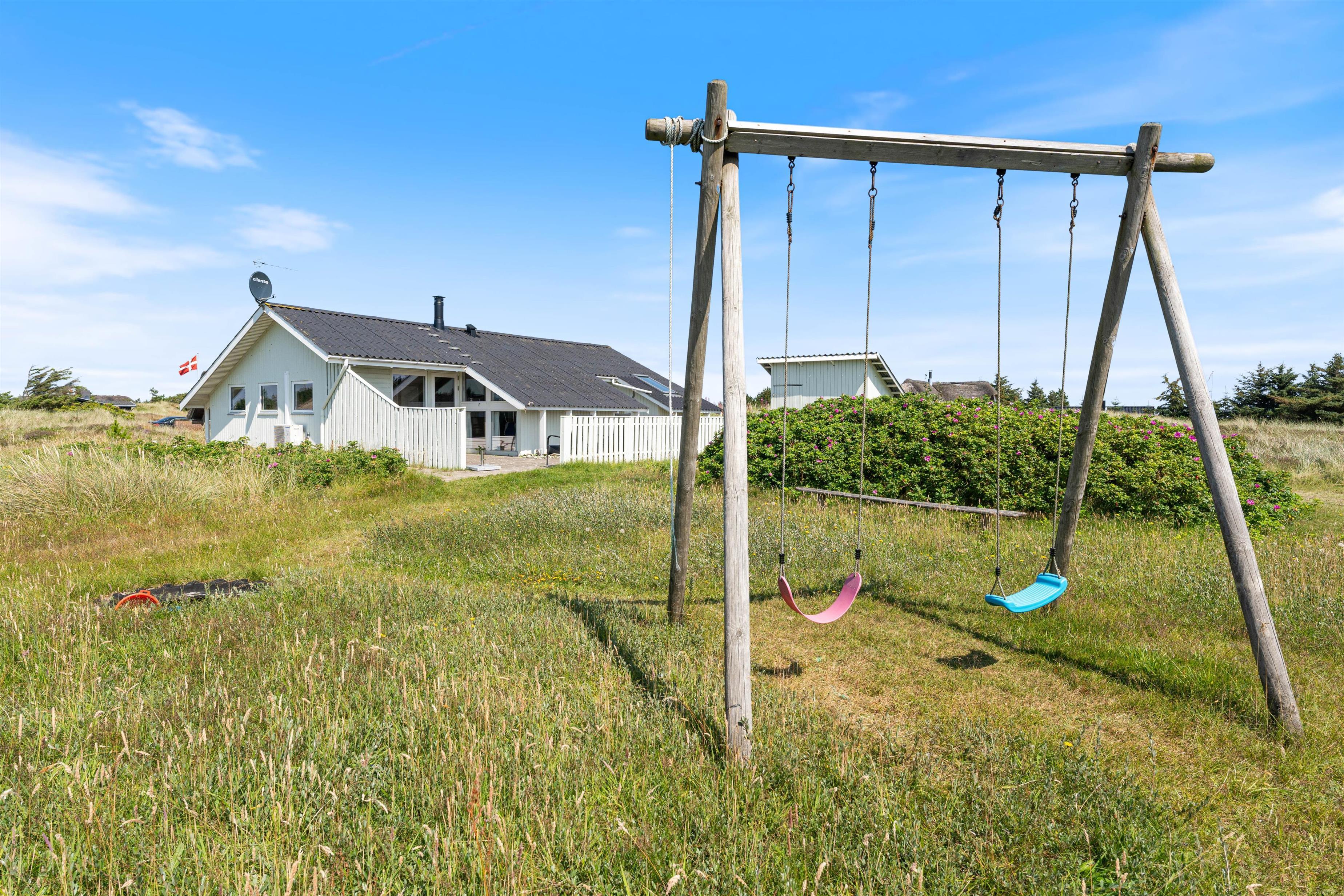 Feriehuset på Jakob Bondes Vej 16 i Søndervig ligger på en naturgrund på ca. 2000 m2, som giver dine børn masser af plads til at lege og udforske. Feriehusets terrasse er åben og afskærmet, så alle kan finde deres yndlingsplads. Mens I sætter jer til rette på terrassen, kan jeres børn boltre sig på grundens gynger, og om aftenen kan I runde dagen af med en hyggelig og lækker grillaften.