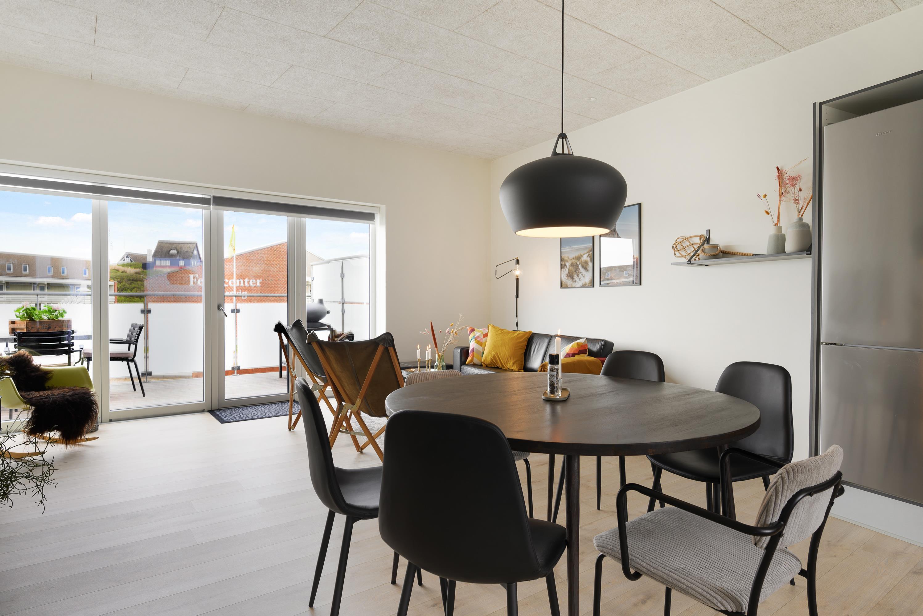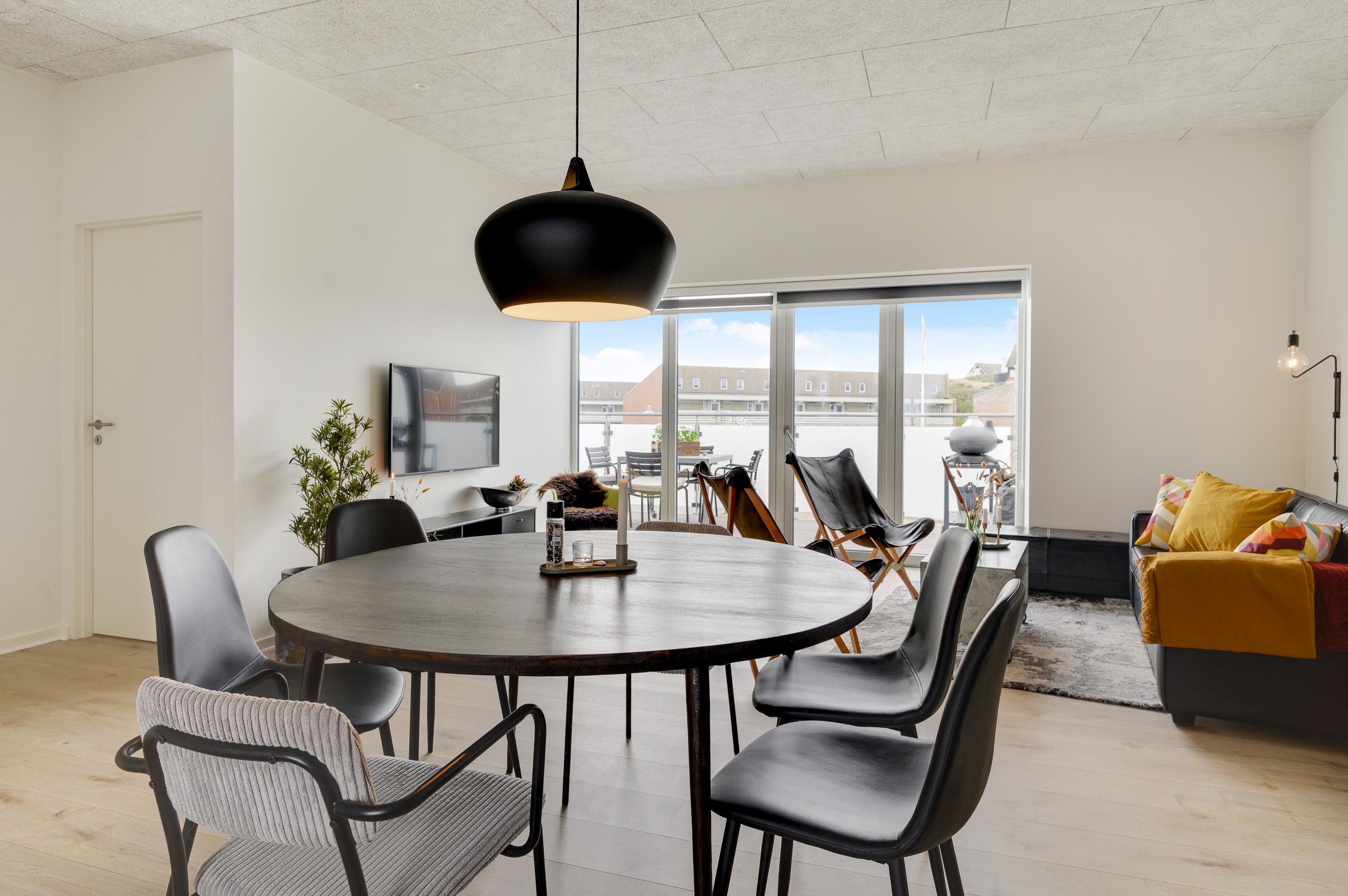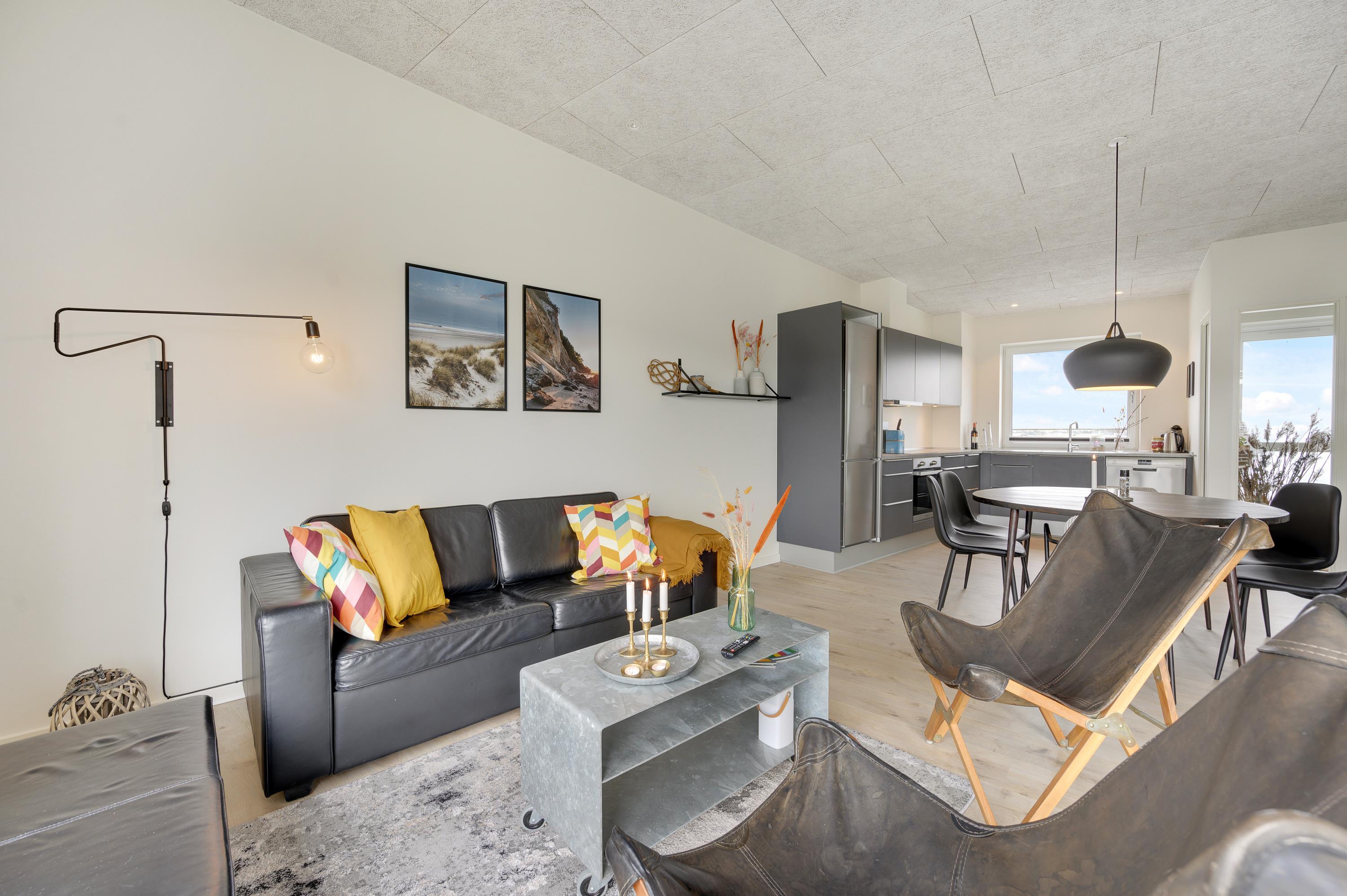 Feriematriklen er opført i 2020 med gulvvarme over det hele og er beliggende på første sal i det nye ferieboligkompleks. Det stilfulde interiør skaber en luksuriøs atmosfære og en god rød tråd i alle rum. Ferielejligheden indeholder 2 soverum og et badeværelse, som alle er udstyret med gulvvarme.