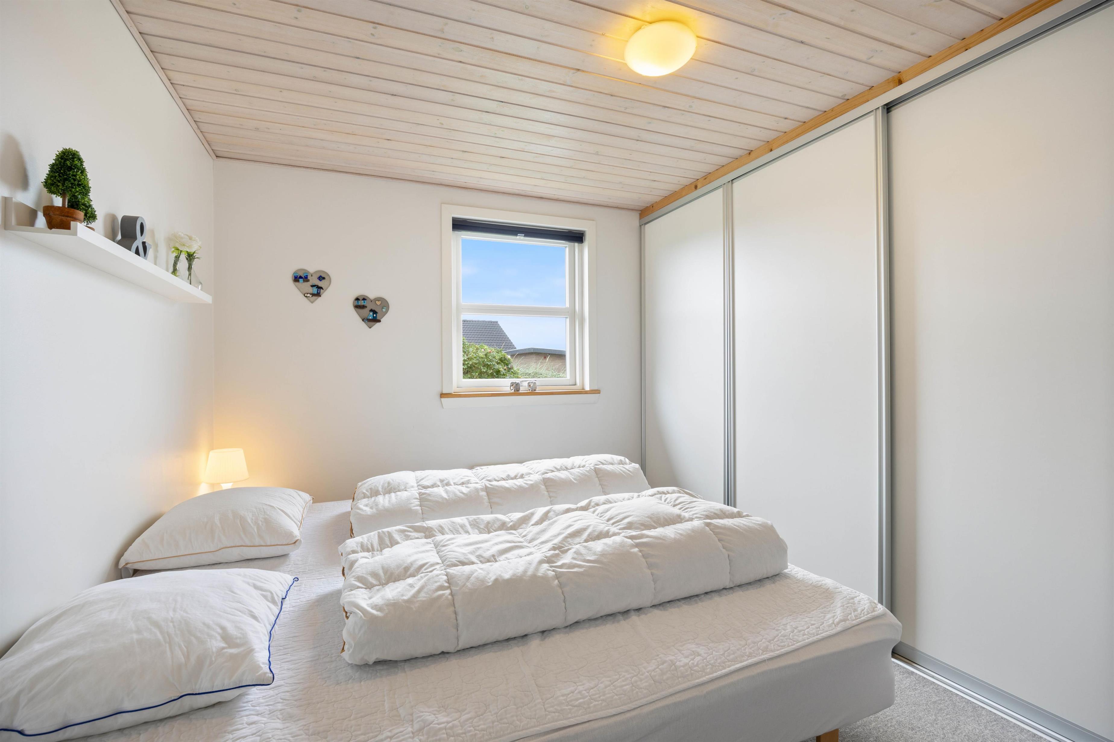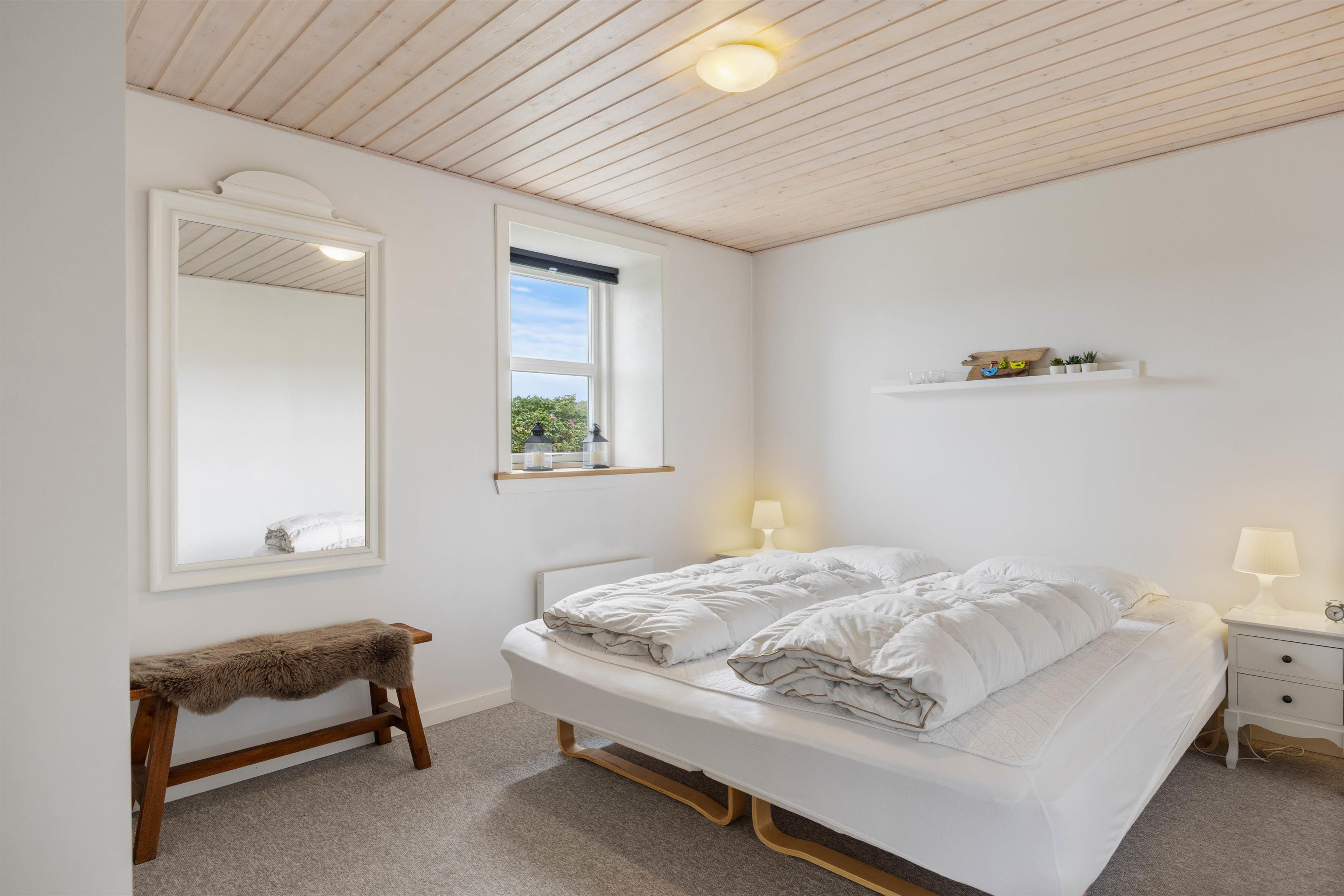 Feriehuset råder over 6 sovepladser fordelt på 3 soverum, der hver især er udstyret med en dobbeltseng. Her kan I efter en god lang dag igen lade batterierne op. Derudover er der et rigtigt flot og rummeligt badeværelse, hvorfra I har adgang til saunaen, som især på de køligere dage indbyder til afslapning, varme og velvære for krop og sjæl.
