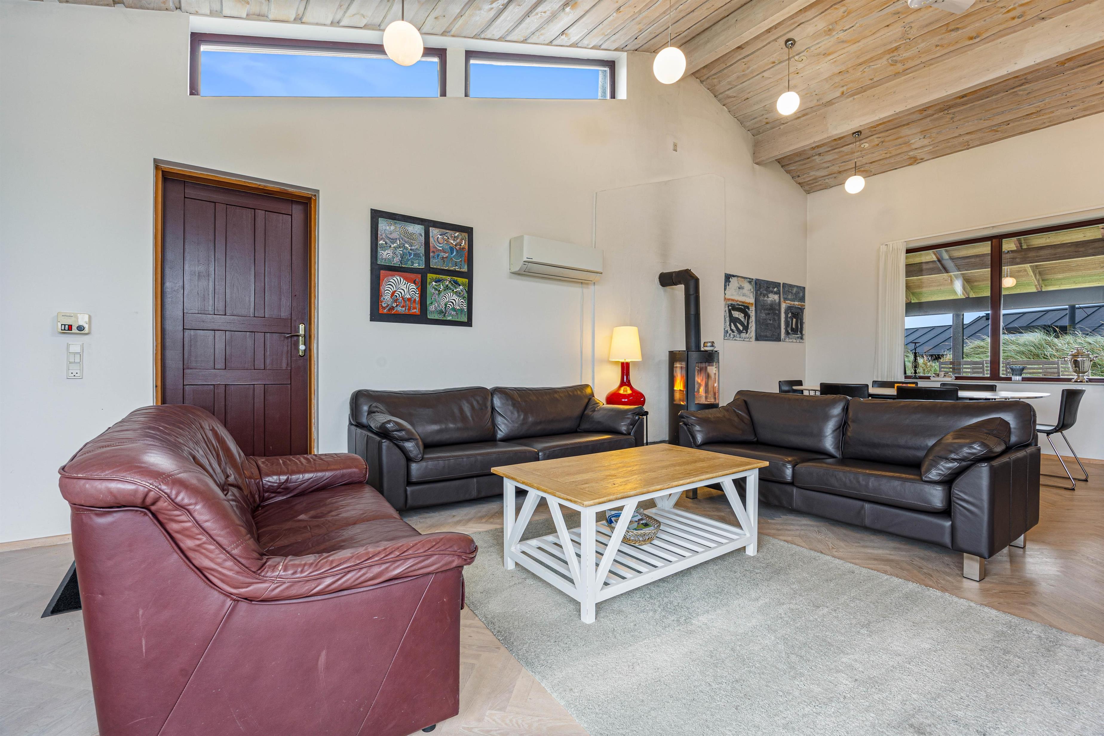 Et highlight er bestemt det flotte køkkenalrum med nedsænket stue og spiseafdeling. Her er højt til loftet og et fantastisk lysindfald fra de mange vinduer, og det moderne interiør skaber flotte farvekontraster. Der er sørget for flere små hyggelige siddekroge, hvor I kan læne jer tilbage med en god bog og nyde feriefreden med en god kop kaffe.