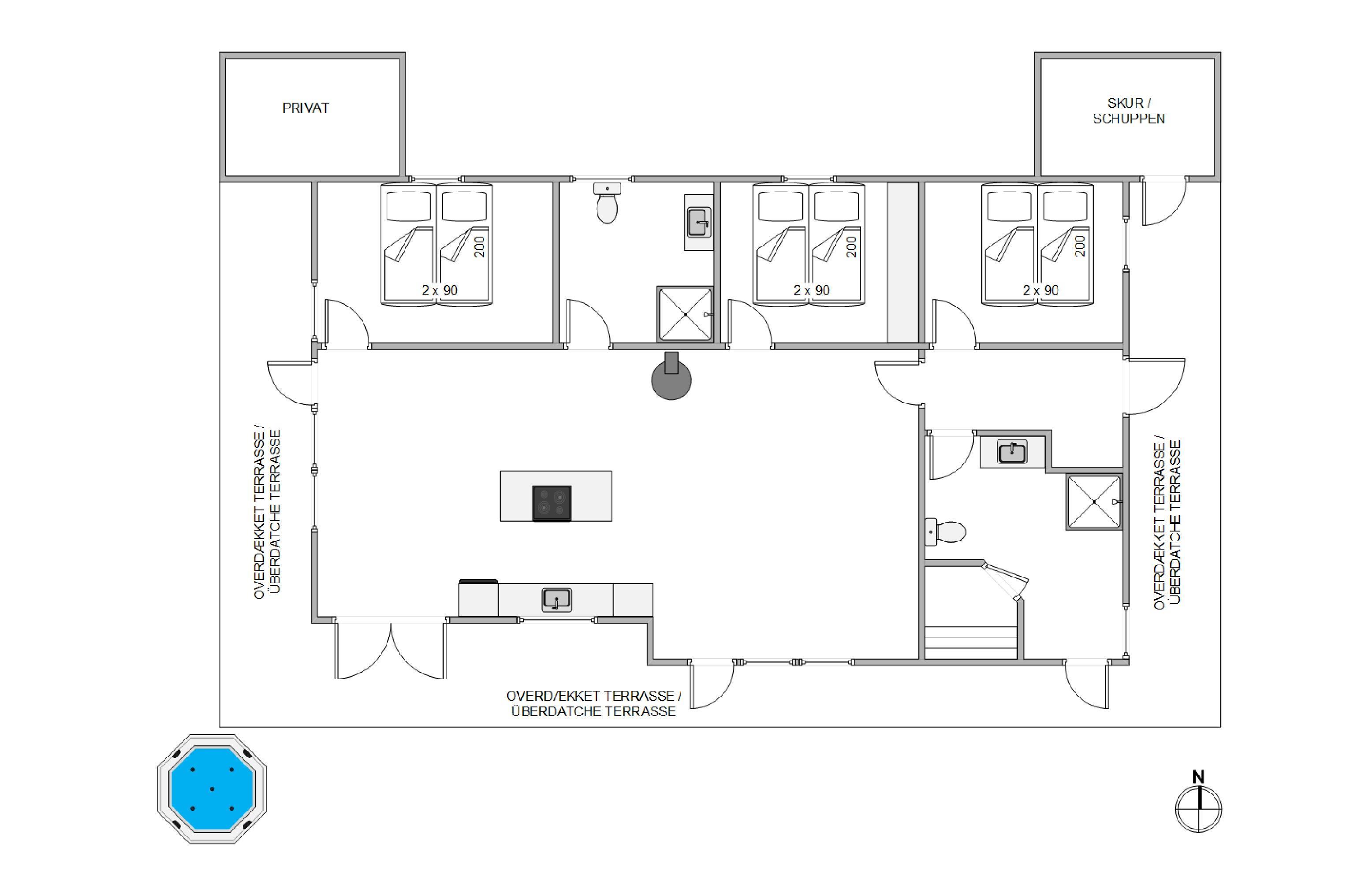 Lukket terrasse, sauna og udespa – wellness for hele familien