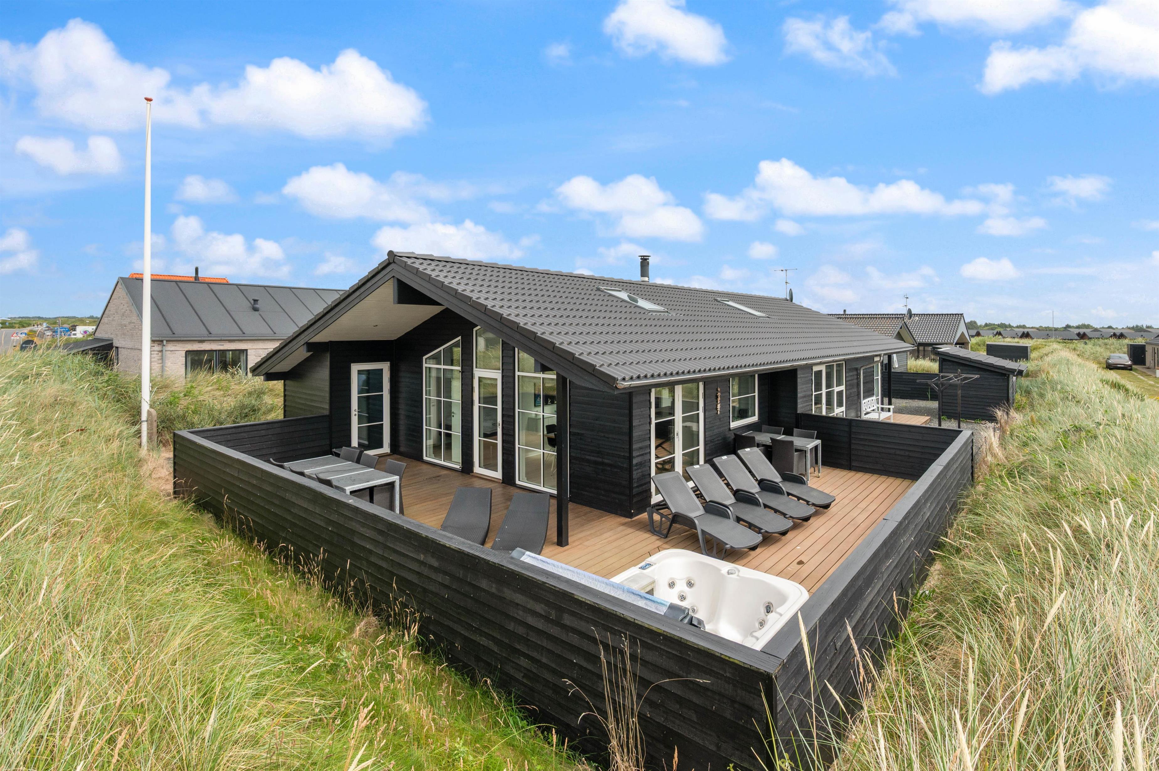 Feriehuset er omgivet af volde med marehalm, hvilket giver mulighed for privatliv samtidig med, at man har en fantastisk udsigt over klitterne. Med kort afstand til Vesterhavet, Søndervig mange hyggelige butikker og restauranter, Lalandia badelandet, Sandskulpturene og en 18 hullers golfbane, er man tæt på alt. Det er helt op til en selv, om man ønsker en aktiv eller afslappende ferie. Alle muligheder ligger lige uden for døren! Og man kan gå til det hele!