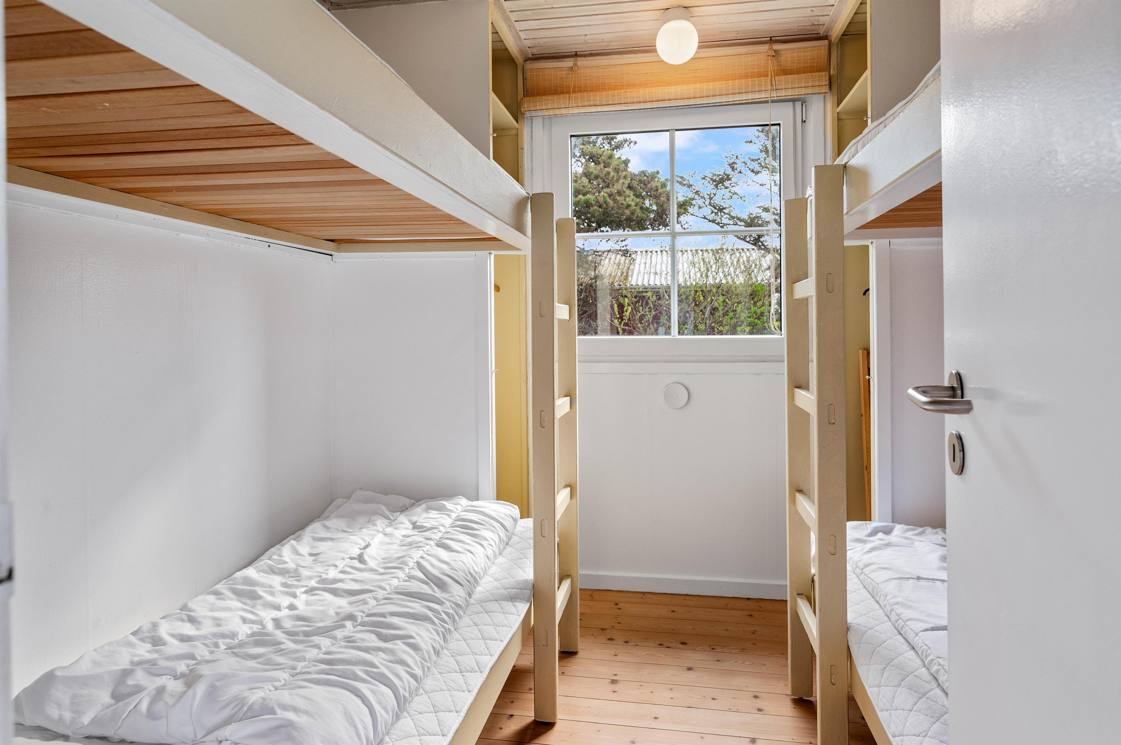 Fra køkkenet er der om aftenen adgang til feriehusets tre soveværelser, hvoraf de to er indrettet med hver en dobbeltseng, mens det sidste soveværelse har to enkeltsenge. Der er to badeværelser i feriehuset, så der ikke er trængsel foran badeværelset om morgenen. Begge badeværelser er udstyret med gulvvarme for at undgå kolde fødder om morgenen.