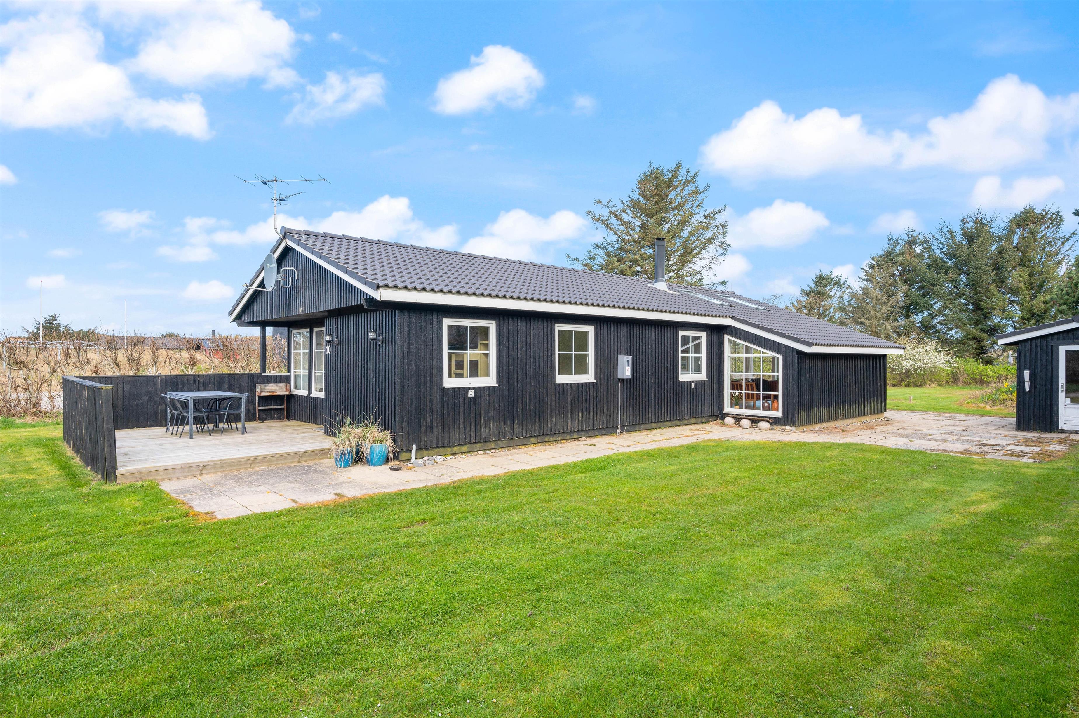 Feriehuset på Hvidbjergvej 10 i Søndervig ligger på en plænegrund på ca. 1339 m2, som giver jeres børn masser af plads til at lege og løbe rundt på. Mens jeres børn spiller fodbold på grunden, kan I sætte jer til rette med en kold drink i havemøblerne på den delvist afskærmede terrasse. Her kan I også runde en varm sommeraften af med en lækker grillaften.