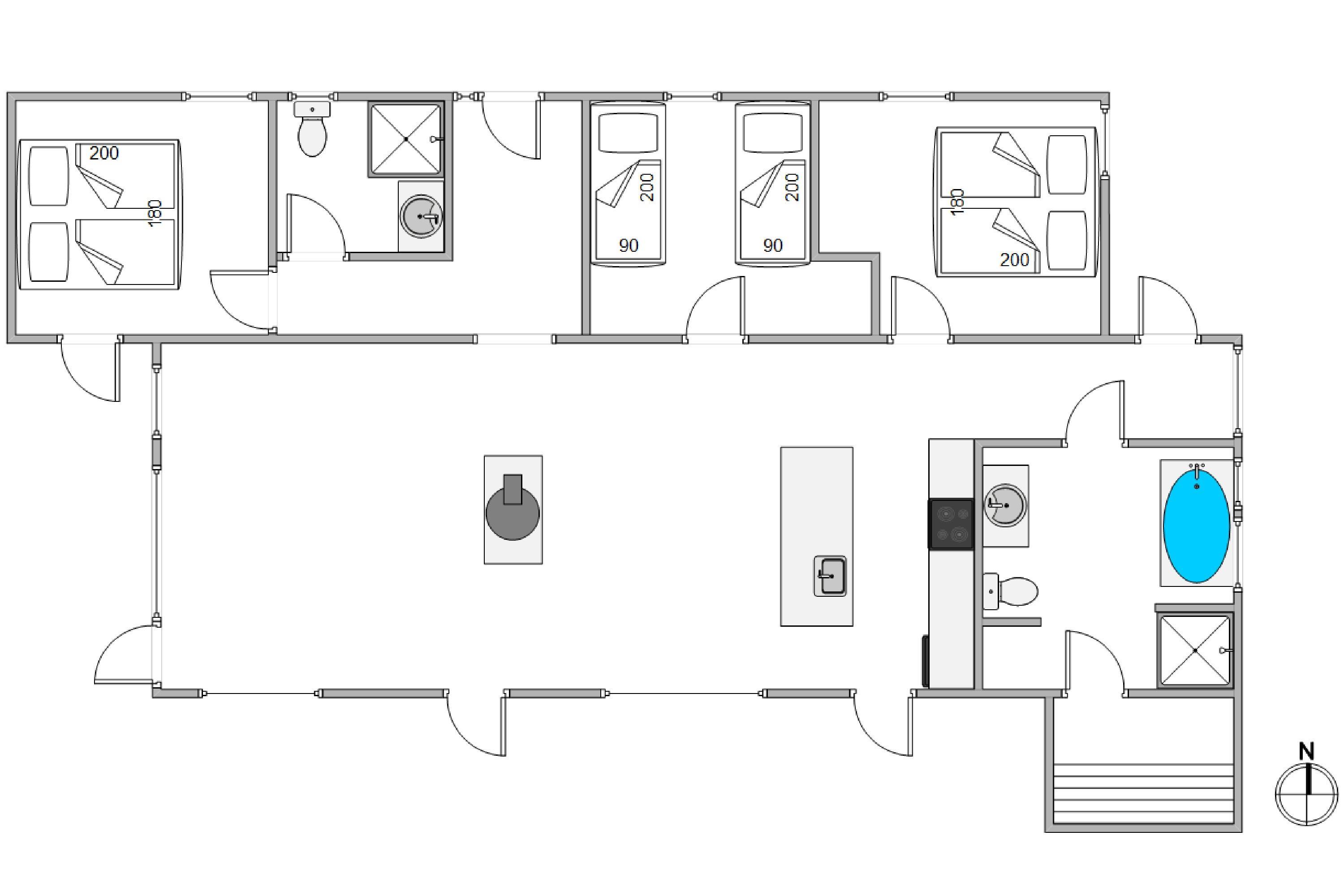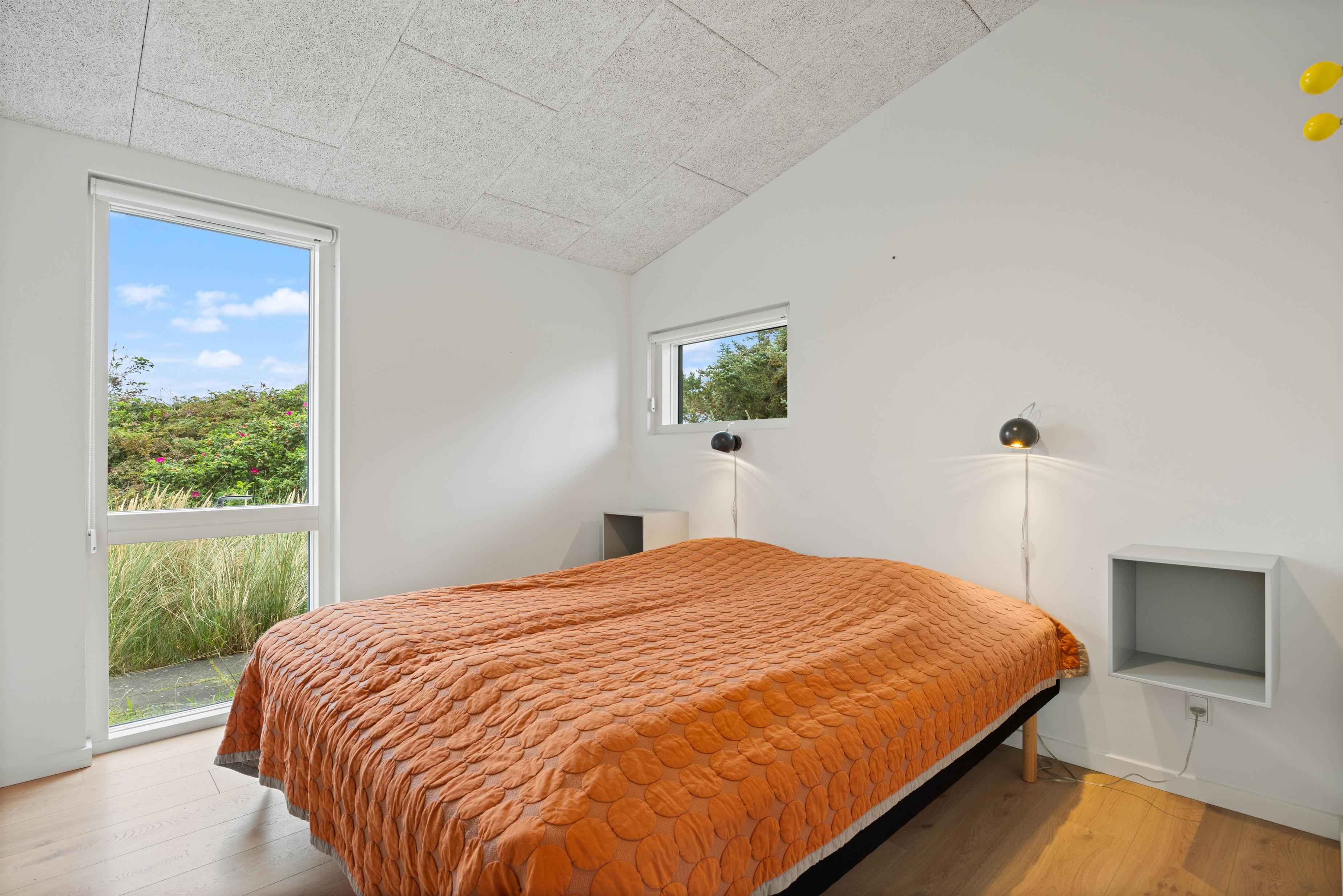 Her på Hjelmevej 159 er plads til seks personer i tre store og rummelige soveværelser. De to af værelserne er med dobbeltsenge og det sidste med to enkeltsenge. Hjerterummet i det moderne og stilfuldte sommerhus er helt sikkert det rummelige køkken-alrum. Her går loftet til kip hvilket giver en super god rummelig, samt de mange store vinduespartier sørger for et fantastisk lysindfald, der altsammen er med til at skabe en lys og rolig atmosfære, der er med give jer den helt rigtige feriestemning. I kan også tænde op i den hyggelige pejseindsats, og nyde flammernes knitren med en kop varm kakao eller kaffe.