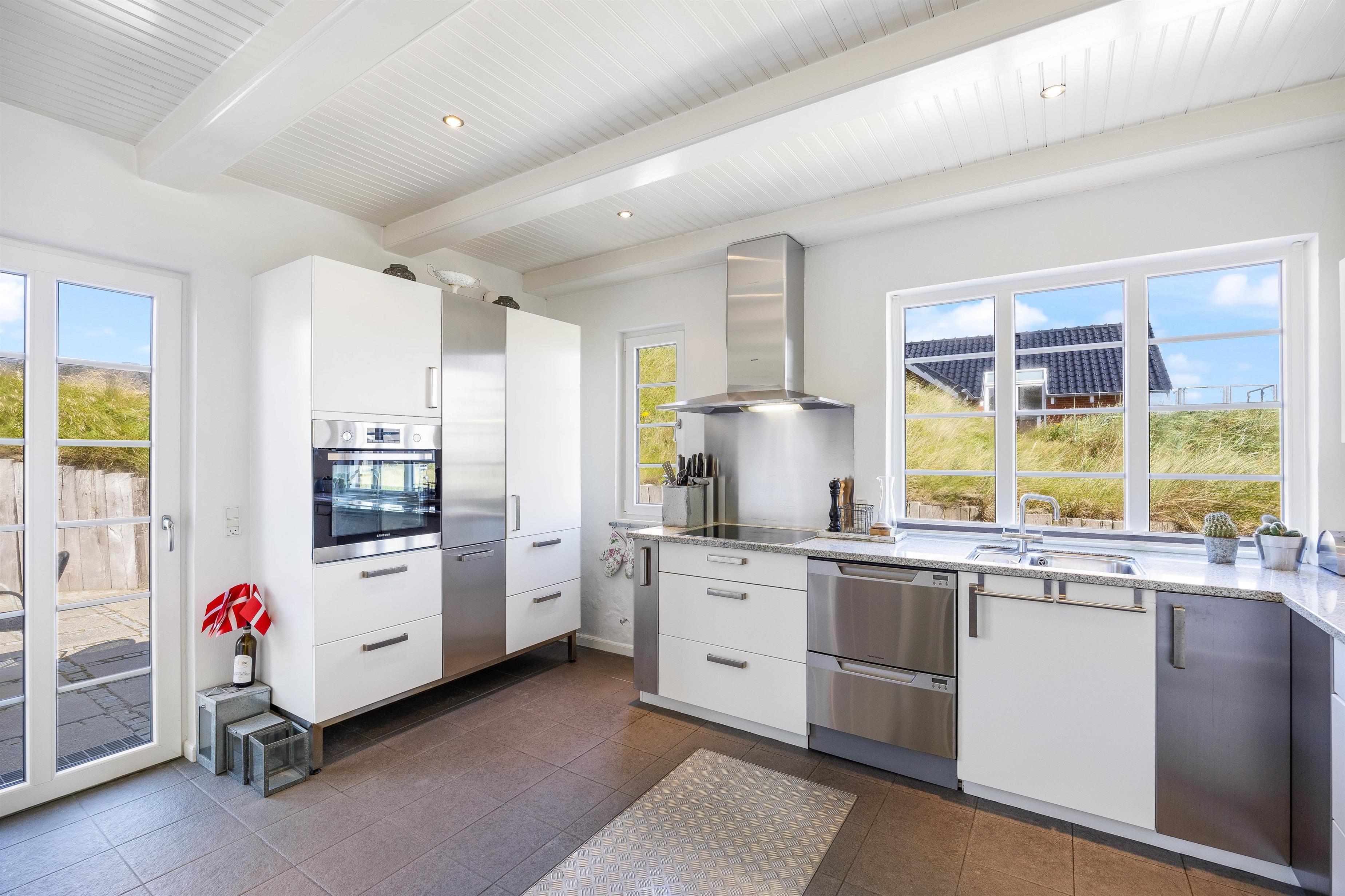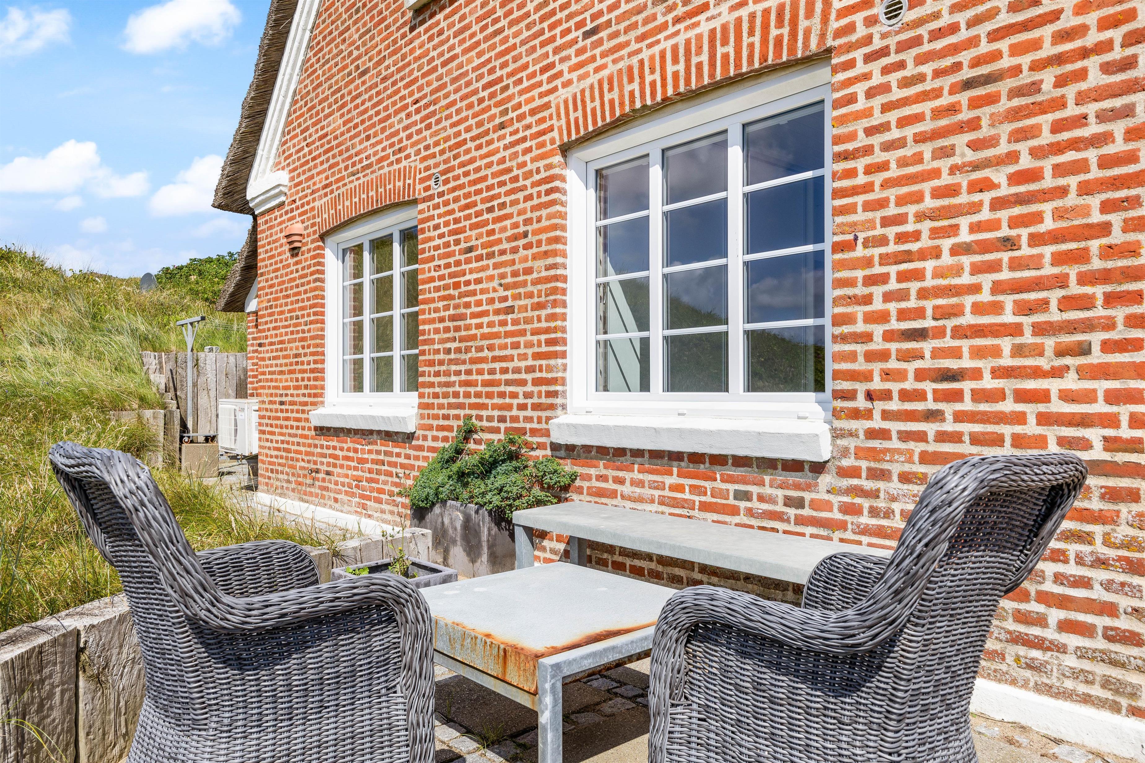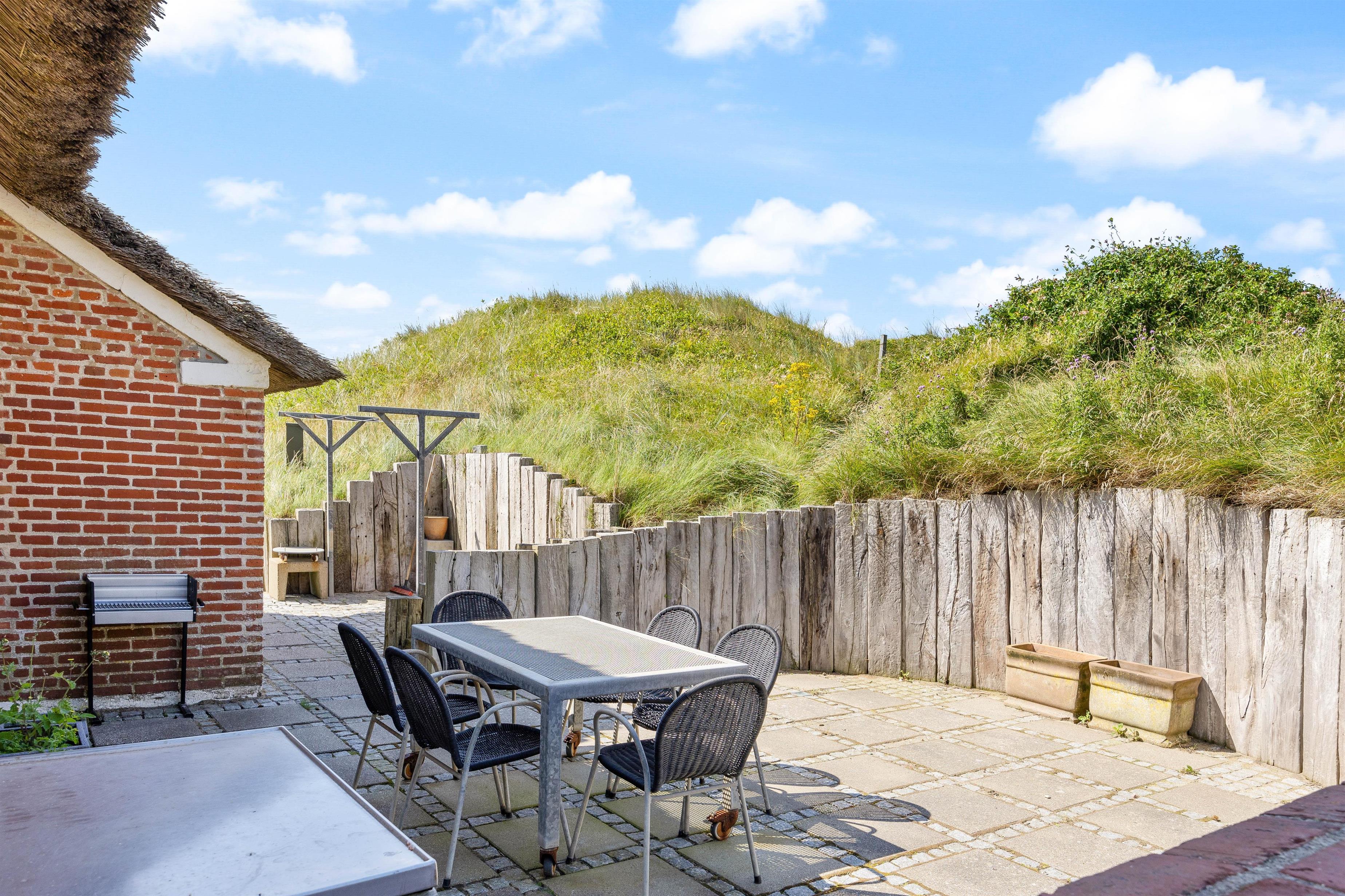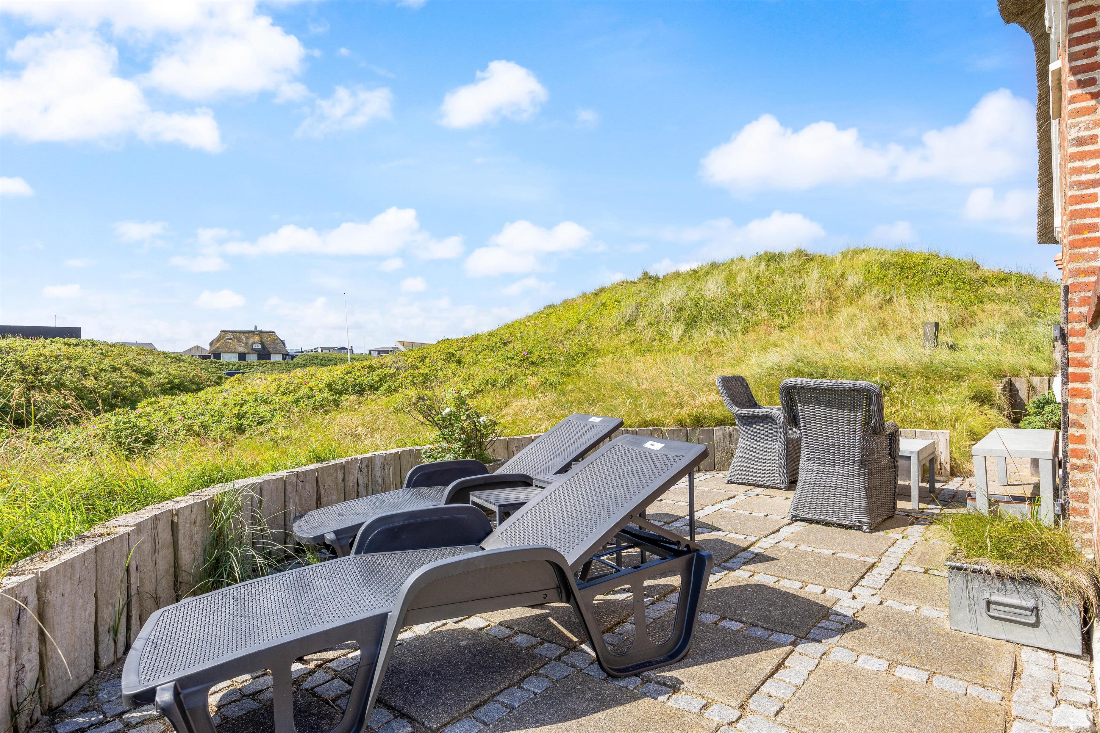 Med ferieadresse her, har I direkte udgang til en 1467 kvadratmeter stor klitgrund med flisebelagte, gode terrasser. På terrasserne kan I finde havemøbler, liggestol og en kulgril, så her har I masser af muligheder for at nyde solen og dens varme stråler. En af terrasserne er lettere afskærmet, så I kan sidde her i fred og ro, nyde hinandens selskab og føle, at I har ferie.