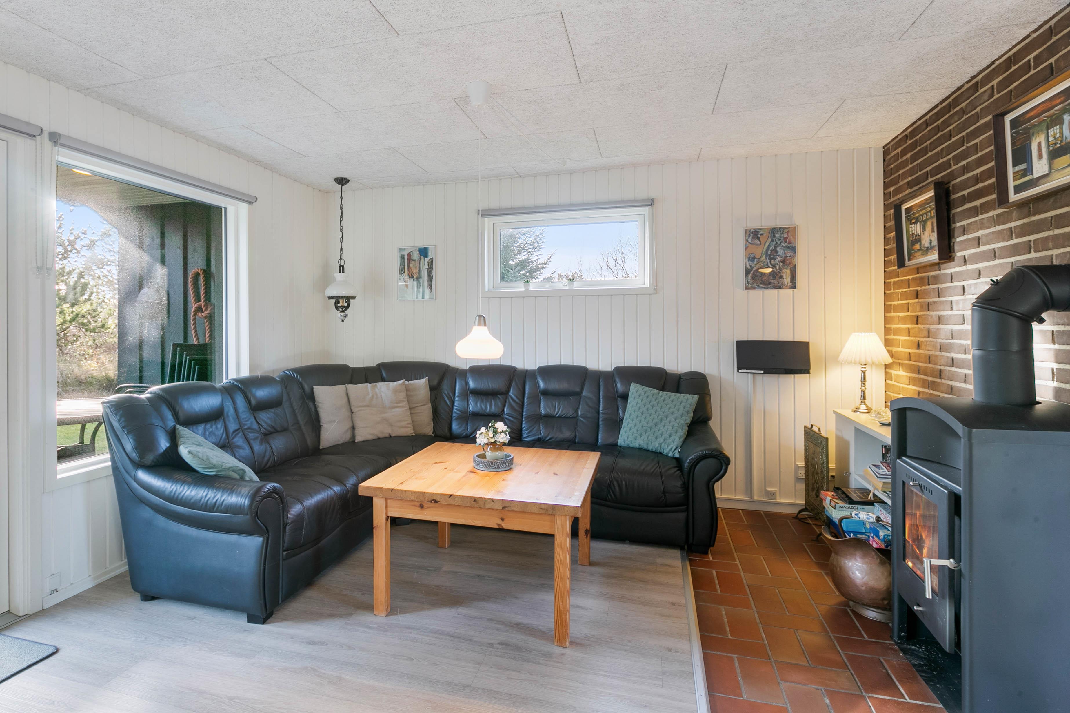 Dette velholdte og velindrettede feriehus, er både funktionelt og hyggeligt. Her er lyse vægge og lofter, en god energibesparende varmepumpe og en dejlig brændeovn til at sørge for varmen efter de lange ture ved Vesterhavet. Huset blev efterisoleret og sparer dermed lidt i forbrug og huset er nem at varme op.