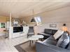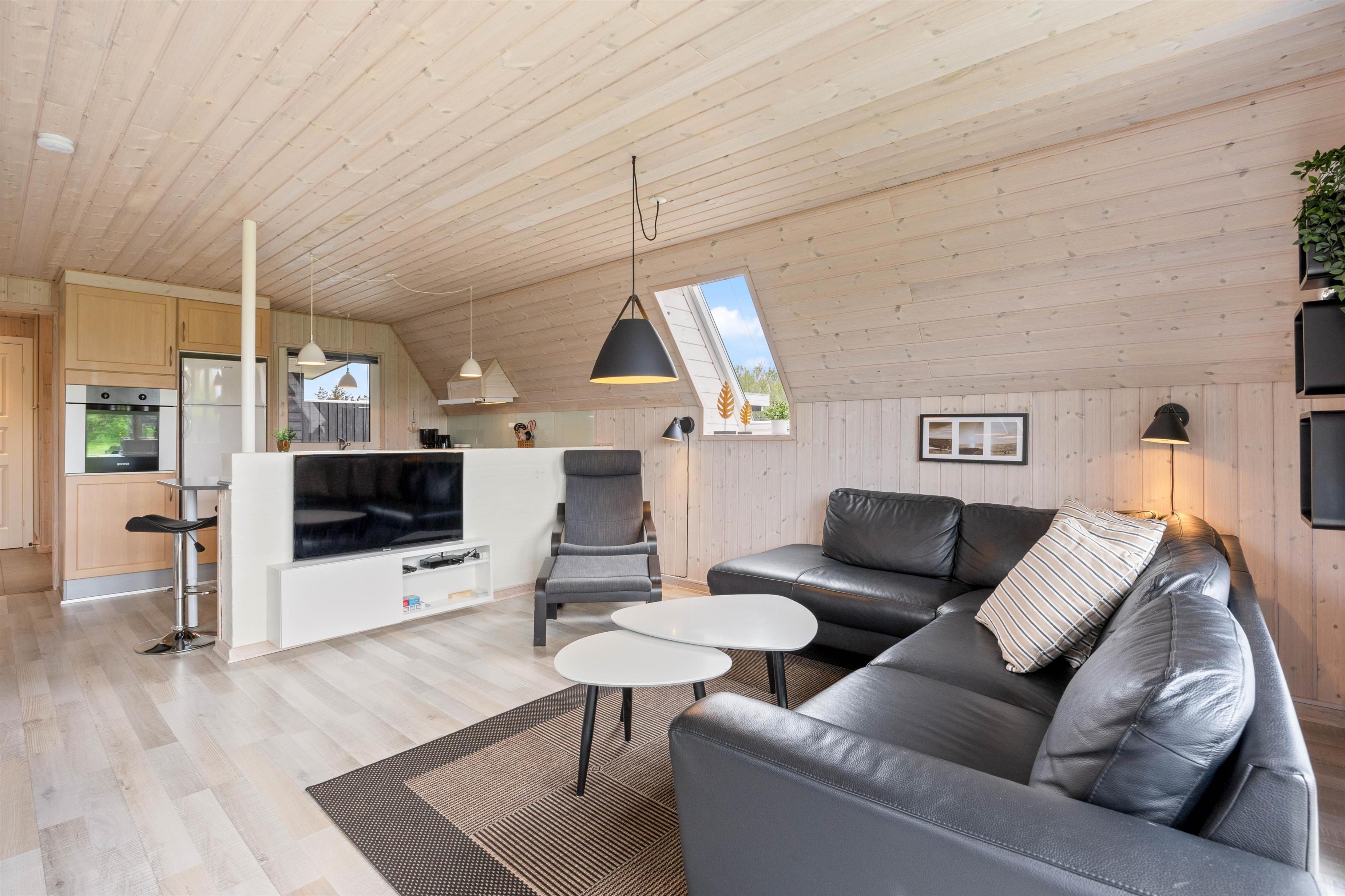 I sommerhuset bliver I fra første øjekast mødt af den lyse og hyggelige indretning, hvor I med det samme med garanti vil føle jer hjemme. Feriehuset er udstyret med et åbent køkken og stue, meget smagfuld moderniseret i kvalitetsmaterialer, der inviterer til tilberedning af de forskellige måltider, imens I samtidig har mulighed for at være sammen. Stuen er indrettet med gode møbler og en dejlig brændeovn, hvorfra I kan mærke den knitrende varme, der spreder sig i rummet.