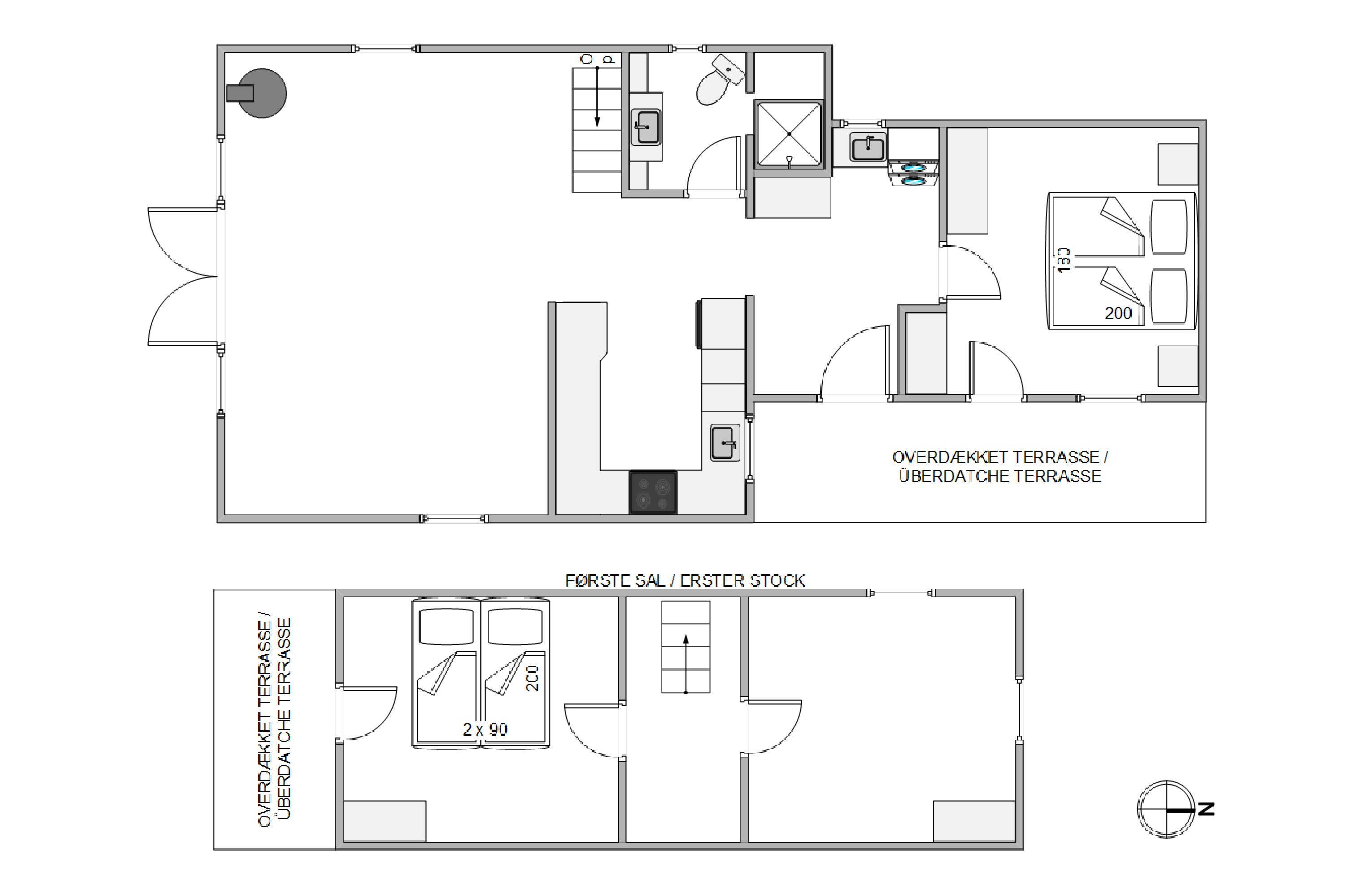 Fra stuen har I udgang til terrassen og den store græsplæne, hvor børnene helt uforstyrret kan lege og brænde krudt af. Badeværelset er rigtig lækkert og med gulvvarme ligesom resten af stueetagen. På 1. salen er der 4 sovepladser fordelt på 2 gode soverum, der hver er udstyret med en dobbeltseng. Her kan I efter en lang og oplevelsesrig dag igen få ladet batterierne op.
