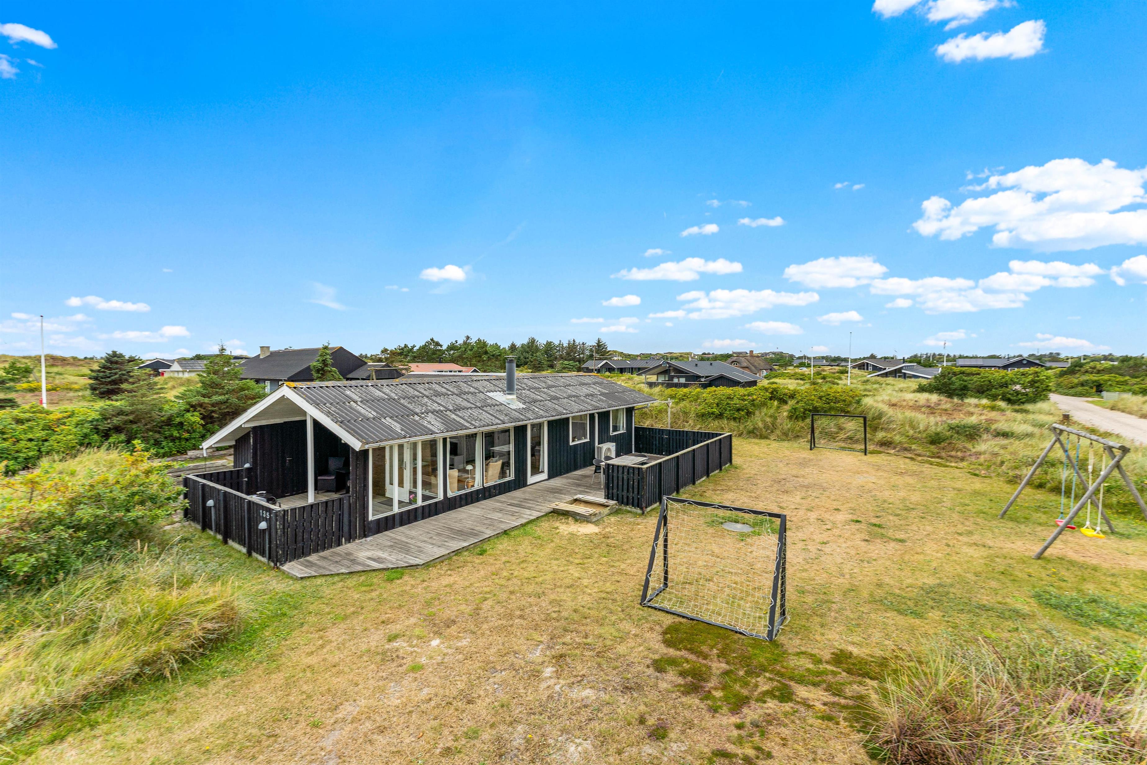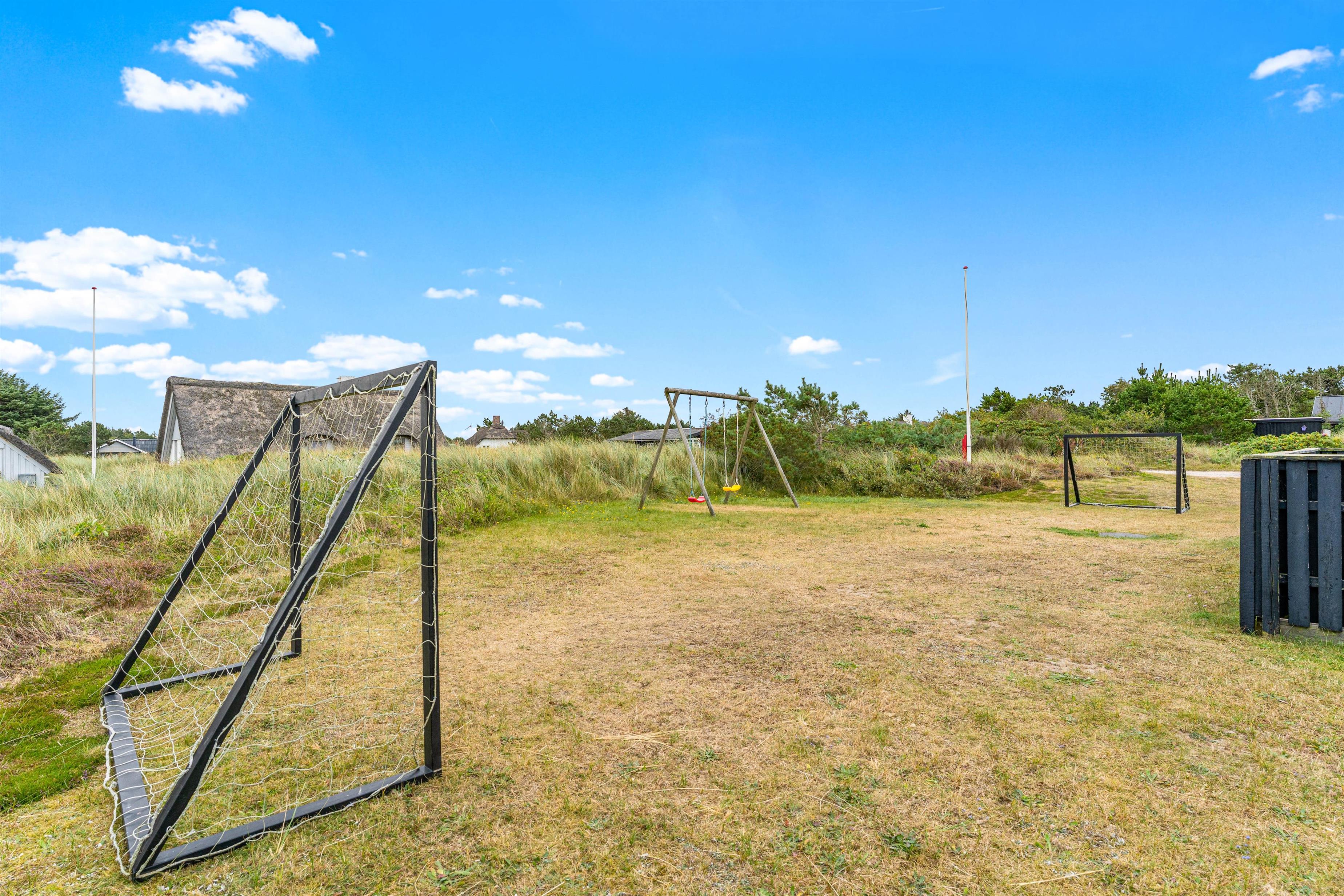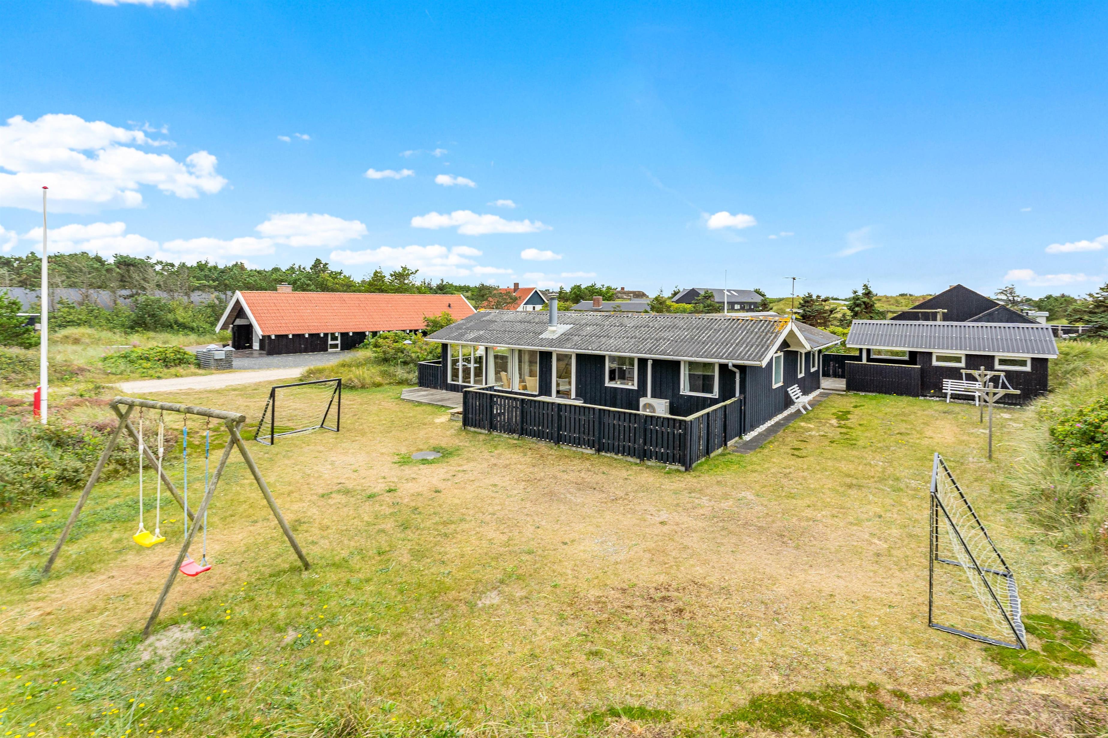 Med gode havemøbler og en grill står der intet i vejen for en lækker feriemiddag i det fri, og mens I forbereder aftensmaden med et glas rødvin ved siden af, kan børnene tage et spil fodbold på den lille fodboldbane, lege i sandkassen eller gynge på gyngestativet.