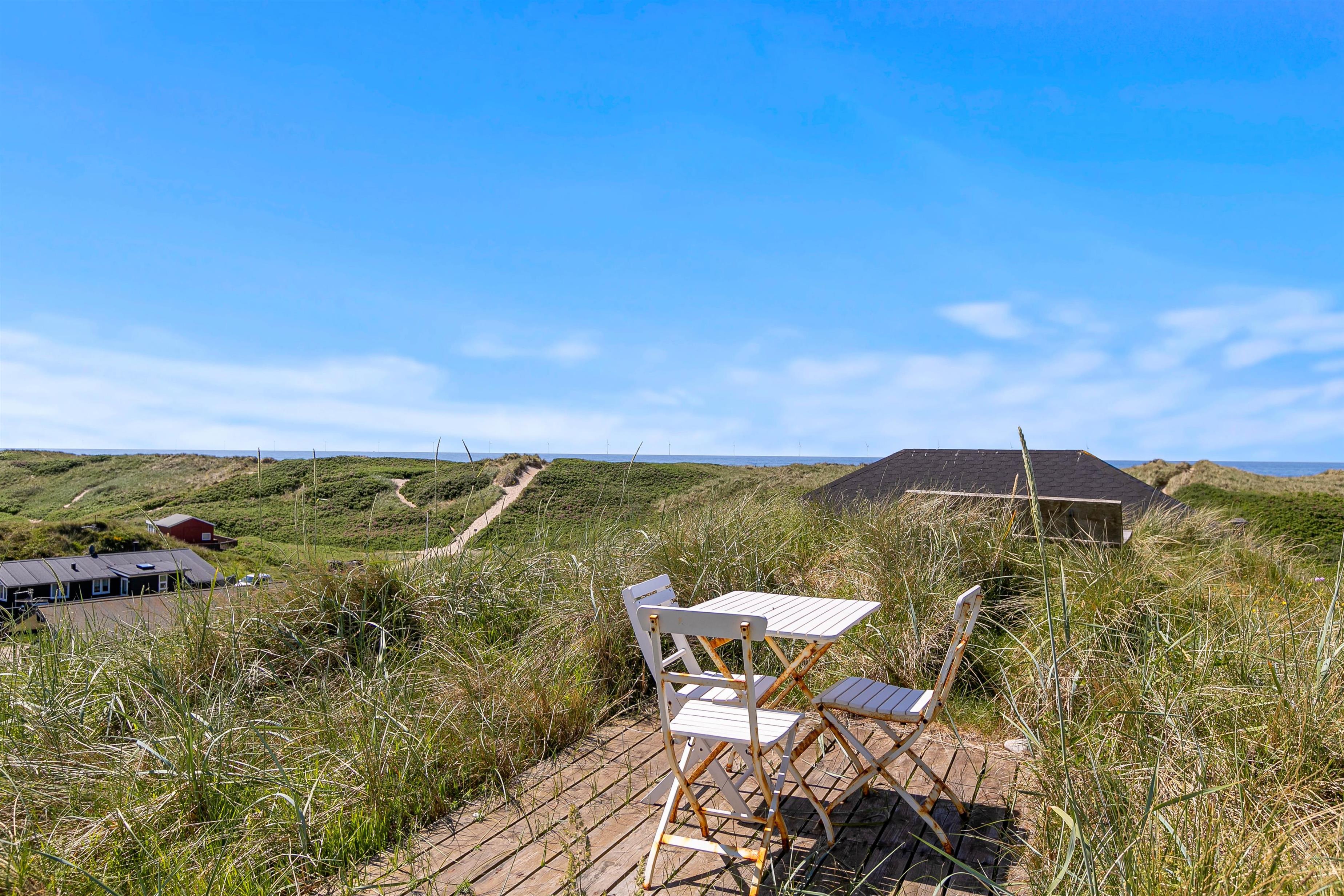 Til sommerhuset på Lodbergsvej 199 er der et skønt terrasseområde, hvor I på de lune sommerdage rigtigt kan sidde og nyde de skønne solnedgange med et glas koldt at drikke. Ydermere har I mulighed for at søge læ i den lille udehytte, hvor I vil kunne tage et spil, nyde et glas varmt eller koldt og hygge jer, alt imens det brusende Vesterhav ligger lige i baggrunden.