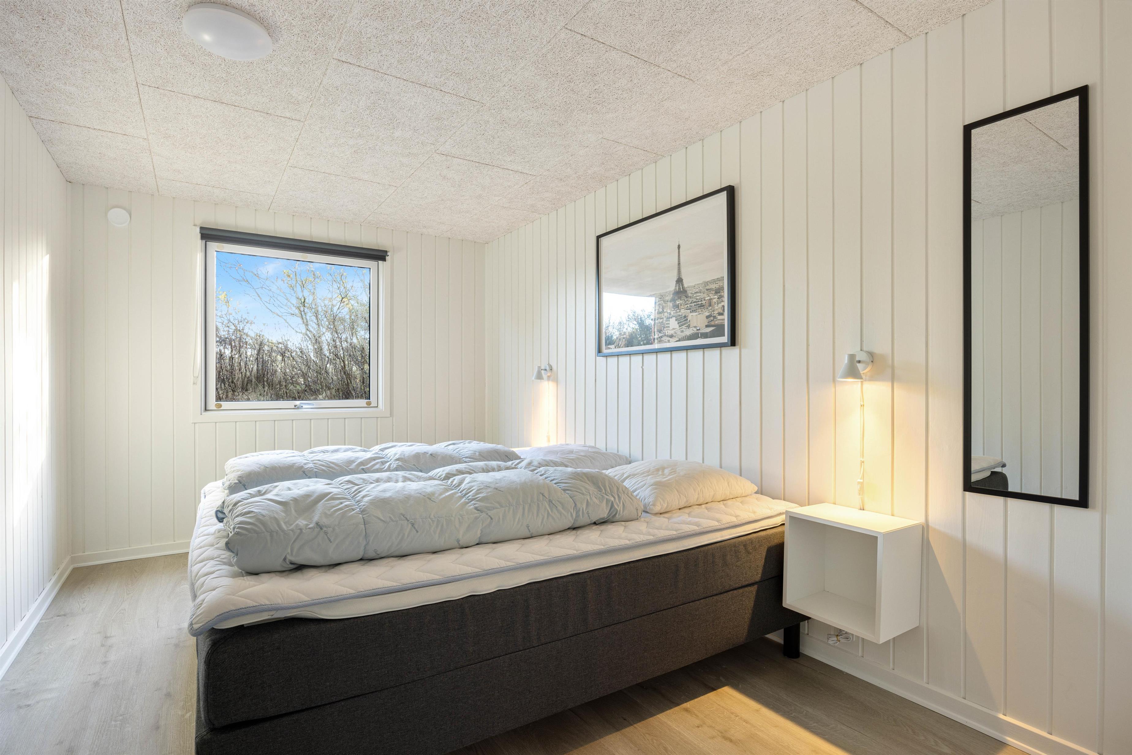Sommerhuset har tre soveværelser samt et lille værelse med sovebriks. To af soveværelserne er med nye kontinental dobbeltsenge fra 2024, mens det ene værelse har 2 enkelsenge der også begge er fra 2024. Yderligere har sommerhuset et badeværelse med indbygget gulvvarme. Og hvis I elsker afslapning, så har sommerhuset en indbygget sauna, hvor I rigtigt kan slappe af efter en god dag nede ved stranden. Derudover har sommerhuset en garage, hvor jeres bil kan stå beskyttet.