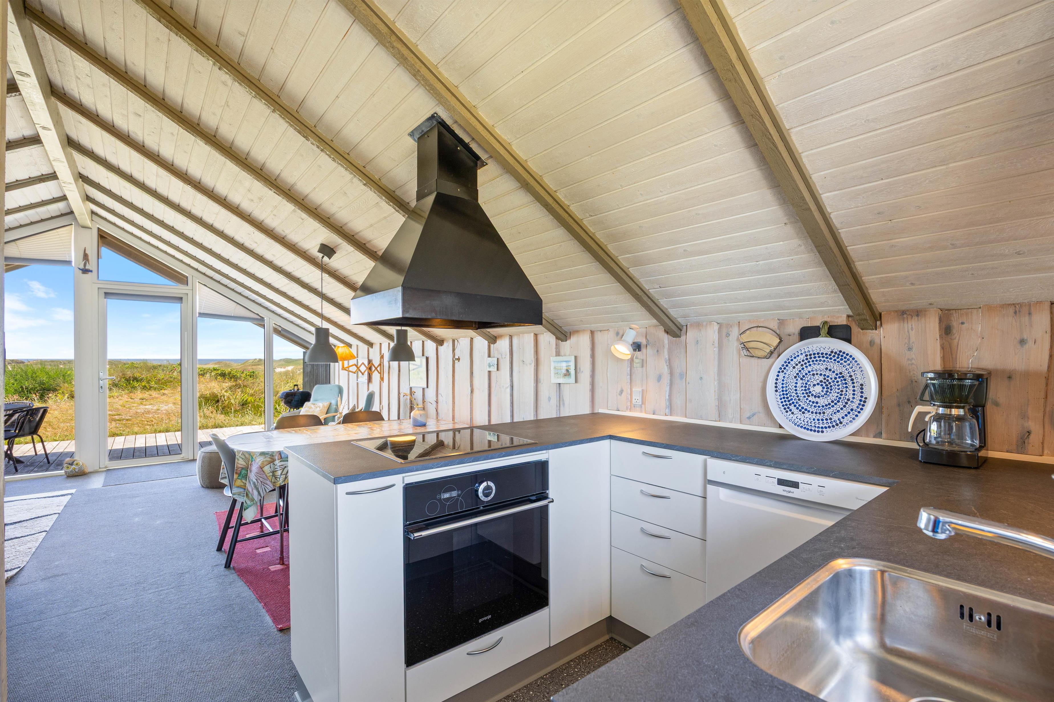 Med et areal på blot 72 kvadratmeter er sommerhuset kompakt, men yderst funktionelt indrettet. Hjertet på Nordsøvej 252 er uden tvivl det hyggelige køkken-alrum. Her kan I foretage jer mange forskellige ting sammen med jeres medrejsende. Ved sofamøblementet er der et fladskærms-tv, så I kan nyde en god film, mens I slapper af på sofaen. I opholdsrummet er der en varmepumpe, som hjælper med at holde en behagelig temperatur året rundt. Fra opholdsrummet kan I også nyde den enestående panoramaudsigt gennem det store vinduesparti.