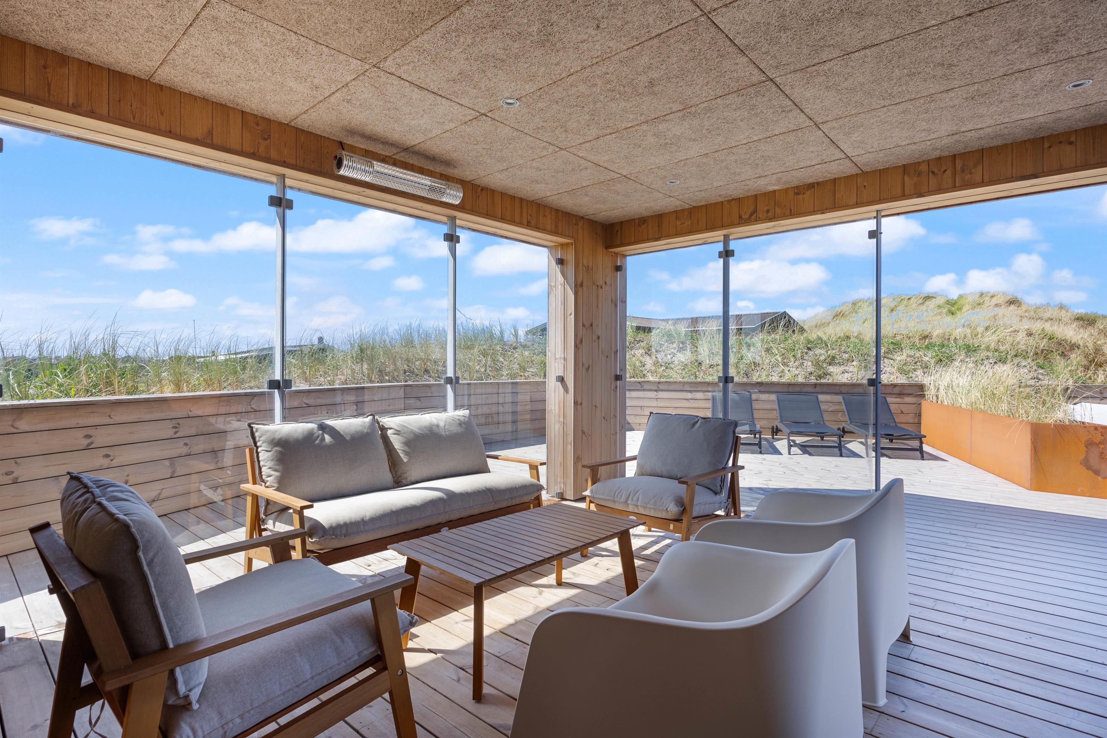 Sommerhuset råder også over nogle virkelig lækre udearealer, og ved huset finder I en stor træterrasse, hvor der virkelig er god mulighed for at nyde nogle udetimer. Her er flere forskellige hyggekroge og havemøbler, og blandt andet en overdækket terrasse, hvor I ved hjælp af husets gasgrill kan nyde en lækker grillmiddag. Hvis det bliver køligt, kan I tænde op i terrassevarmerne.