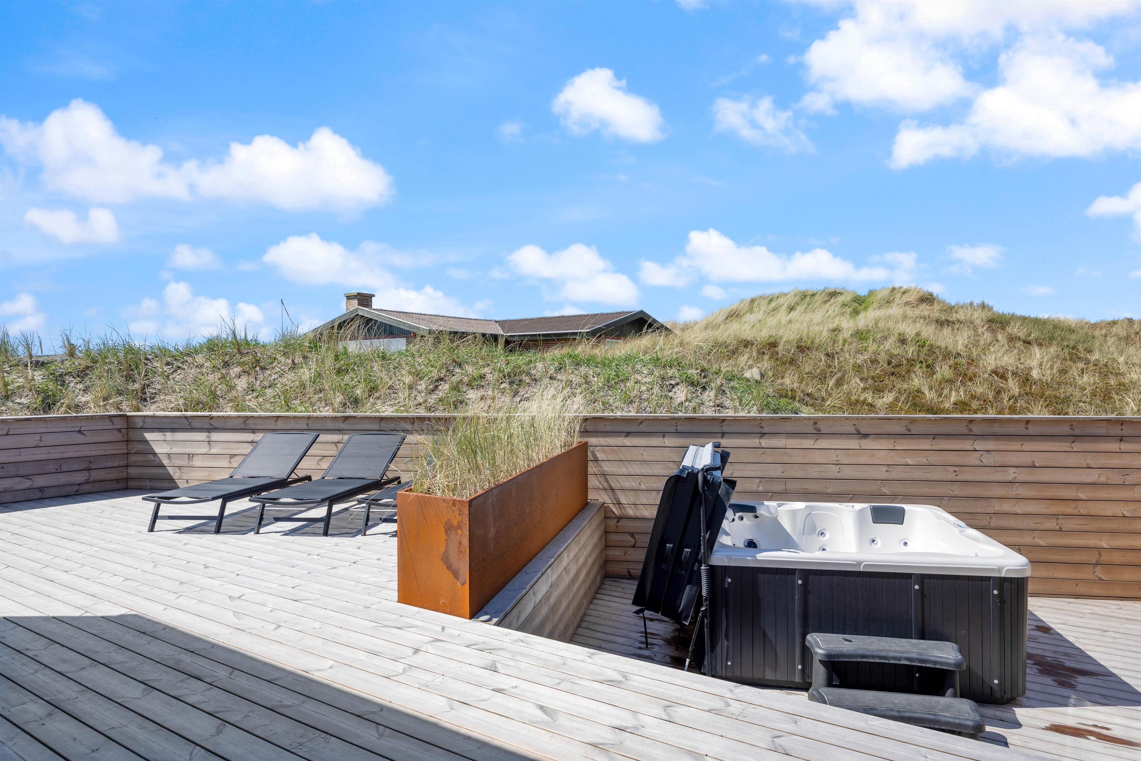 Et af de absolutte highlights ved huset, kan I også finde her på terrassen. Her finder I et lækkert udespa og en udesauna, der tilbyder lidt ekstra muligheder for afslapning og velvære. Det er en oplevelse i sig selv at sidde en kold vinteraften i udespaen og bare betragte den klare stjernehimmel. Derudover er der en udebruser, som kan benyttes hele året rundt.