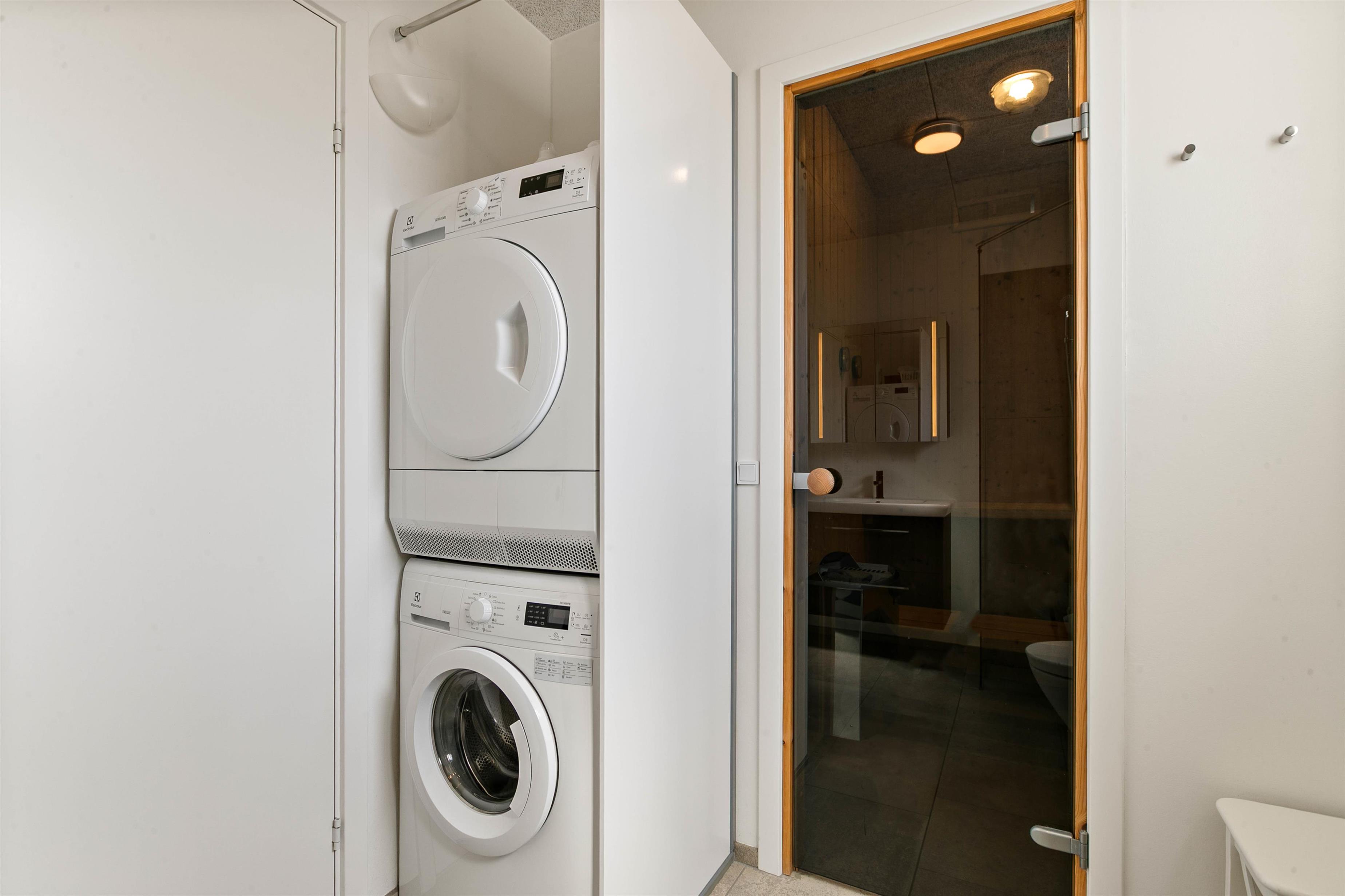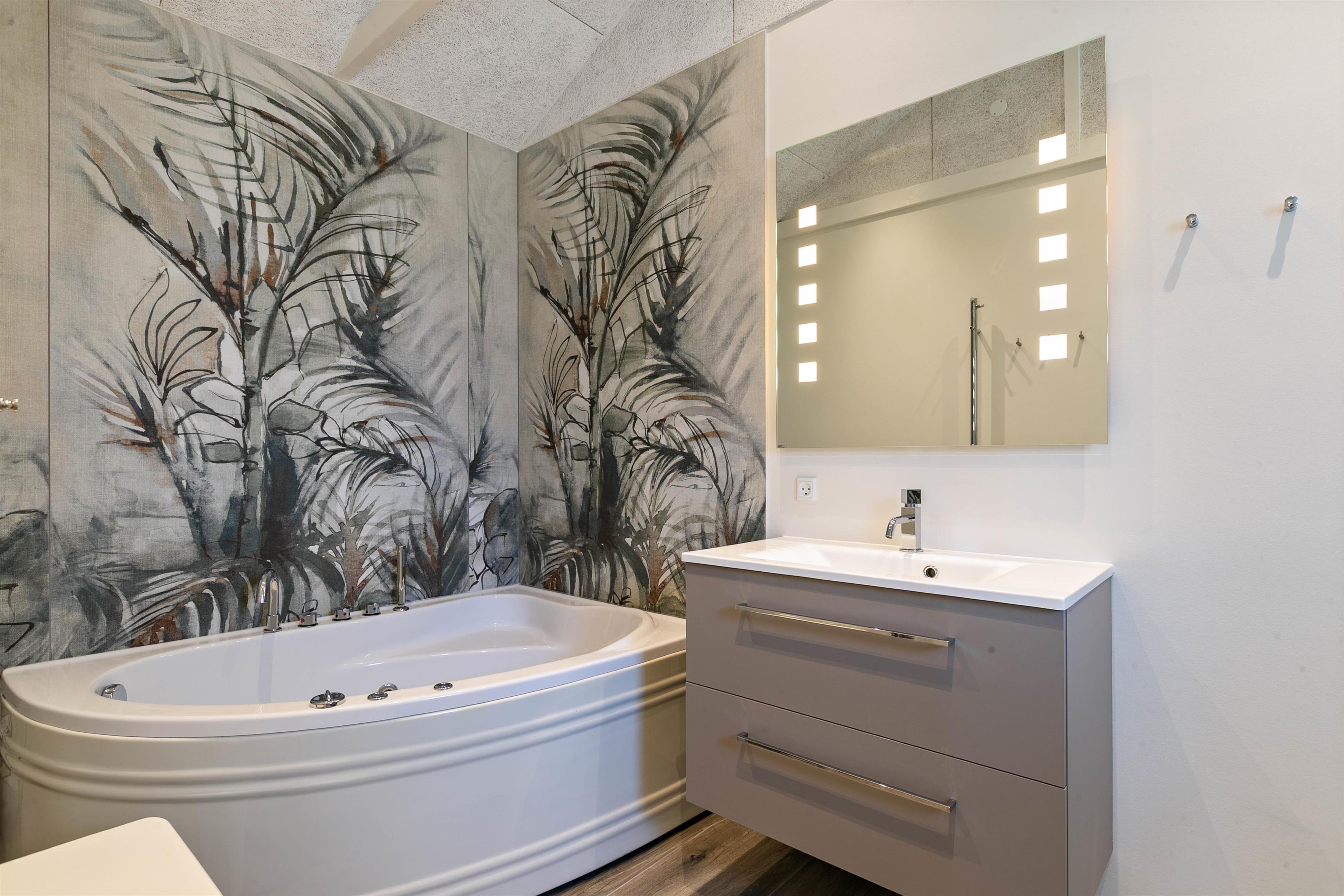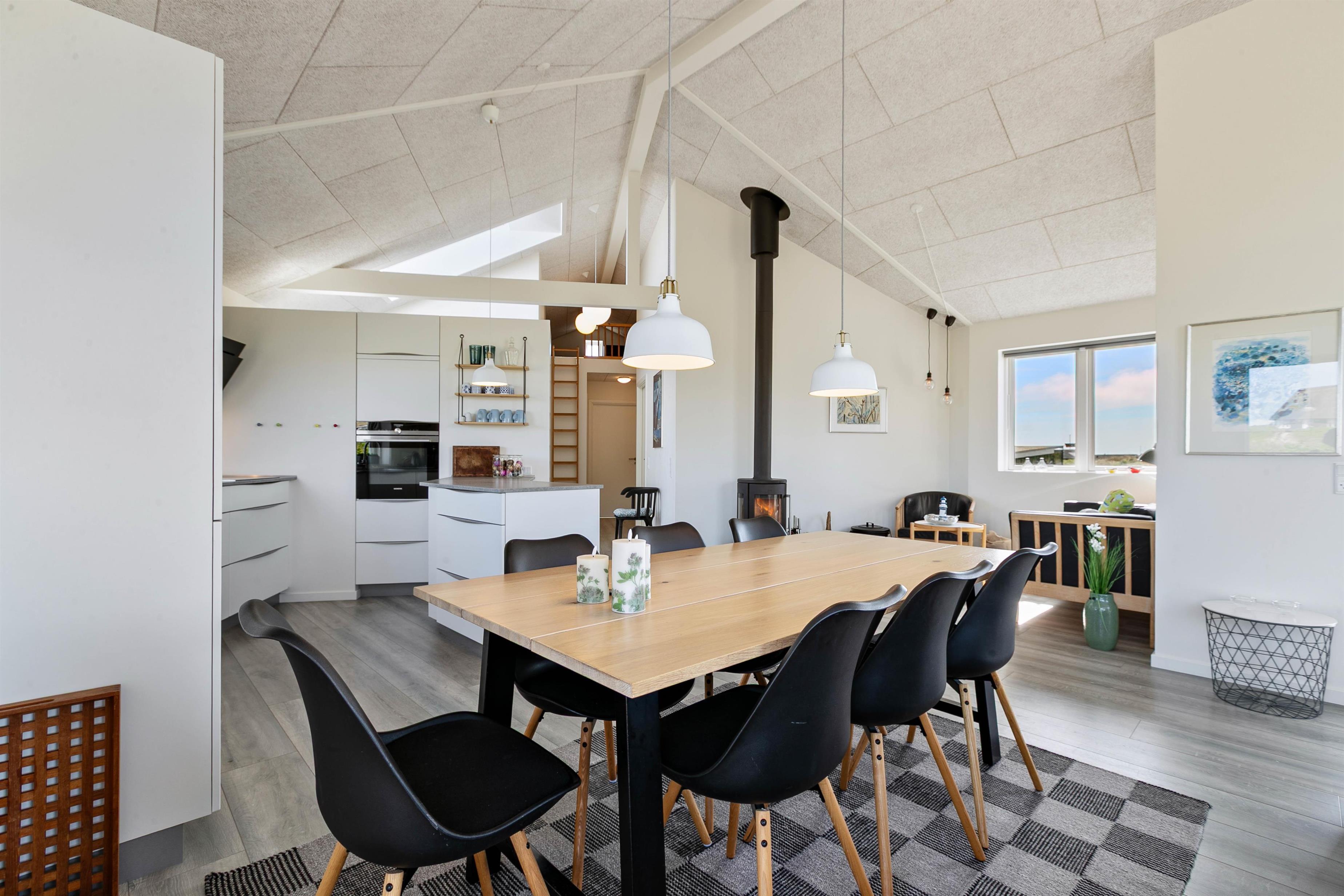 Hele huset har en smule kant, og det gør ikke noget. Især det skønne køkkenalrum lægger op til gode stunder med hele familien. Her går loftet til kip, hvilket skaber en masse luft om ørene, og giver jer en god fornemmelse. Den gode fornemmelse vil kun blive endnu mere forstærket af de tydeligt loftsbjælker, der er så kønne og stadig bidrager til den stilrene indretning.