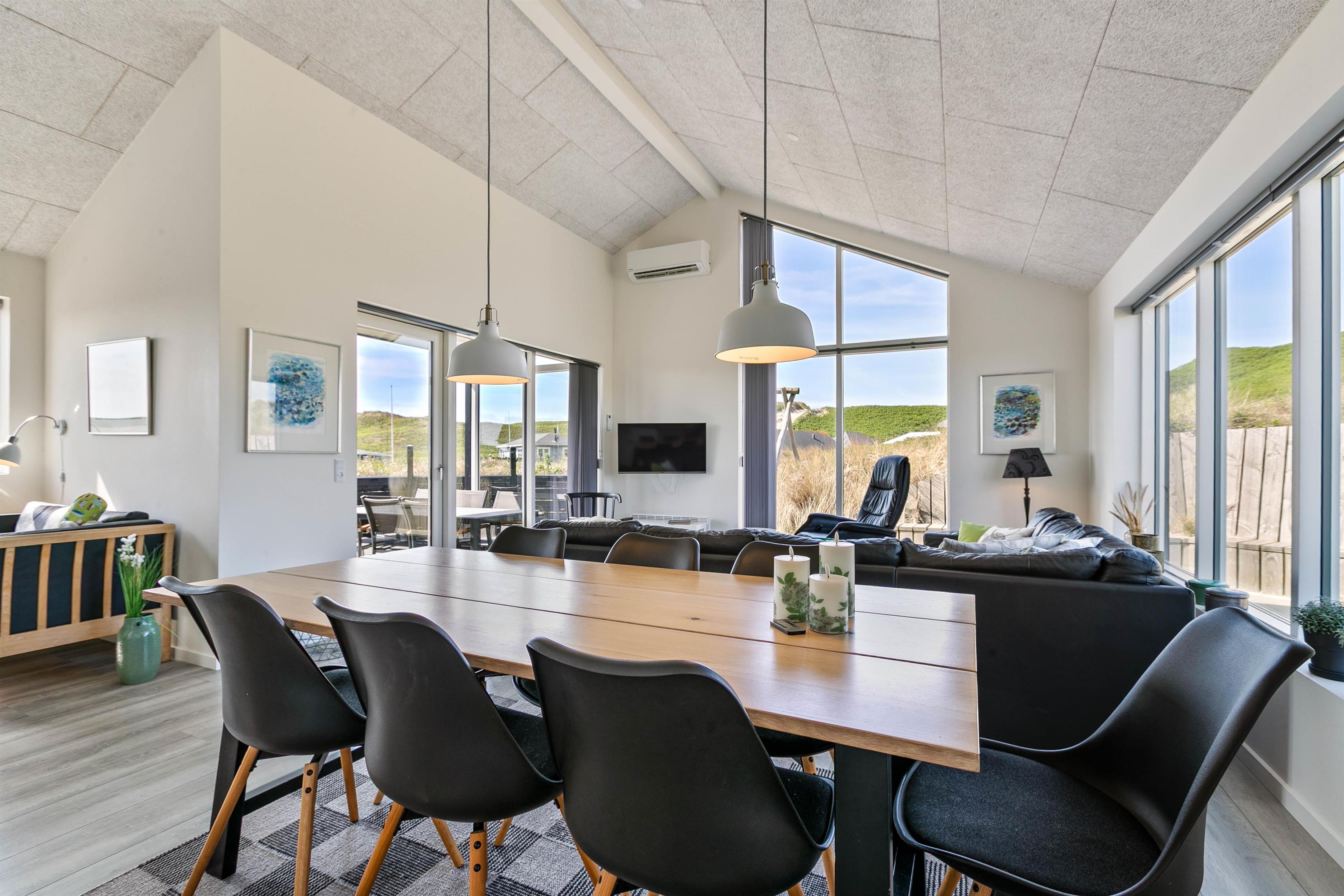 Fra terrassen kalder bølgernes brusen på jer, og på en kort gåtur gennem klitlandskabet når I den brede sandstrand. Stranden er et paradis for alle, og mens I nyder solen, og bølgerne bryder i strandkanten, kan børnene få fri leg i den uendeligt store sandkasse.