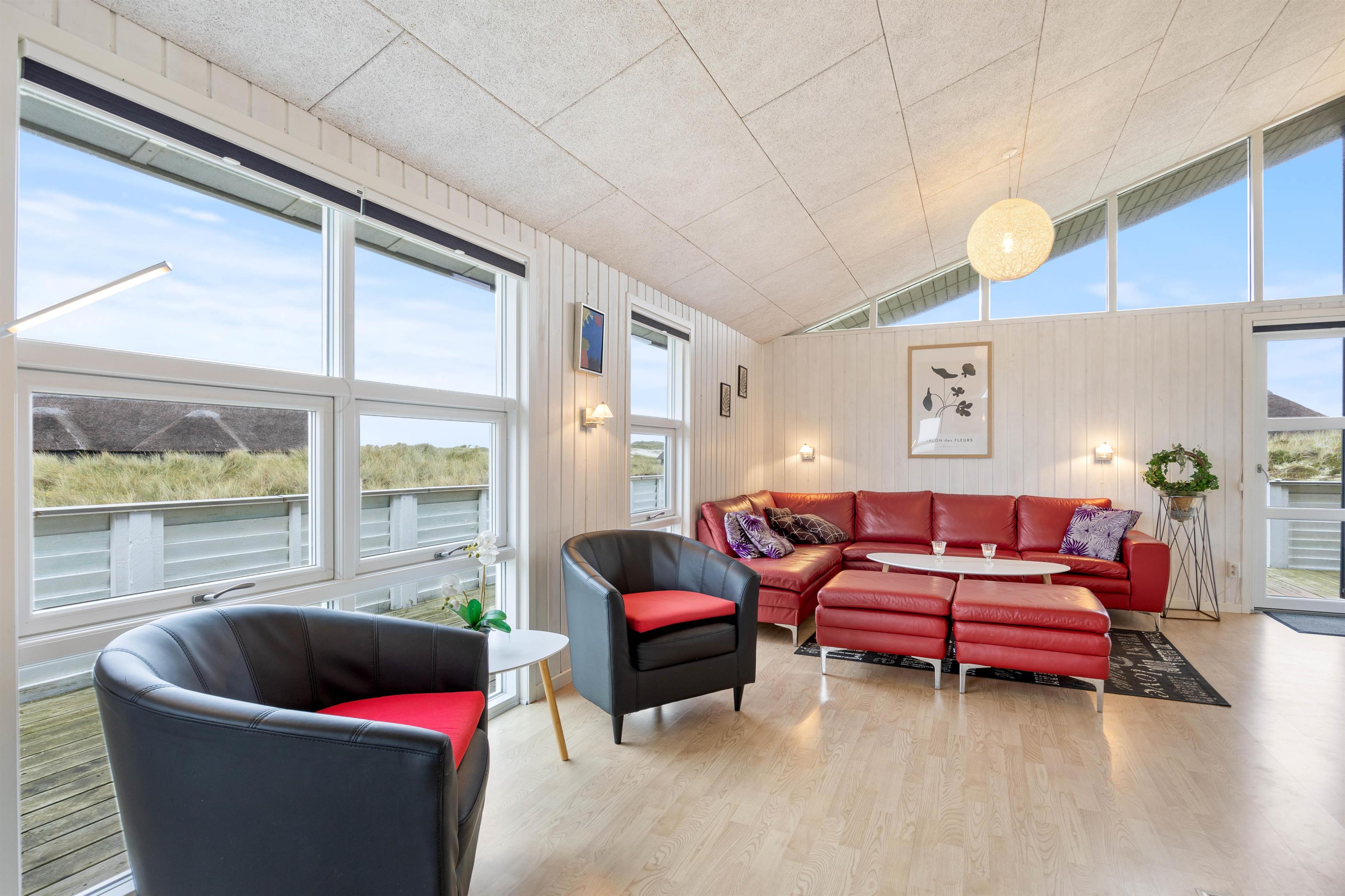 Huset ligger på en smuk, kuperet naturgrund kun få minutters gang fra havet og den endeløse sandstrand. Det er placeret højt på grunden og man har en fantastisk udsigt udover hele området. Fra klitten lige bag huset er der en endnu flottere udsigt over hele klitlandskabet.
