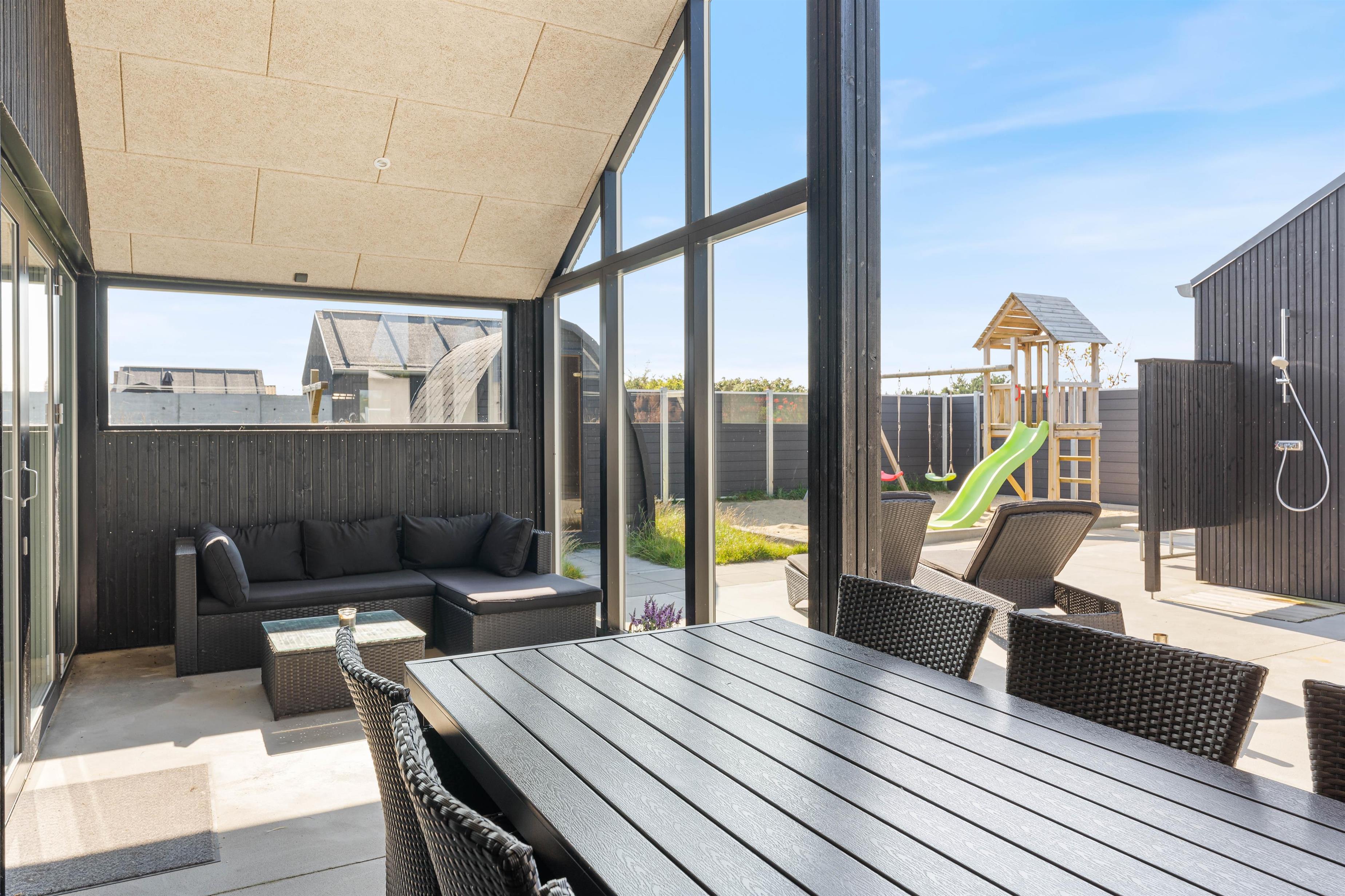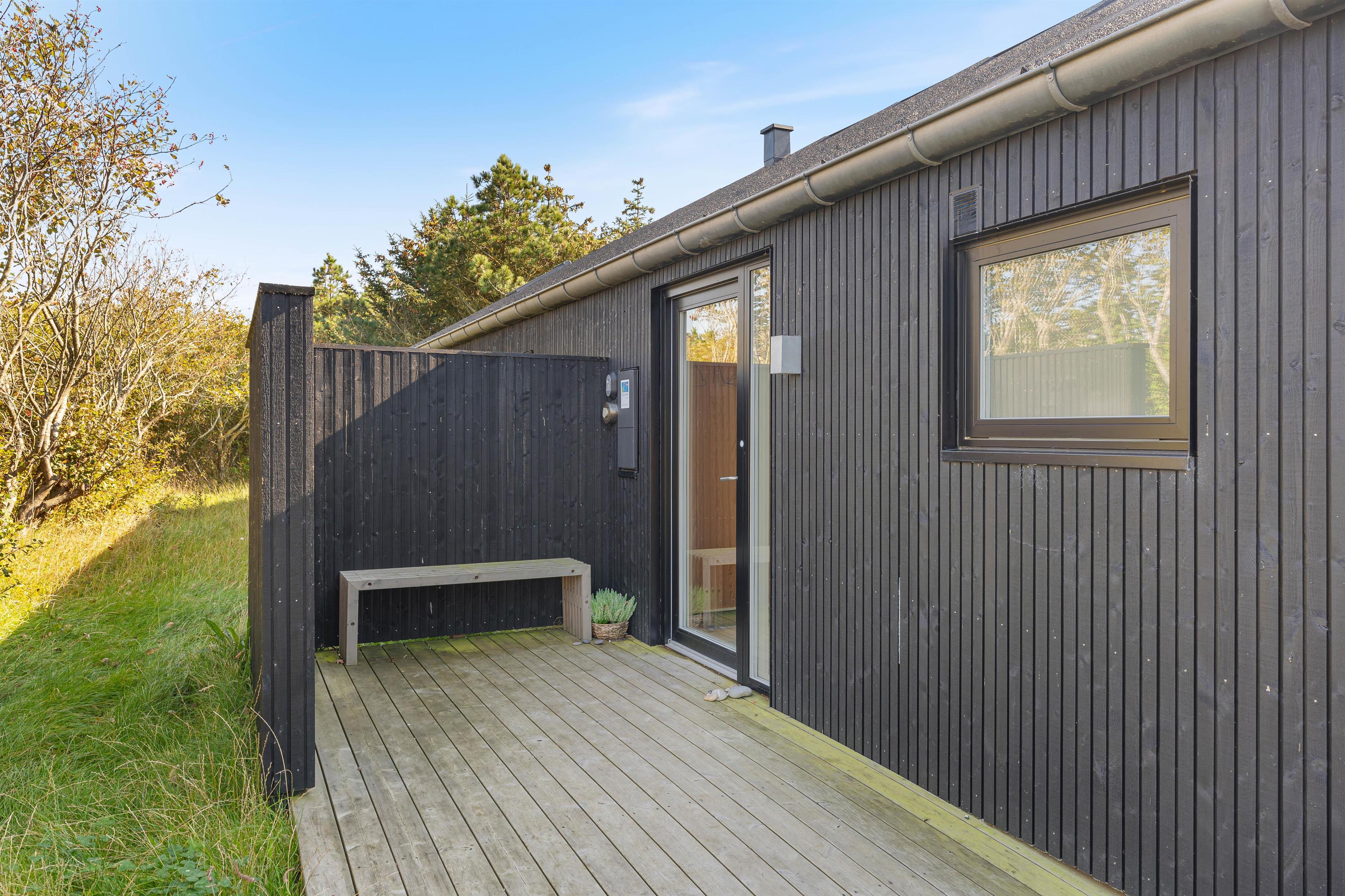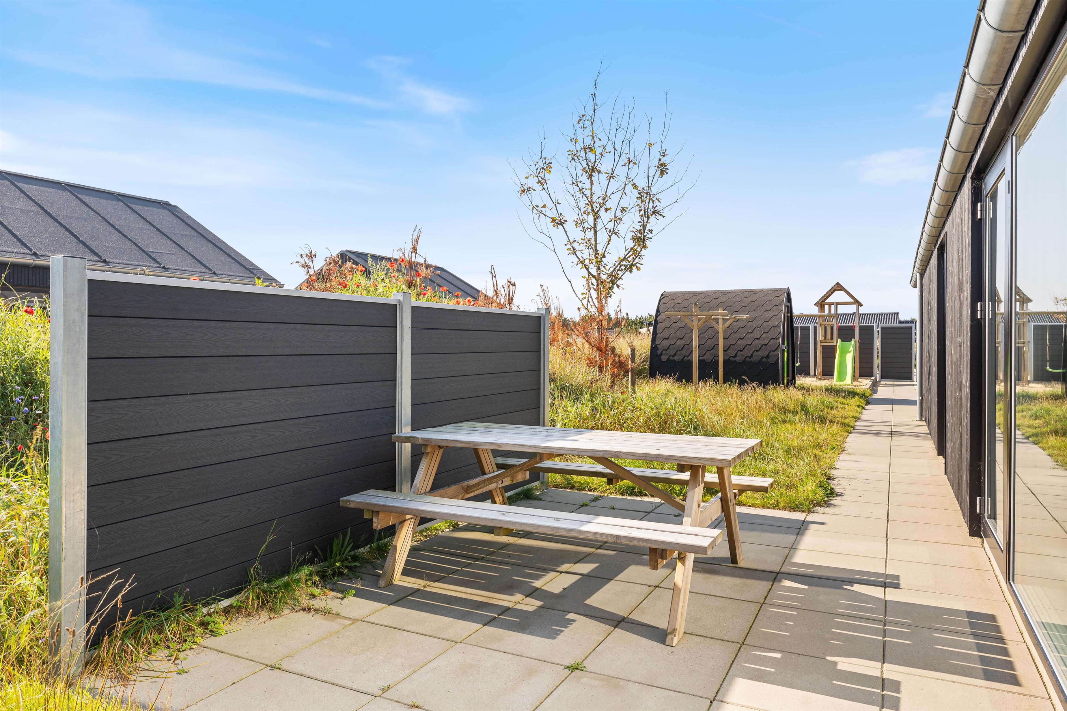Sommerhusets udeområde byder på en dejlig terrasse, og det er uden tvivl det oplagte sted at tilbringe feriens solrige dage. På terrassen kan I finde jer en god plads i solen, hvor I kan sætte jer til rette i havemøblerne og liggestolene.
