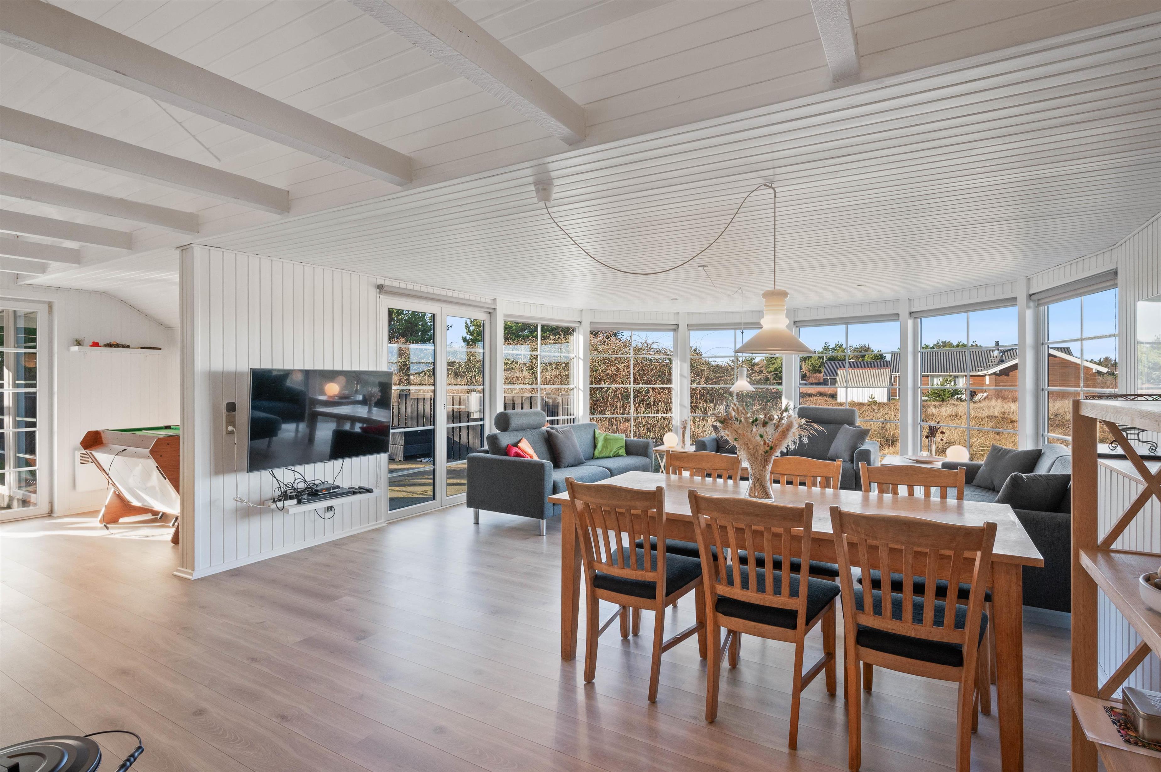 Der er vist ingen risiko for, at I kommer til at kede jer, mens I opholder jer i sommerhuset i her på Jakob Bondes Vej 47. Huset bugner nemlig af aktivitetsmuligheder – både den afslappende slags og dem, der får pulsen op. Og mon ikke familiens børn vil elske det lille gamingrum, der er udstyret med fladskærms-tv og en PlayStation 1? Eller se frem til en duel omkring fodboldbordet?